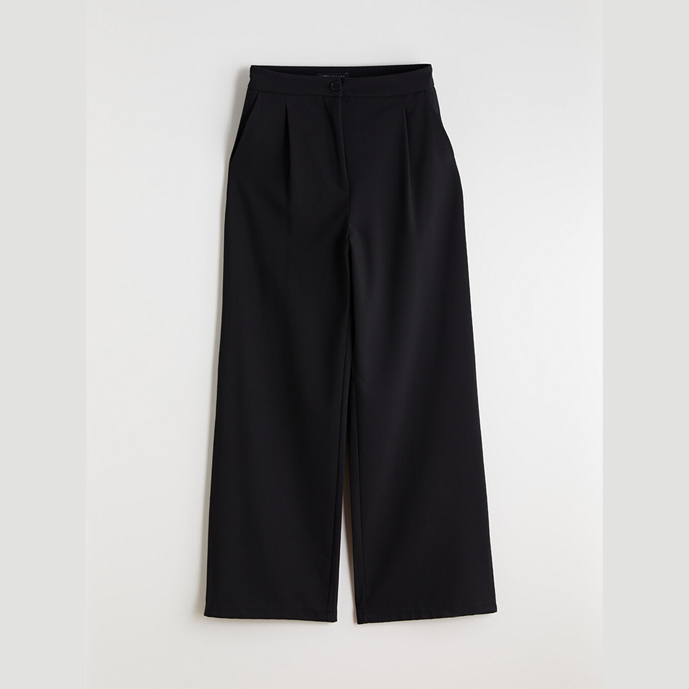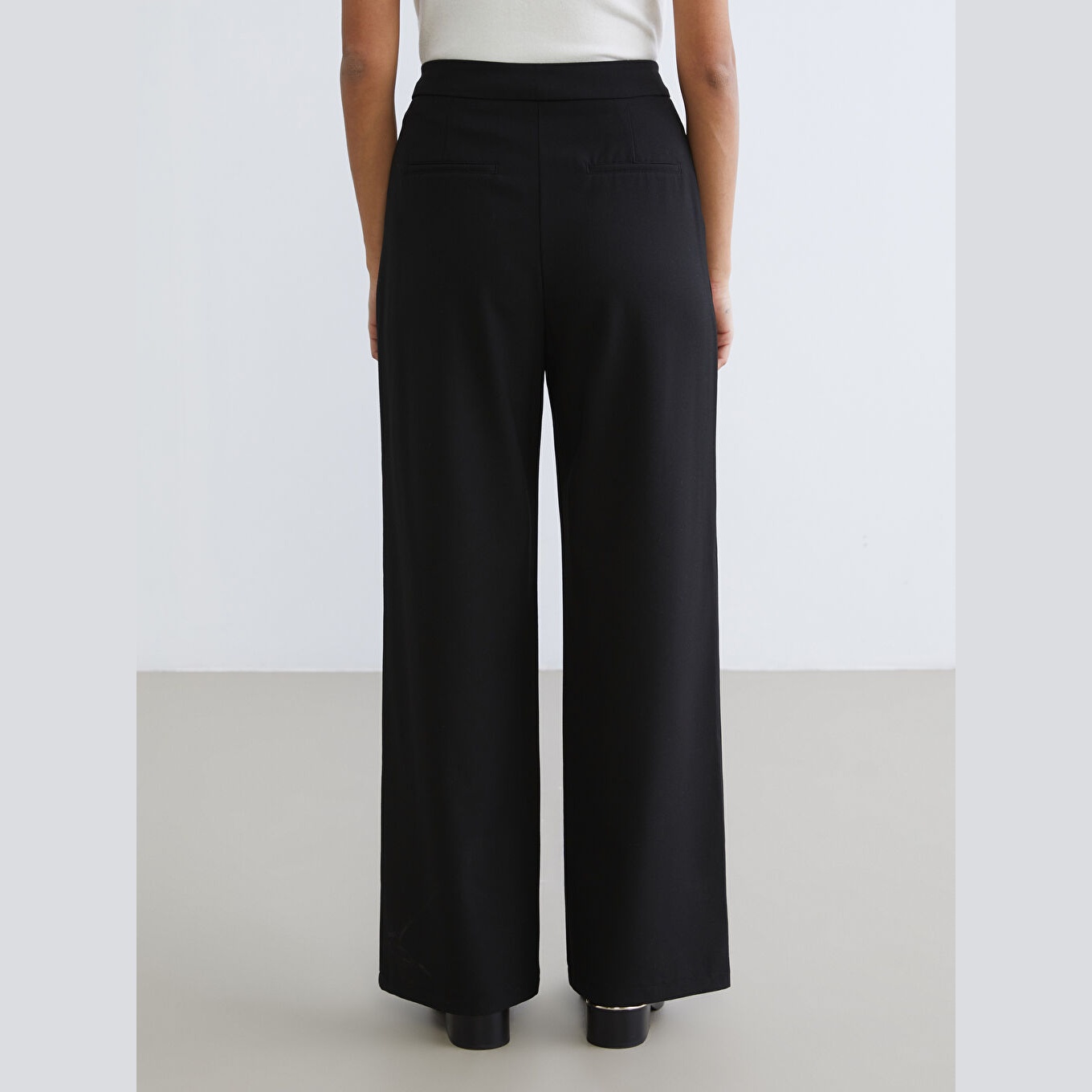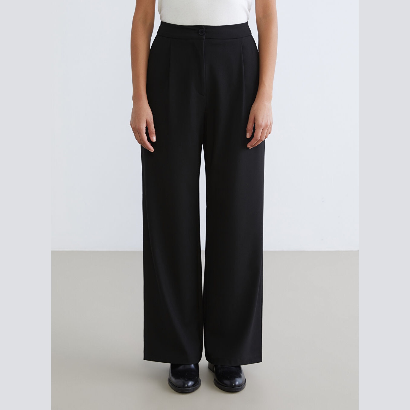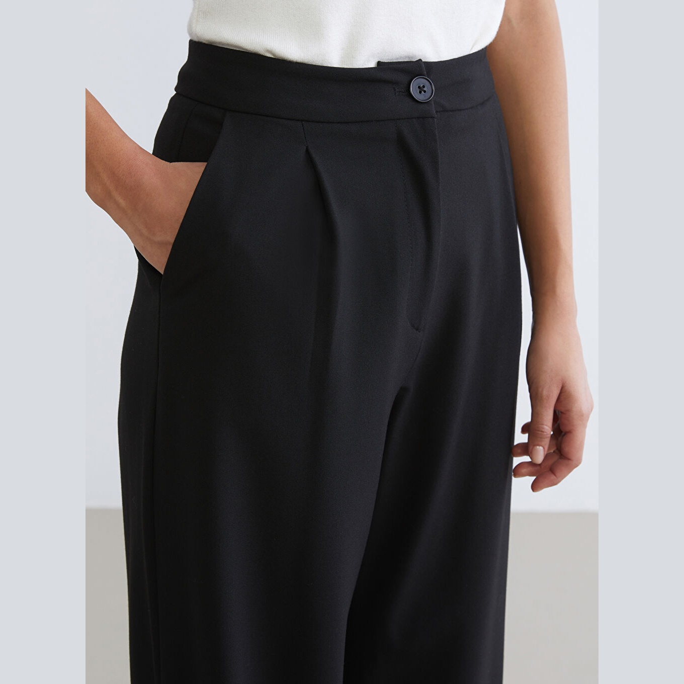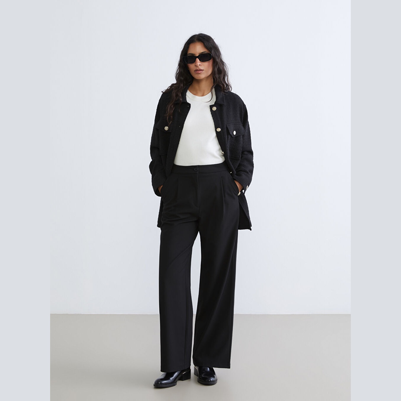 بنطال أنيق بلون أسود سادة كلاسيكي من مجموعة LCW Modest – لأناقة عملية ومحتشمة بلمسة راقية، يتميز بقصة واسعة (Loose Fit) مع أرجل عريضة تمنحك حرية حركة وأناقة انسيابية، إلى جانب خصر عالي يعزز التناسق ويمنح راحة مثالية. التصميم مزوّد بطيات أمامية (سِليويت بليسيه) تضيف لمسة كلاسيكية أنثوية. مصنوع من خامة بوليفيسكوز مرنة ومتوسطة السماكة بتركيبة %62 بوليستر، %33 فيسكوز، %5 إيلاستان، ما يجعله مثاليًا للإطلالات اليومية والمحتشمة في المواسم المعتدلة.