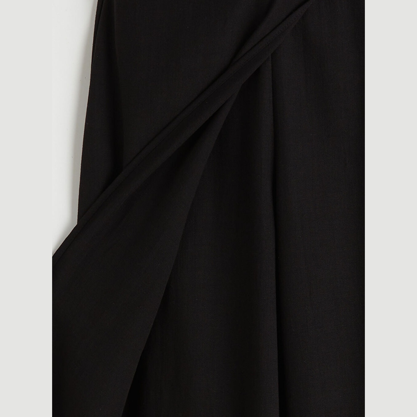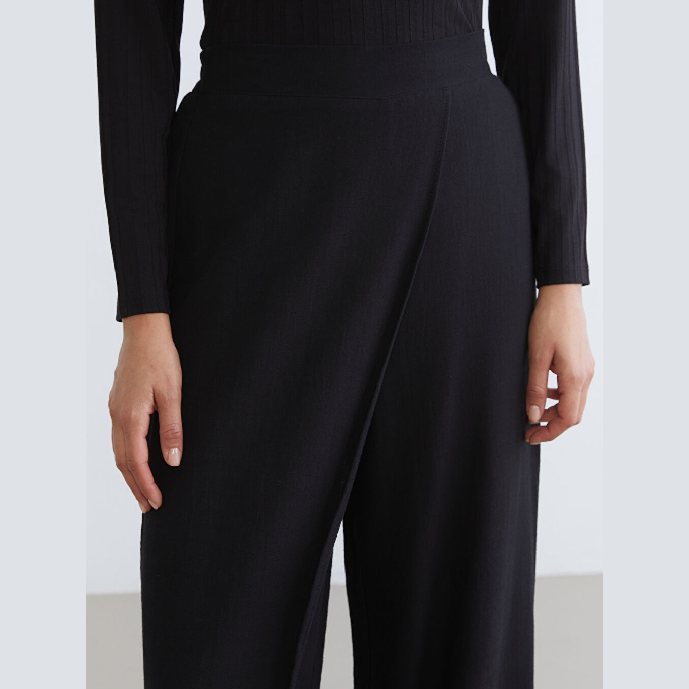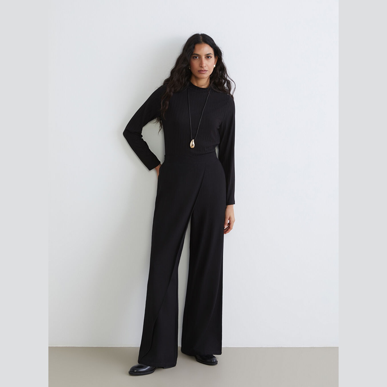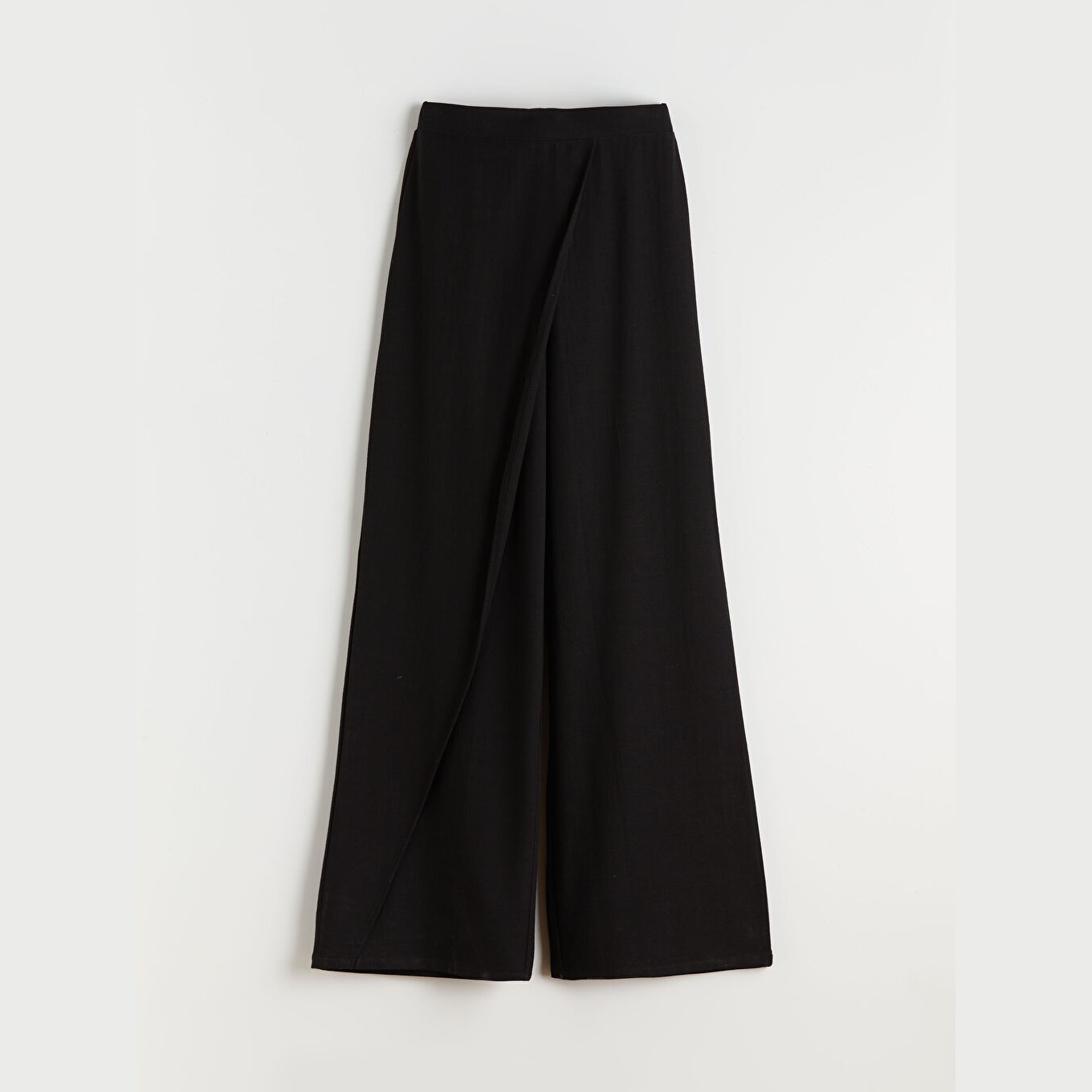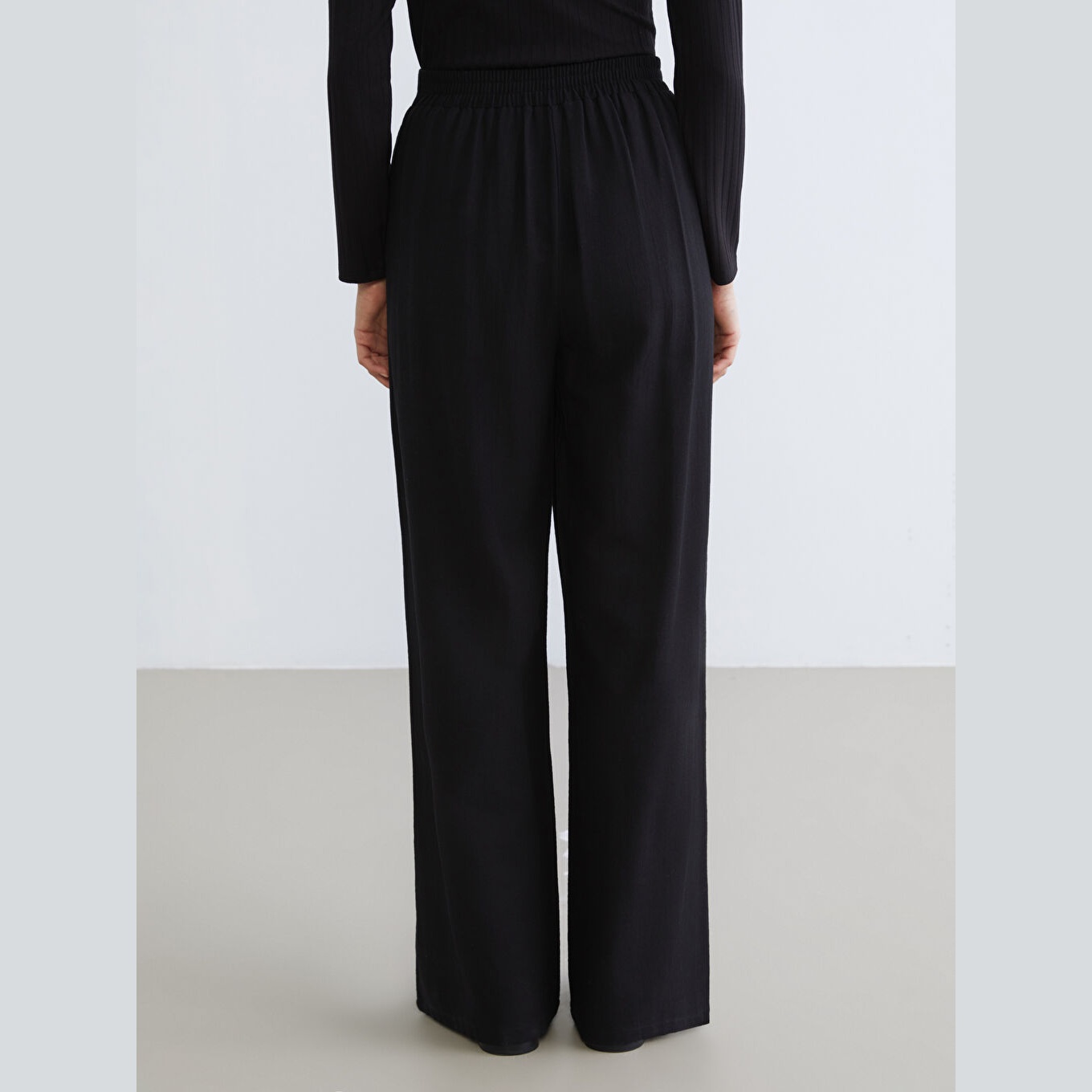 بنطال نسائي بخصر عالي – أسود بقصة واسعة (قماش خفيف من القطن والفيسكوز، تصميم محتشم)