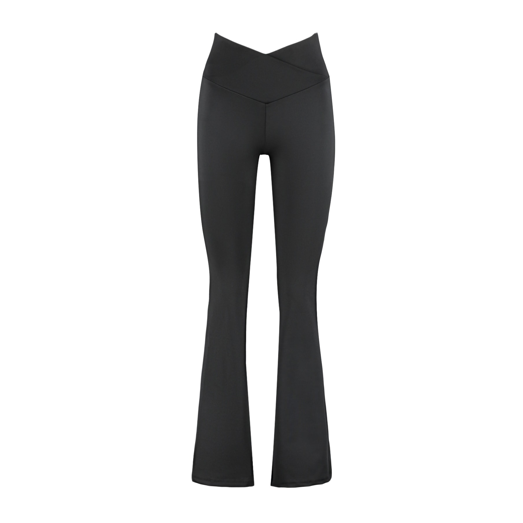 بنطال رياضي نسائي – أسود بخصر كروڤاز وقصة إسبانية (تصميم عملي بخامة مطاطية مريحة)