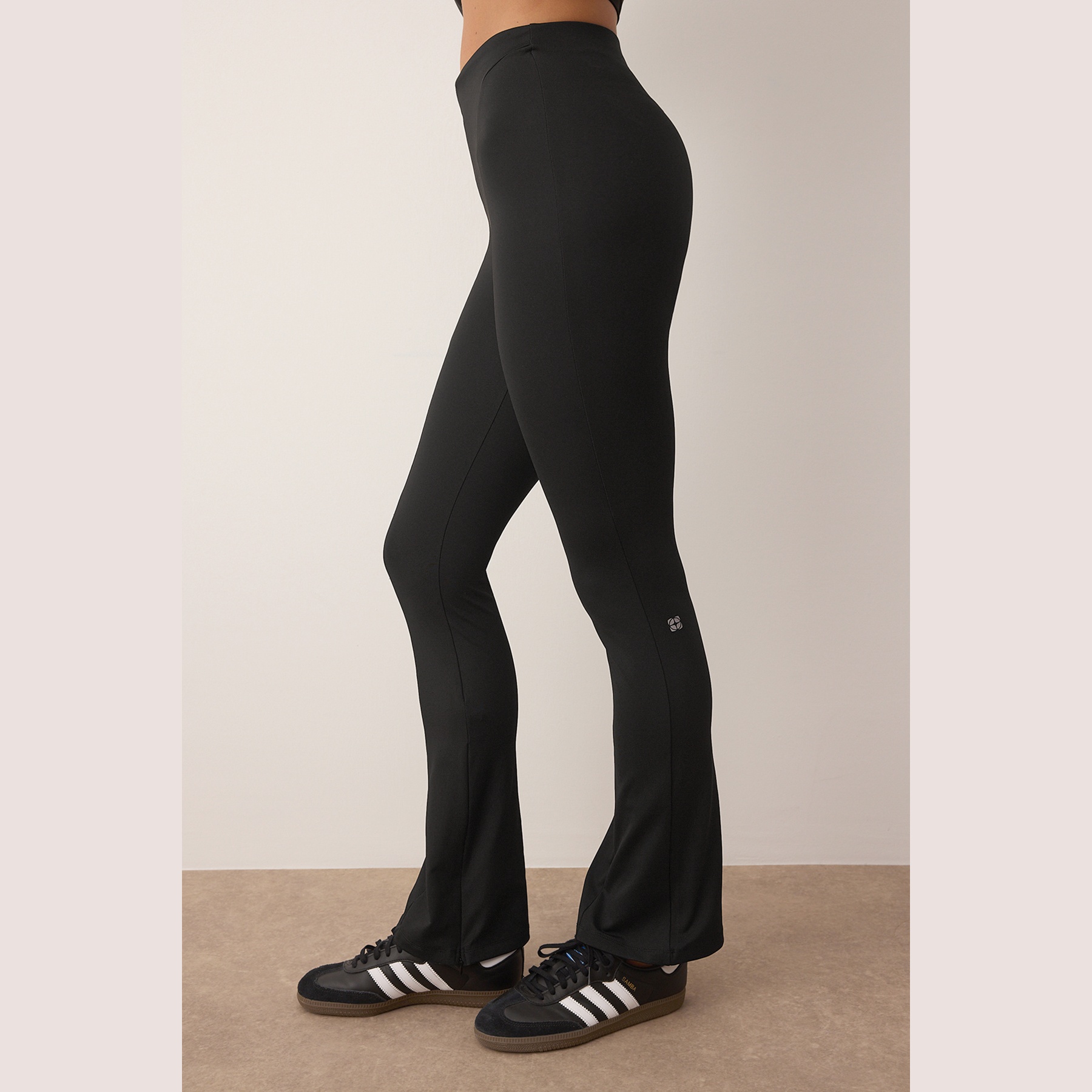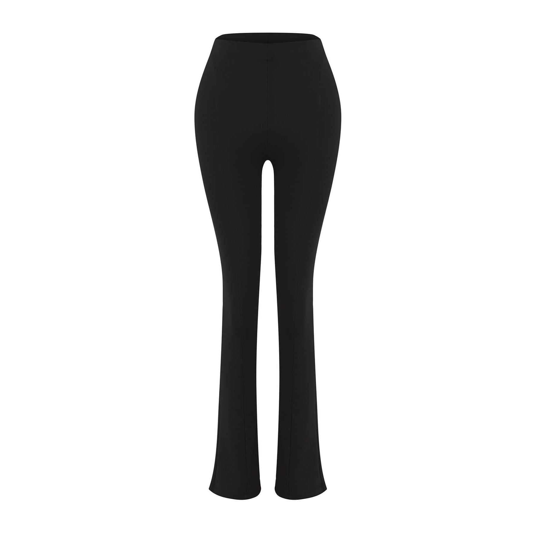 بنطال رياضي نسائي – أسود بقصة إسبانية وخصر مرتفع (تصميم عملي بخامة مطاطية مريحة)