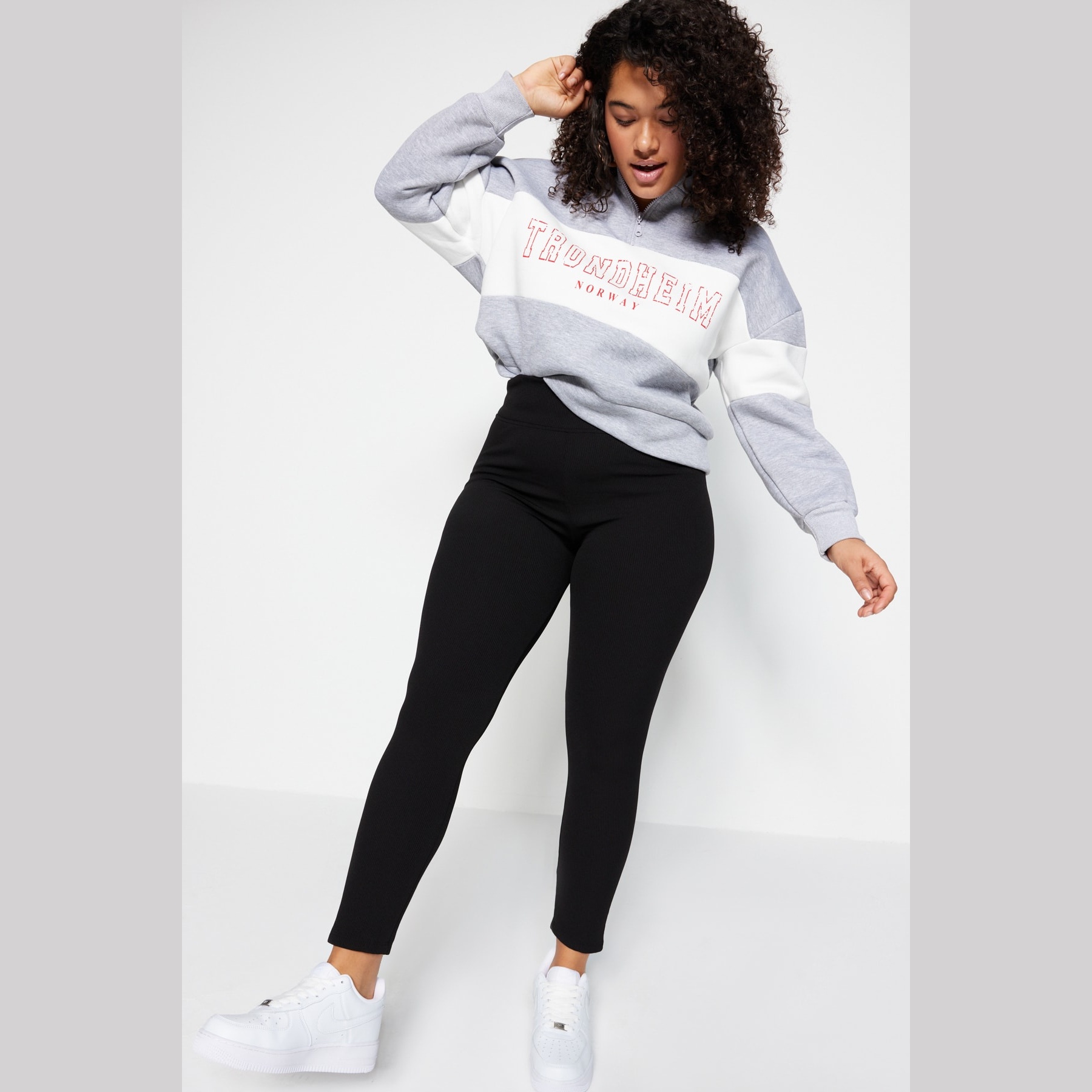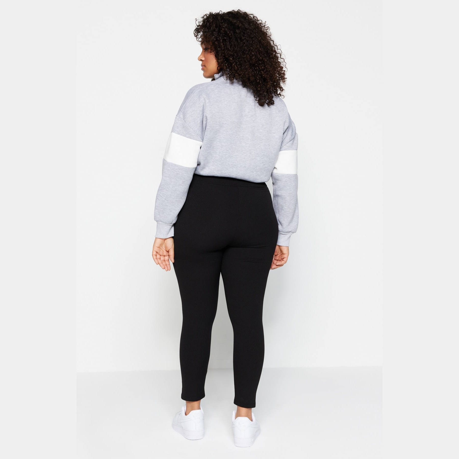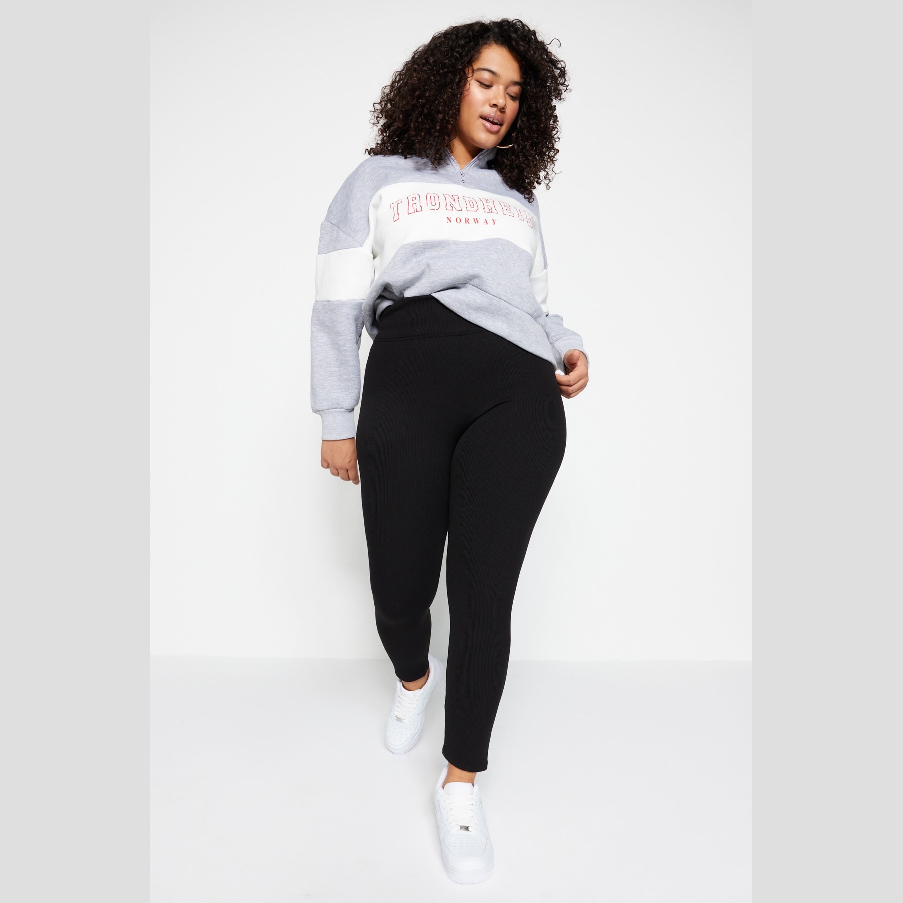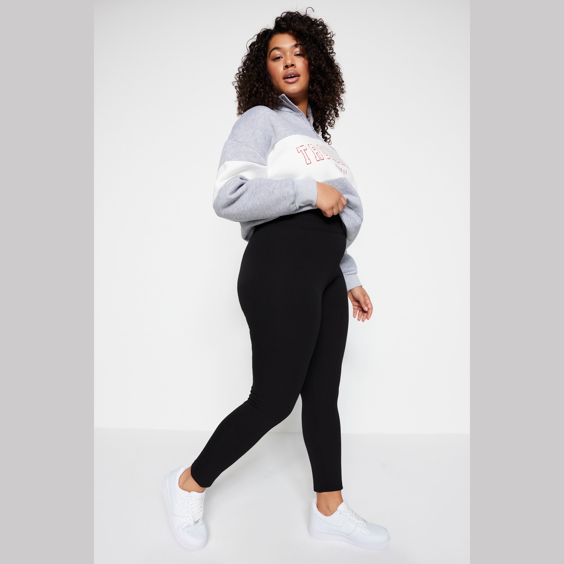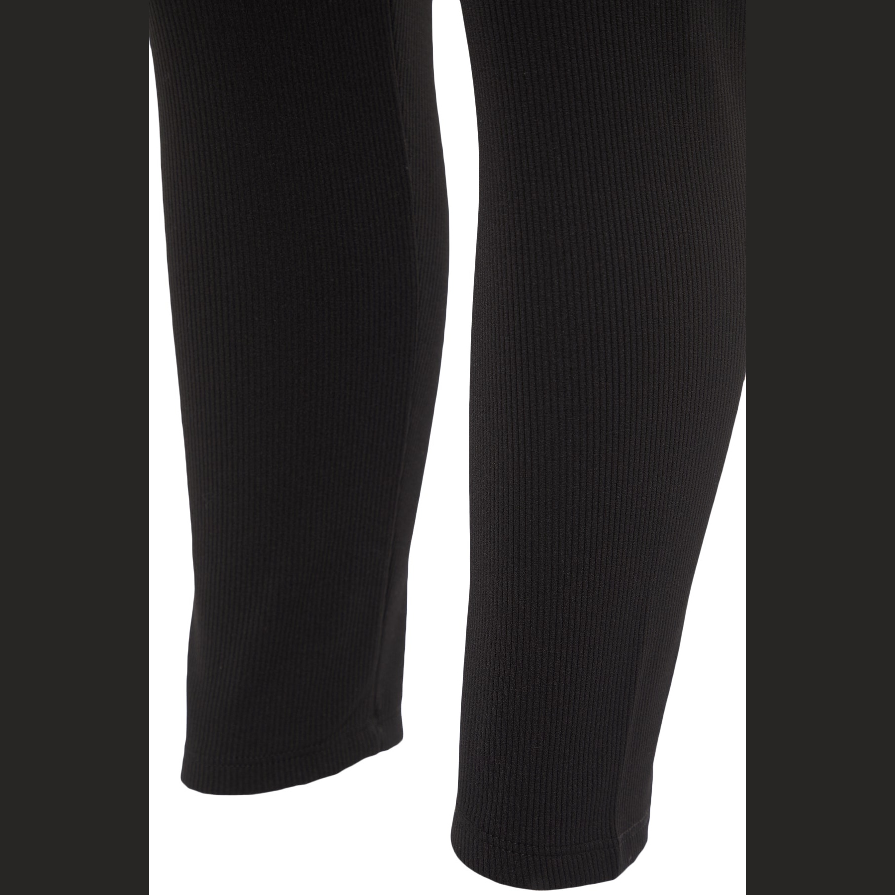 بنطال نسائي كبير الحجم بلون أسود، مصنوع من خامة تريكو مطاطية بتشطيب مضلع داخلي مبطن يمنح دفئًا مثاليًا في الشتاء، يتميز بقصة ضيقة تبرز القوام، وخصر مرتفع يوفر دعمًا وراحة أثناء الحركة. تصميم مثالي للإطلالات اليومية المحتشمة في الأجواء الباردة.