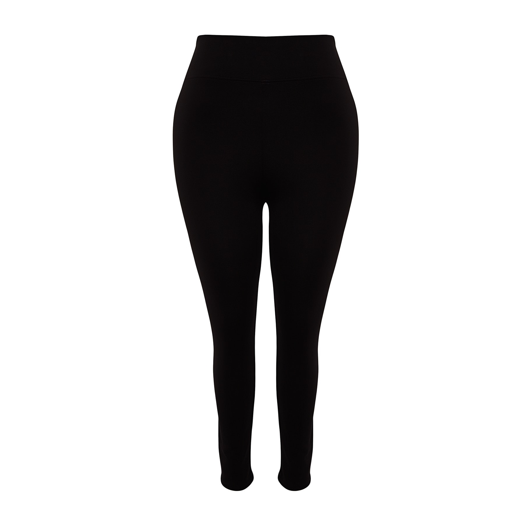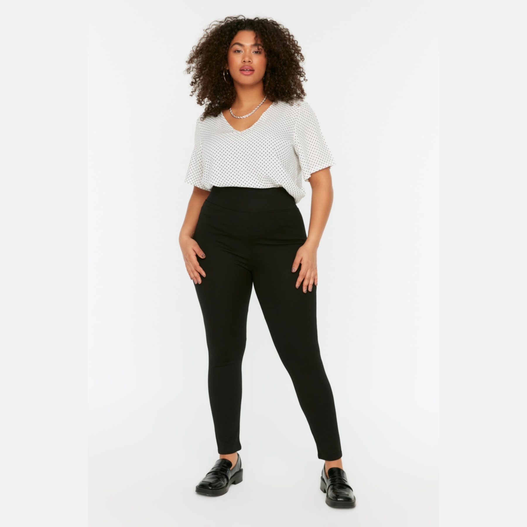 بنطال نسائي كبير الحجم بلون أسود، مصنوع من خامة تريكو مطاطية بتركيبة فيسكوز وبوليستر وإيلاستان، يتميز بقصة تشكيلية تبرز القوام، وخصر مرتفع بخصائص مطاطية تمنح دعمًا وراحة أثناء الحركة. تصميم مثالي للإطلالات اليومية المحتشمة في جميع المواسم.