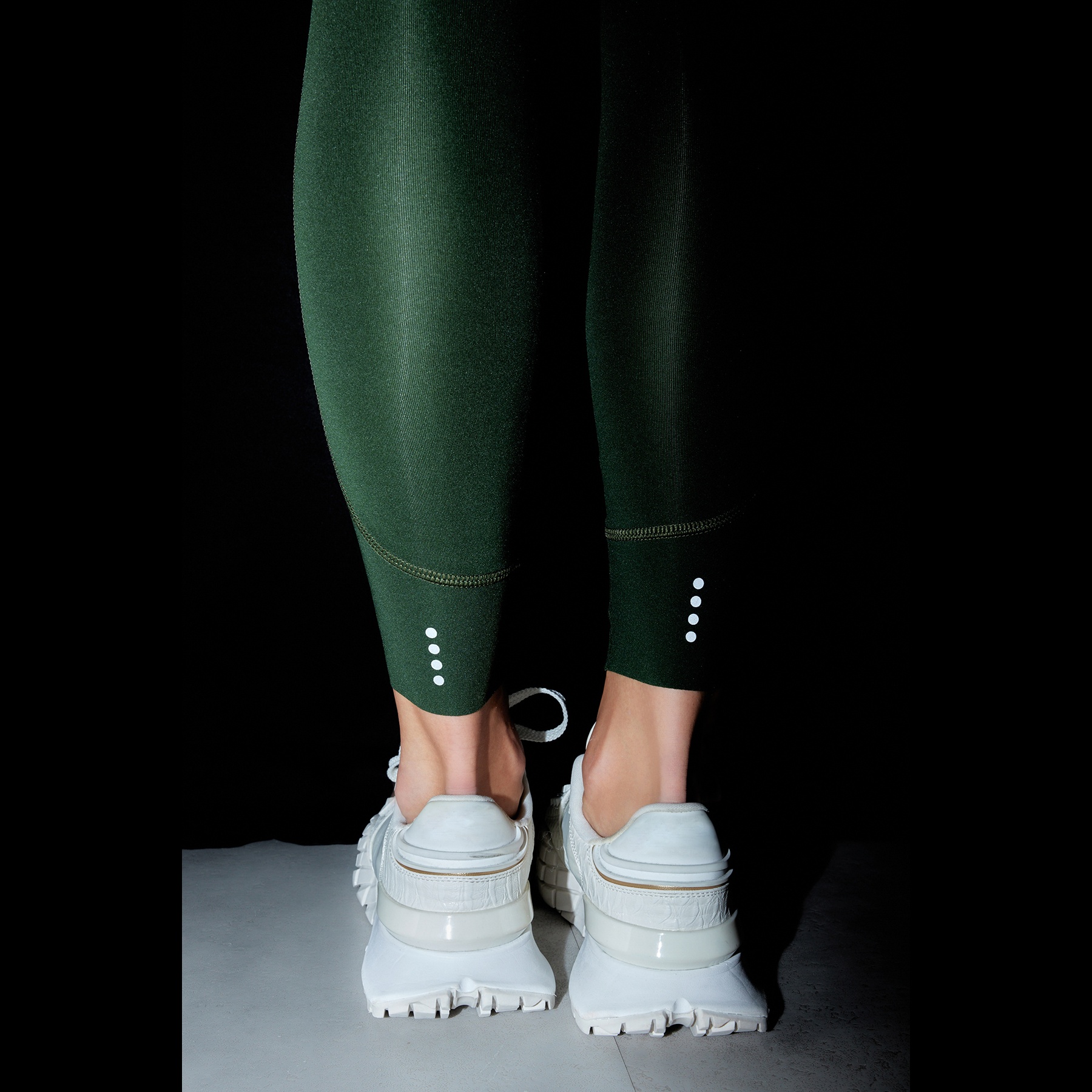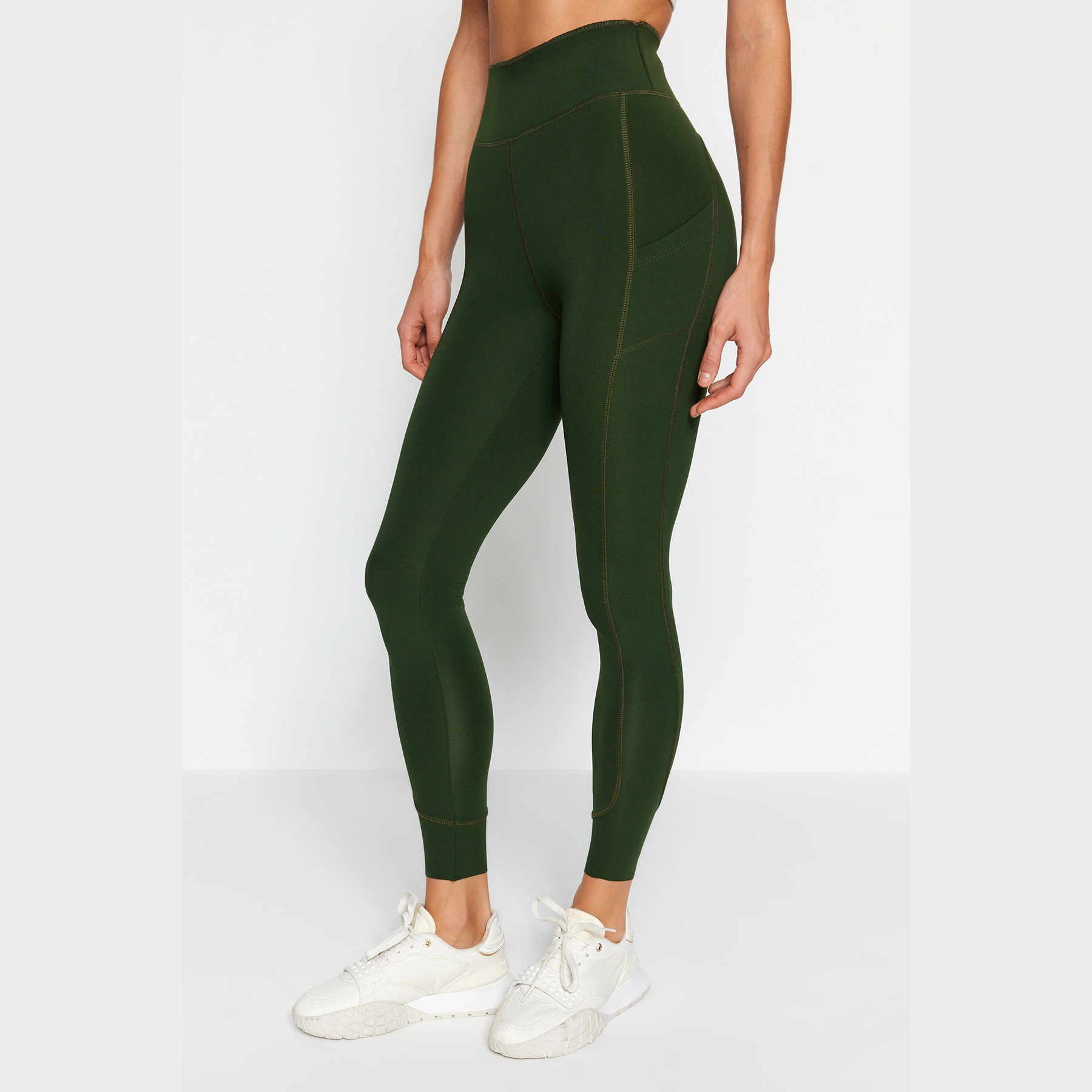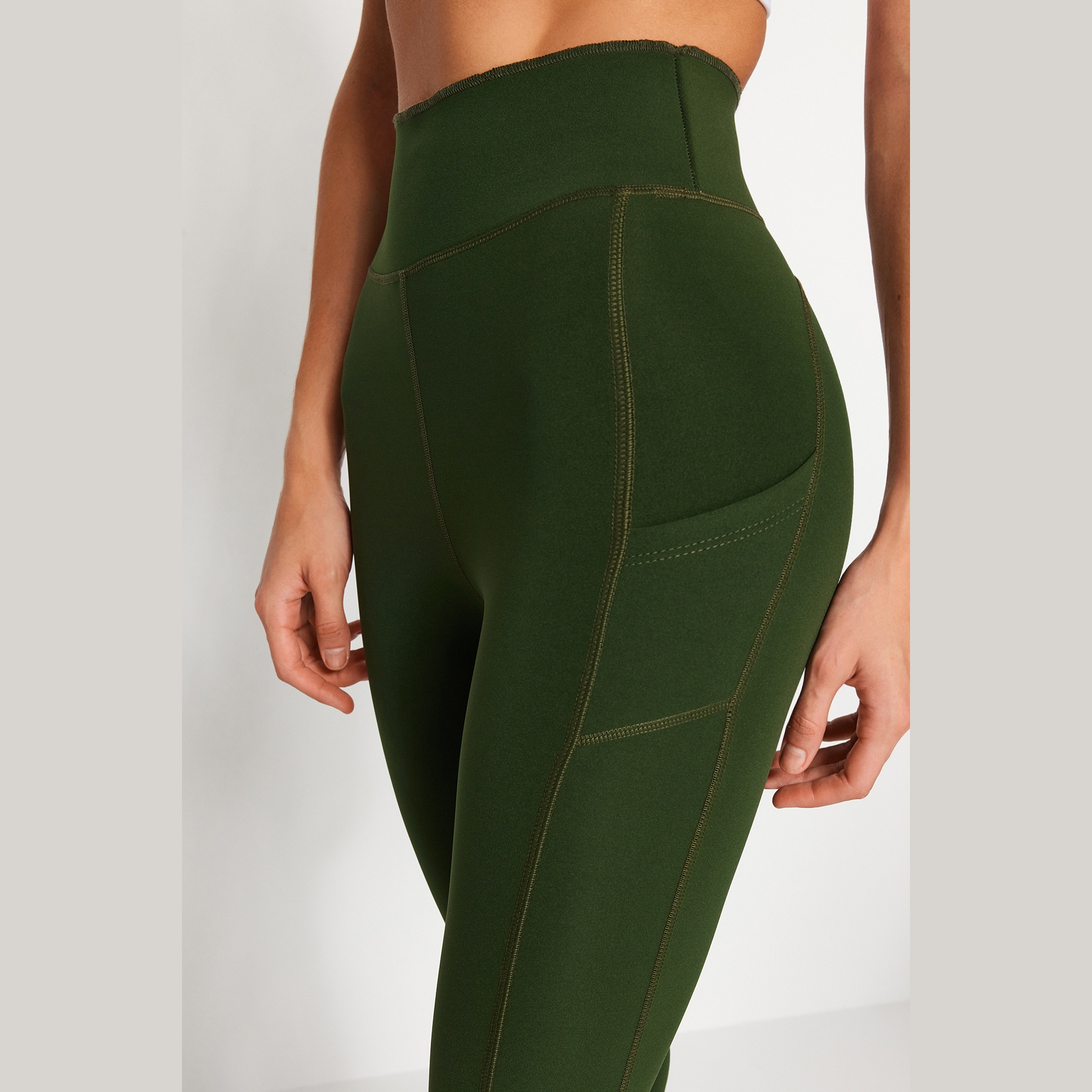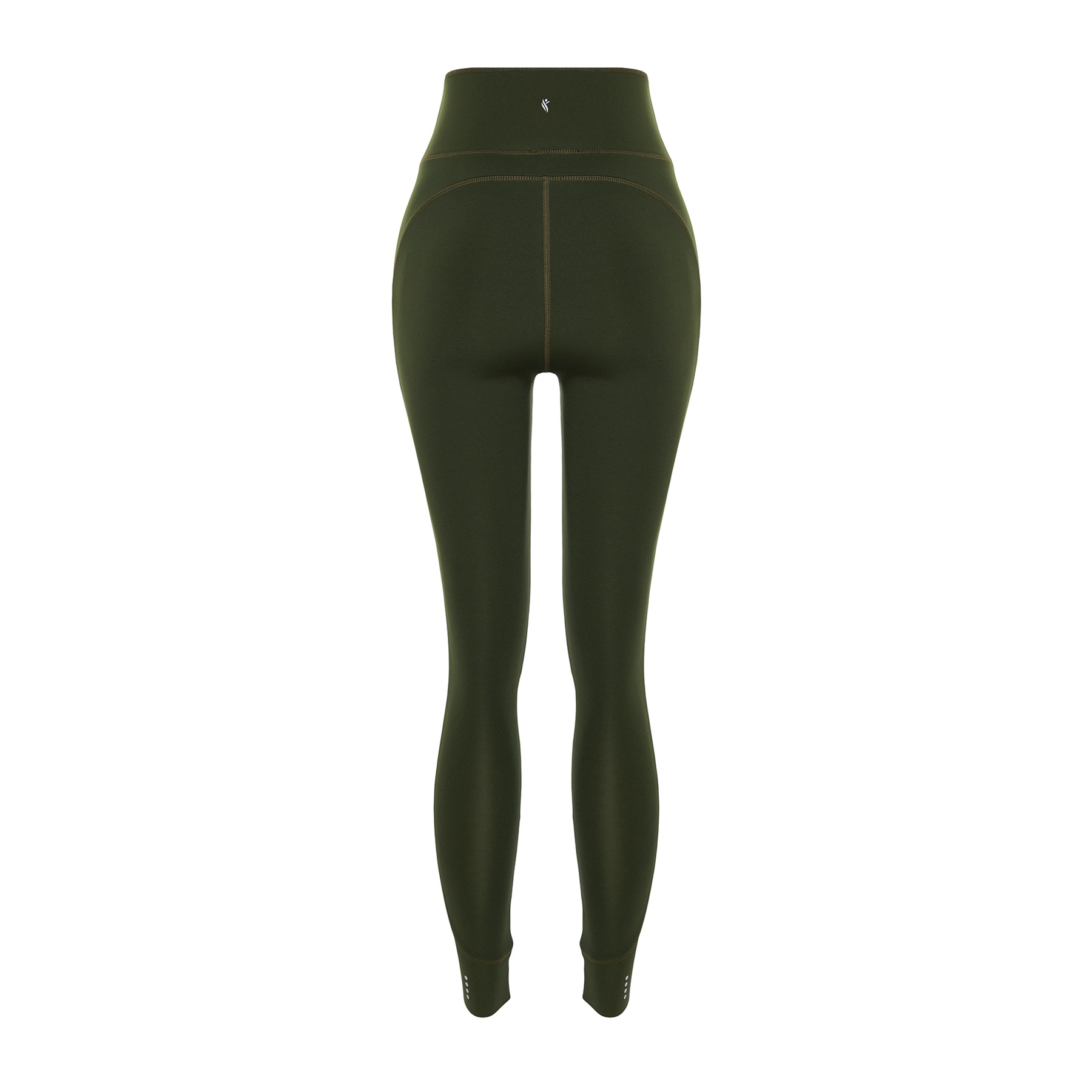بنطال رياضي نسائي بلون كُحلي داكن مائل إلى الزيتوني (كويو دونوك هاكي)، مصنوع من خامة تريكو مطاطية بتركيبة بوليستر وإيلاستان، يتميز بطول كامل وقصة ضيقة تبرز القوام، مع طبقة داخلية إضافية لشد البطن تمنح دعمًا وأناقة، وخامة مطفية تمنح مظهرًا متماسكًا وعمليًا. تصميم مثالي للتمارين أو الإطلالات اليومية المحتشمة.
