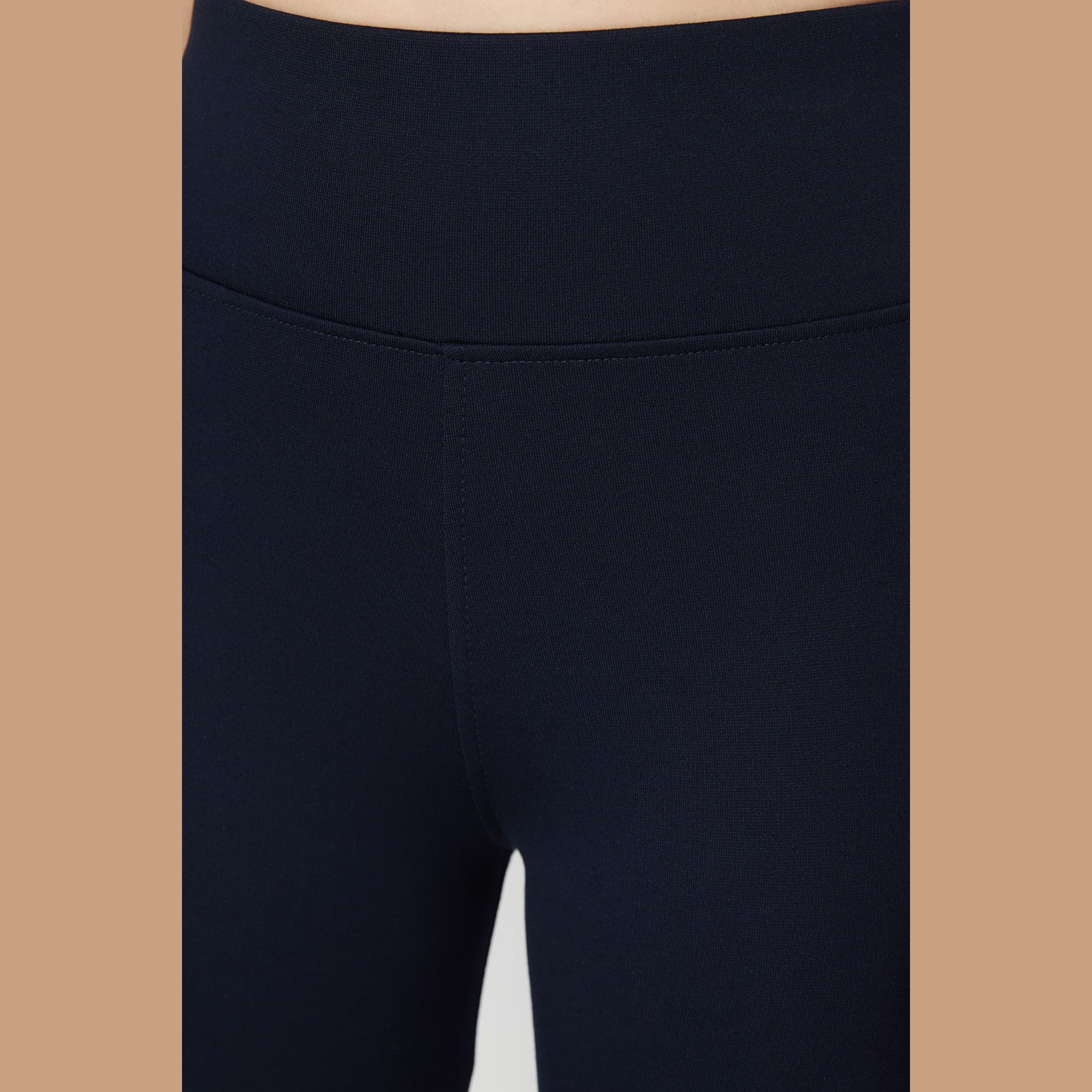 بنطال نسائي – كحلي بقصة أساسية وخصر مطاطي (تصميم مريح بخامة إنترلوك مرنة)