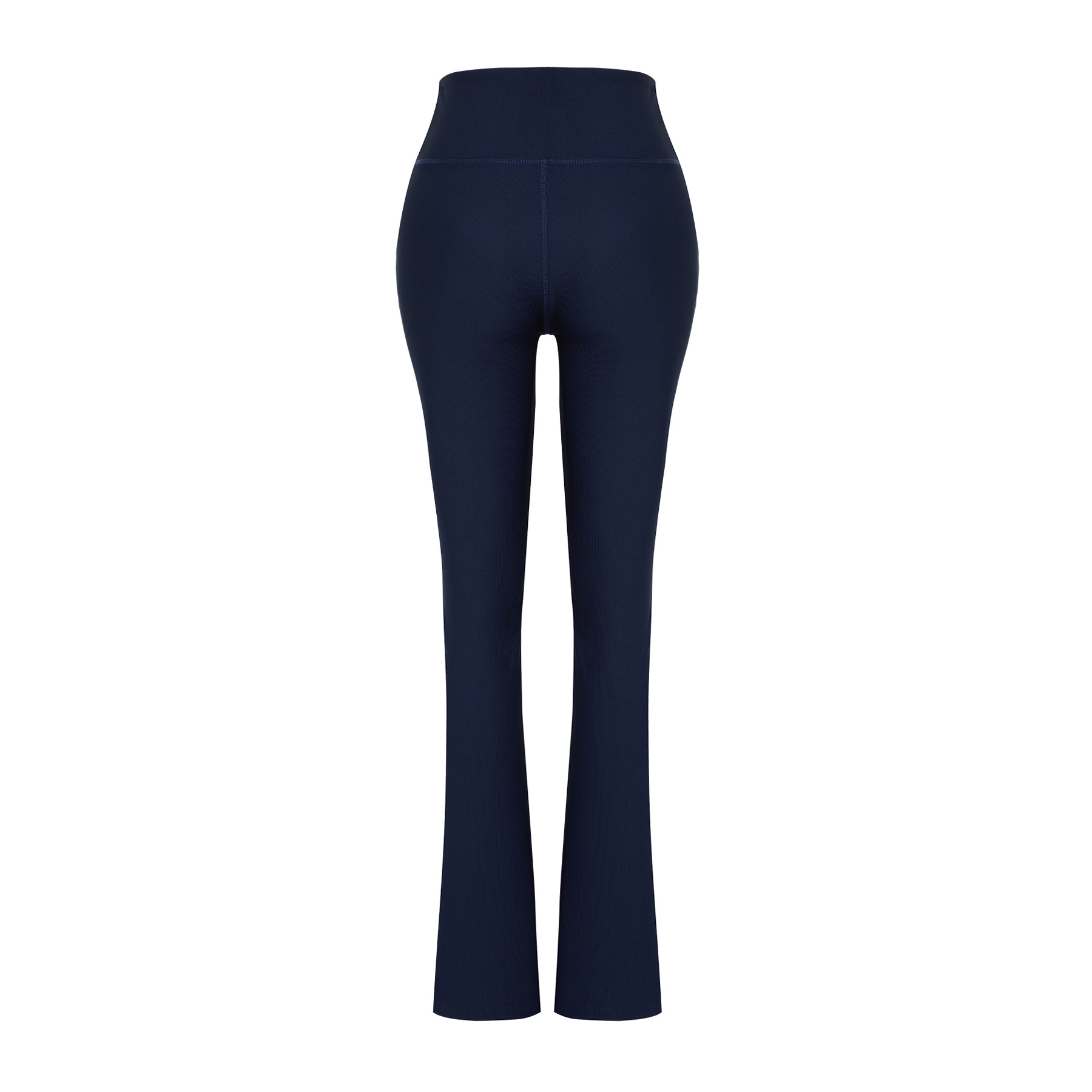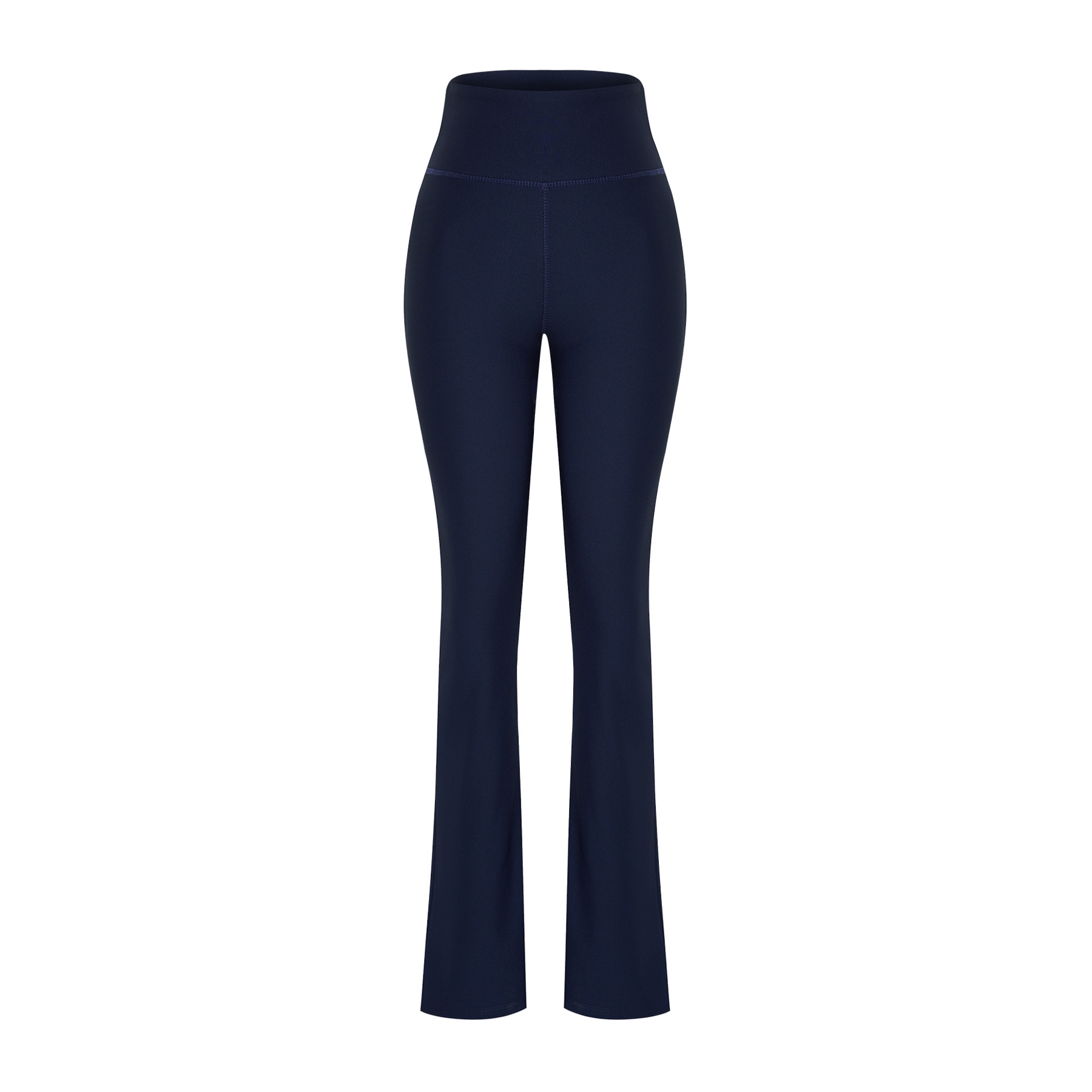 بنطال رياضي نسائي – كحلي داكن بقصة إسبانية وخامة مضلّعة (تصميم مريح بطول كامل)