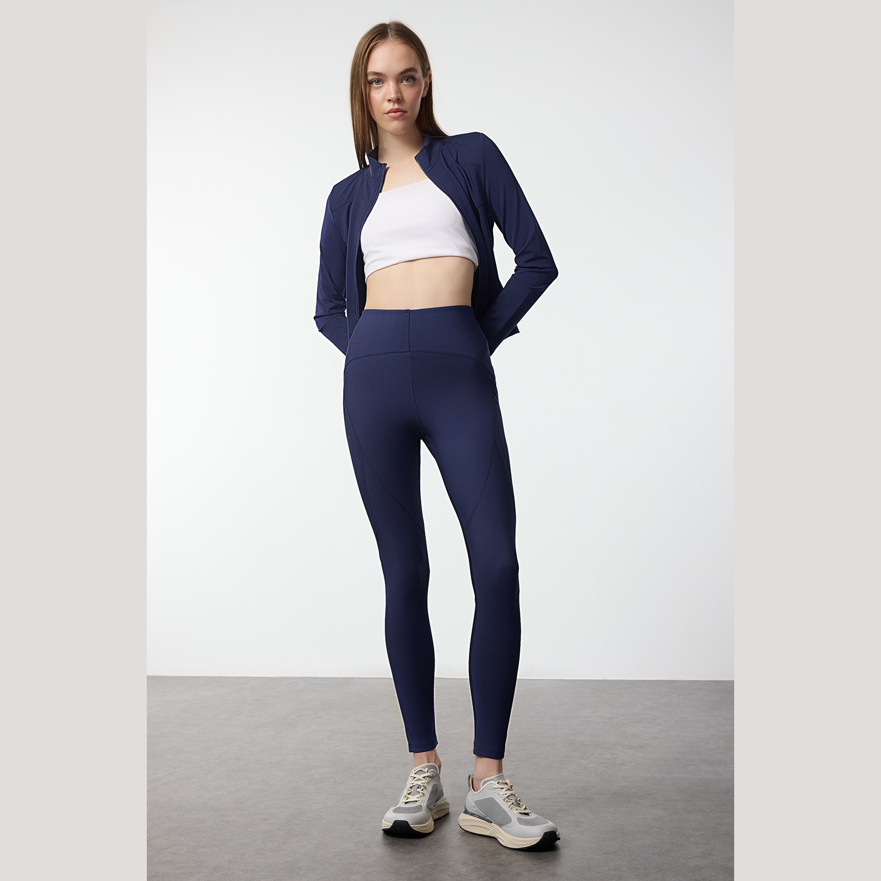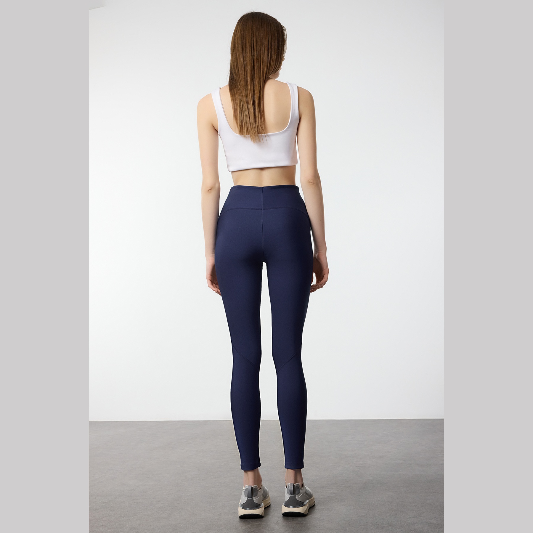 بنطال رياضي نسائي بلون كحلي (Lacivert)، مصنوع من خامة تريكو مطاطية بتركيبة بوليستر وإيلاستان، يتميز بطول كامل، خصر مرتفع، وقصة ضيقة، مع خاصية Toparlayıcı التي تمنح تأثيرًا مشدودًا ومُحددًا للقوام. تصميم مثالي للتمارين أو الإطلالات اليومية المحتشمة.