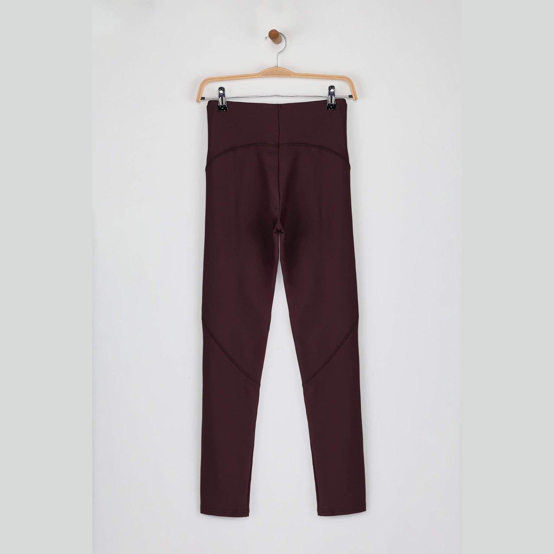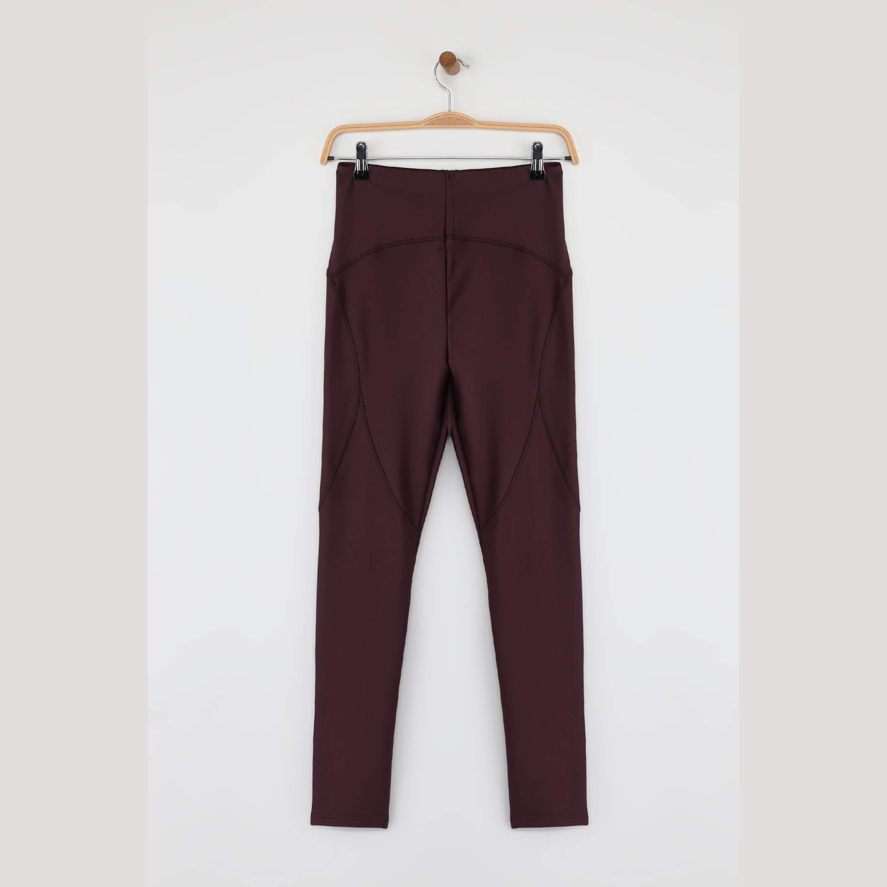 بنطال رياضي نسائي بلون مُرْدُمي داكن (Koyu Mürdüm)، مصنوع من خامة تريكو مطاطية بتركيبة بوليستر وإيلاستان، يتميز بطول كامل، خصر مرتفع، وقصة ضيقة، مع خاصية Toparlayıcı التي تمنح تأثيرًا مشدودًا ومُحددًا للقوام. تصميم مثالي للتمارين أو الإطلالات اليومية المحتشمة.