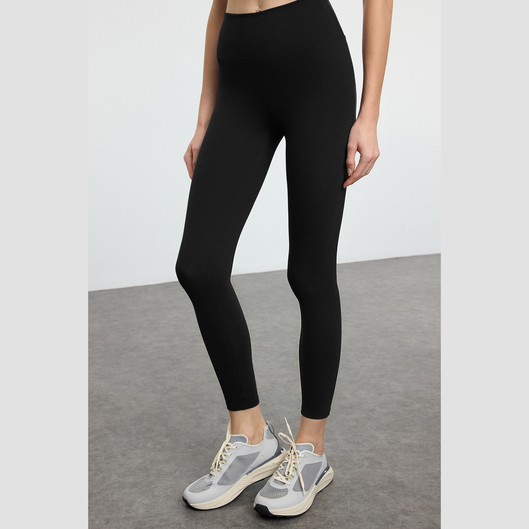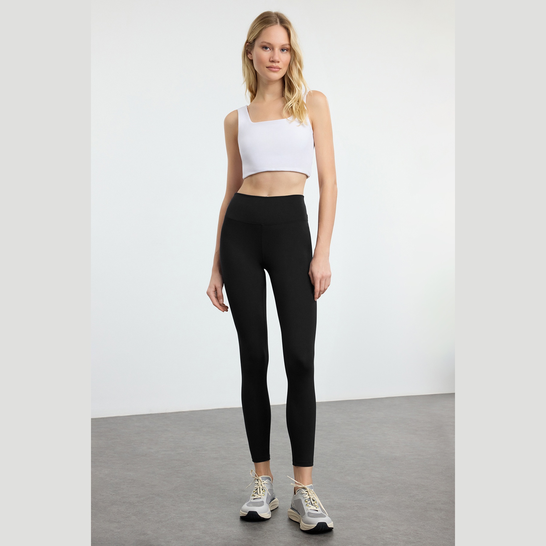 بنطال رياضي نسائي بلون أسود (Siyah)، مصنوع من خامة تريكو مطاطية بنسيج سكوبا فُرشي ناعم يمنح ملمسًا دافئًا ومريحًا، يتميز بطول كامل، خصر مرتفع، وقصة ضيقة، مع تفاصيل طباعة عاكسة تضيف لمسة عصرية. تصميم مثالي للرياضة أو الإطلالات اليومية المحتشمة.
