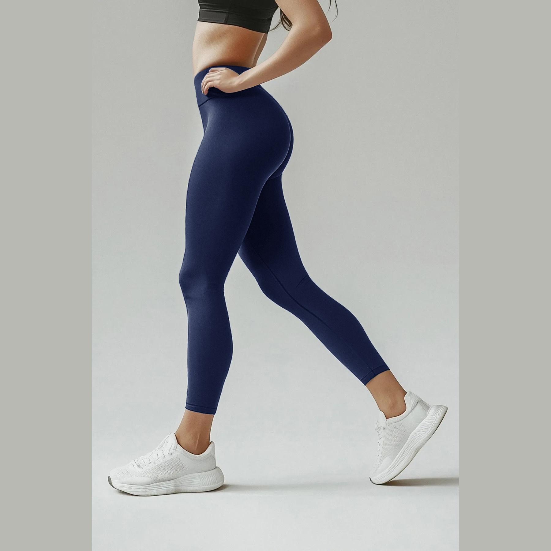بنطال نسائي – كحلي بخاصية شدّ القوام وحزام مطاطي (تصميم عملي بقصة ضيقة وخصر مرتفع)