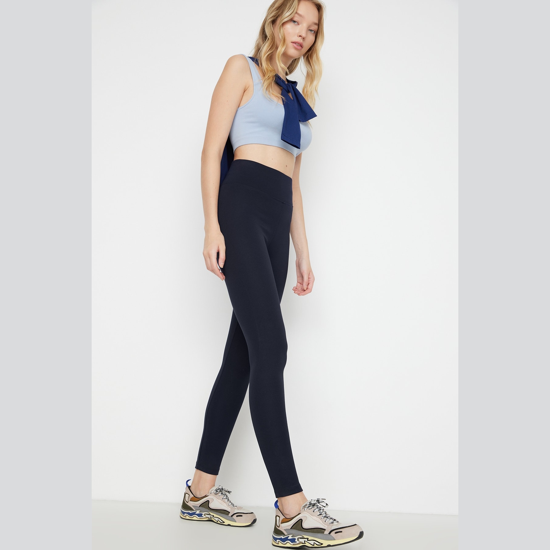 بنطال نسائي بلون كحلي (Lacivert)، مصنوع من خامة تريكو مطاطية بتركيبة فسكوز وبوليستر وإيلاستان، يتميز بخاصية Toparlayıcı لشد القوام، خصر مرتفع، قصة ضيقة، وحزام مطاطي مريح. تصميم مثالي للإطلالات اليومية العملية والمحتشمة.