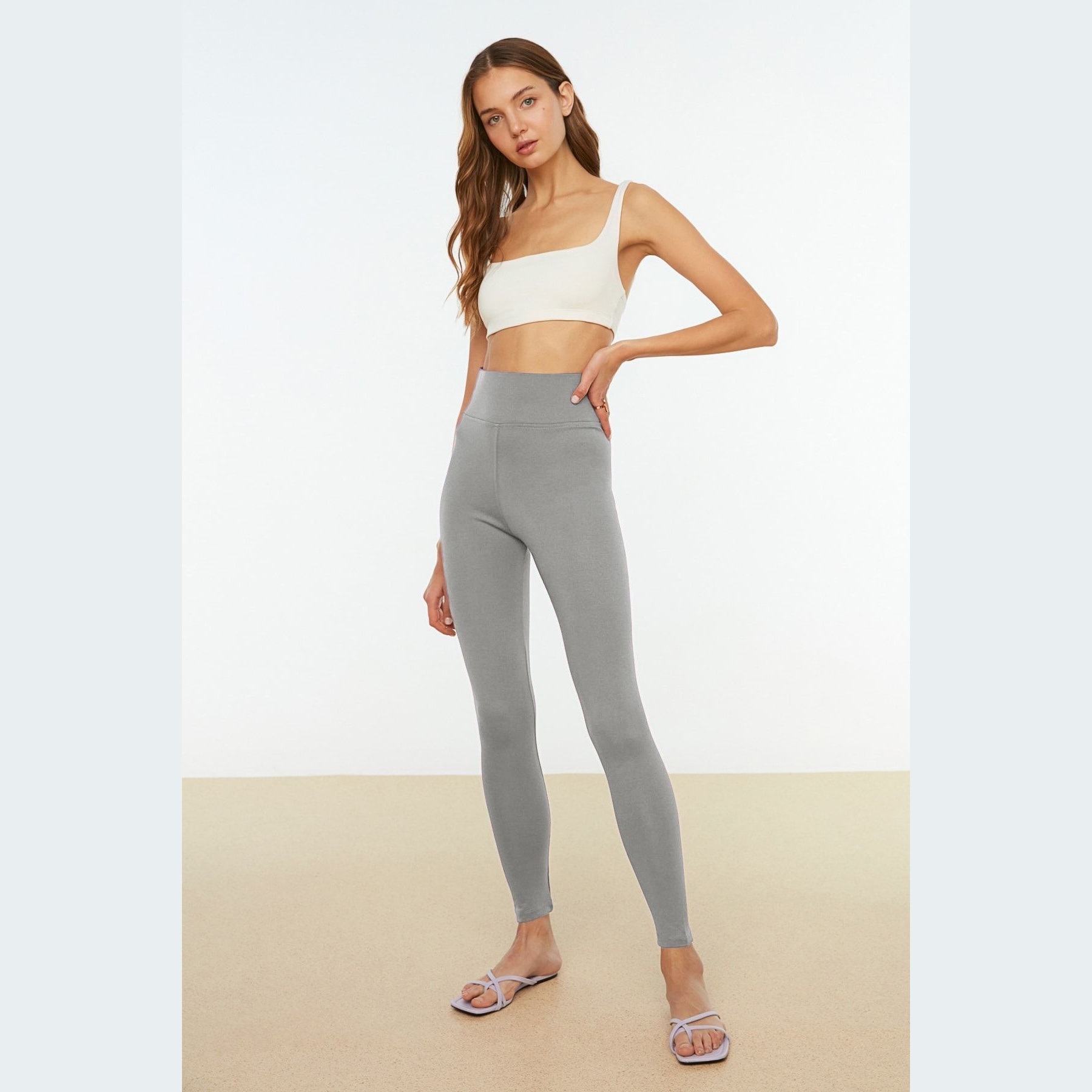 بنطال نسائي بلون رمادي داكن (Koyu Gri)، مصنوع من خامة تريكو مطاطية بتركيبة فسكوز وبوليستر وإيلاستان، يتميز بخاصية Toparlayıcı لشد القوام، خصر مرتفع، قصة ضيقة، وحزام مطاطي مريح. تصميم مثالي للإطلالات اليومية العملية والمحتشمة.