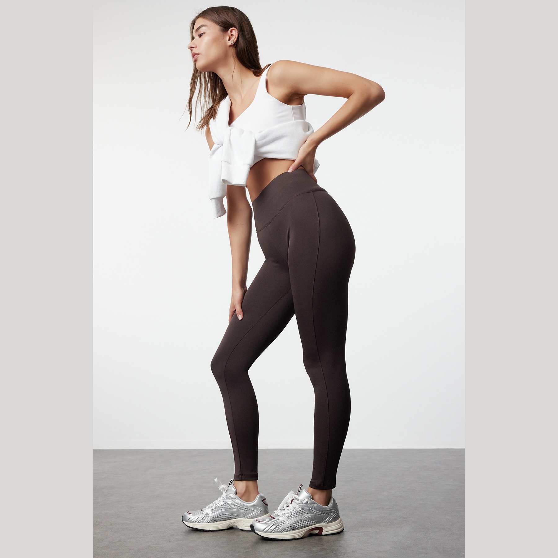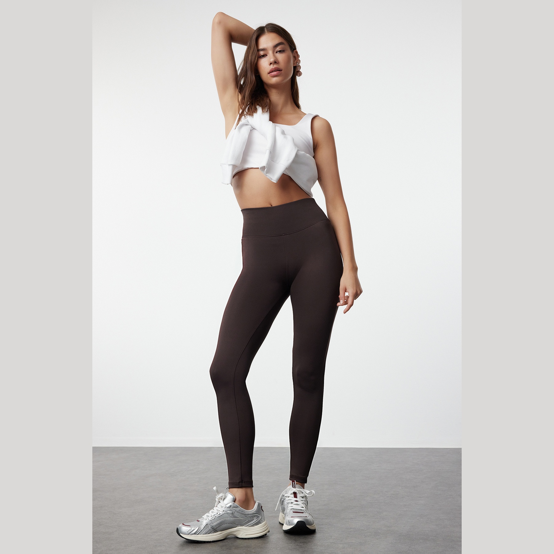 بنطال رياضي نسائي بلون بني داكن (Koyu Kahverengi)، مصنوع من خامة تريكو مطاطية بنسيج سكوبا بتركيبة بوليستر وإيلاستان، يتميز بخاصية Ekstra Toparlayıcı لشدّ القوام بشكل فعّال، خصر مرتفع، قصة ضيقة، وحزام خصر عريض يمنح ثباتًا وراحة أثناء الحركة. تصميم مثالي للرياضة أو الإطلالات اليومية المحتشمة.