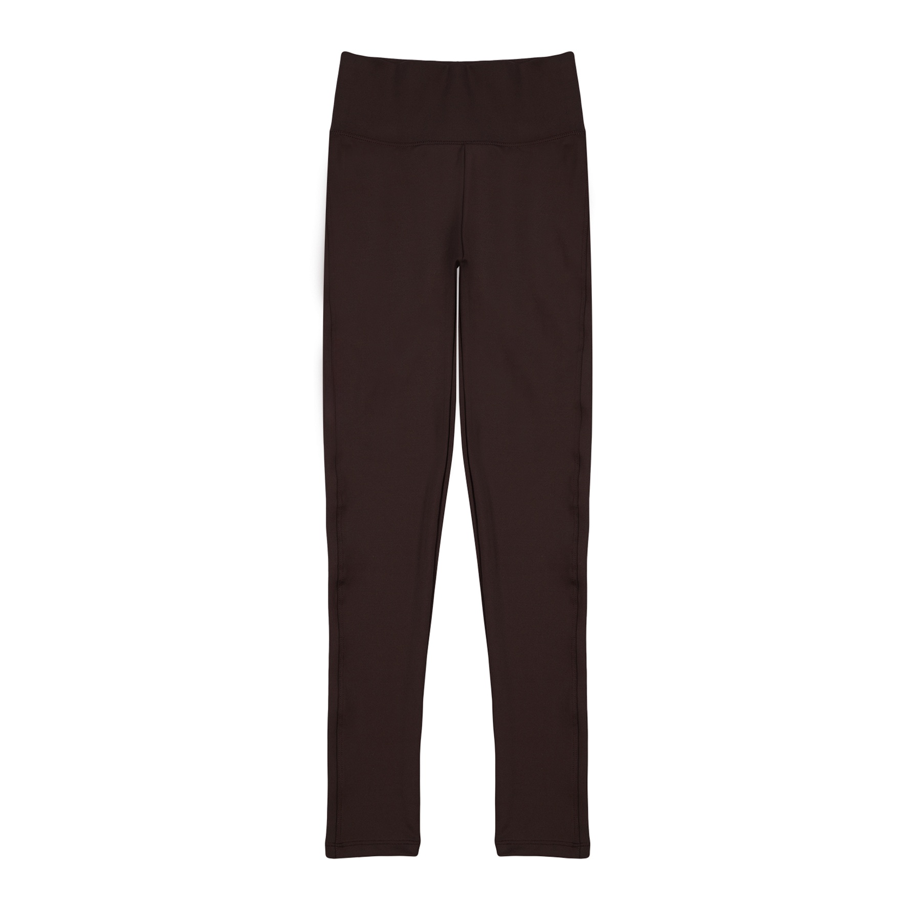 بنطال رياضي نسائي – بني داكن بخاصية شدّ إضافي وخصر عريض (تصميم عملي بطول كامل)