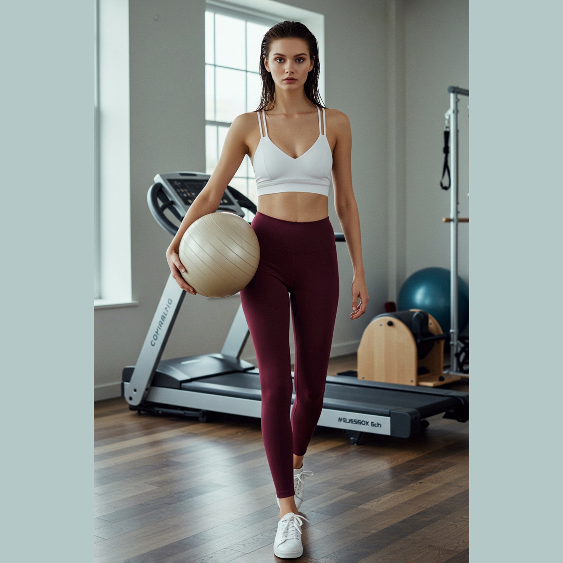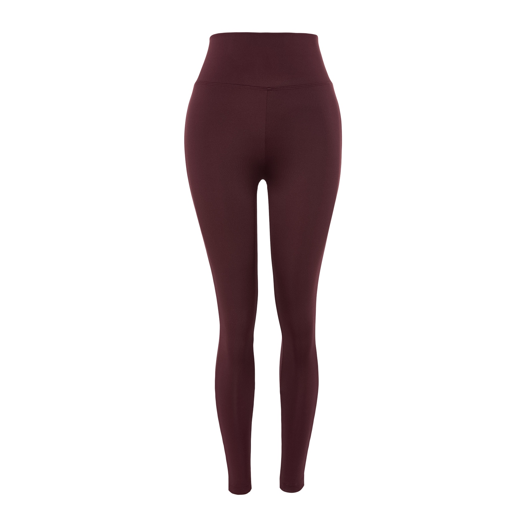 بنطال رياضي نسائي – كرزي داكن بخاصية شدّ إضافي وخصر عريض (تصميم عملي بطول كامل)