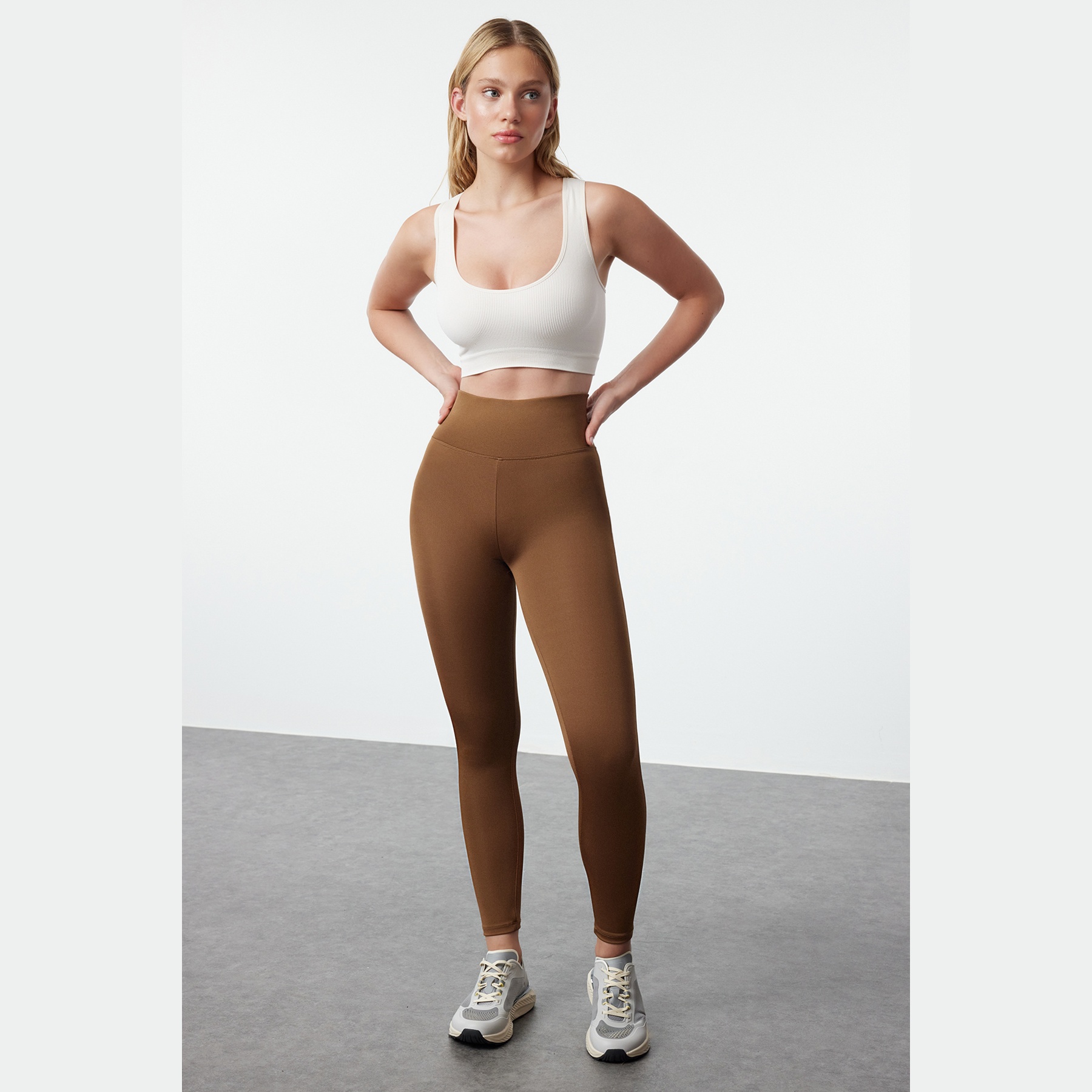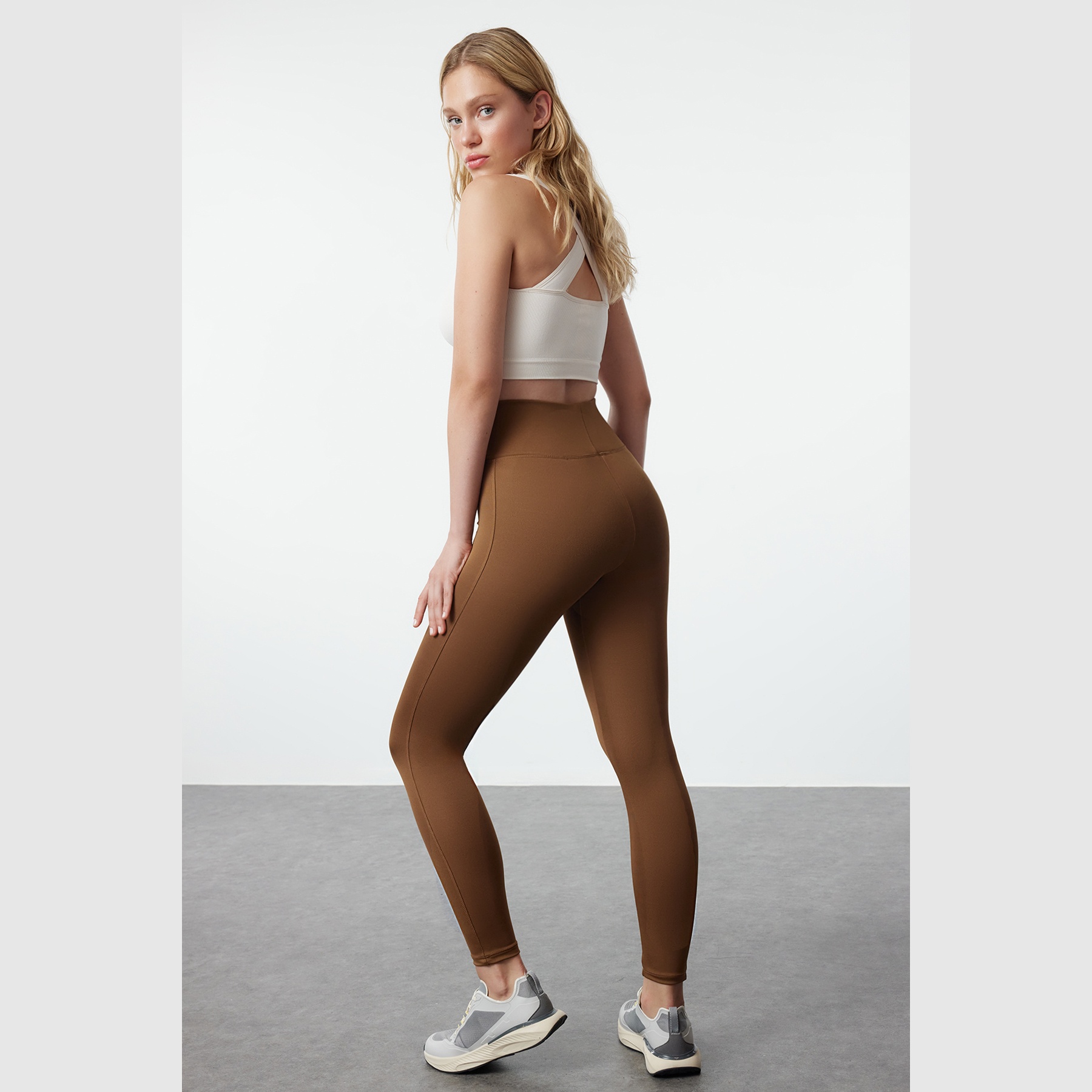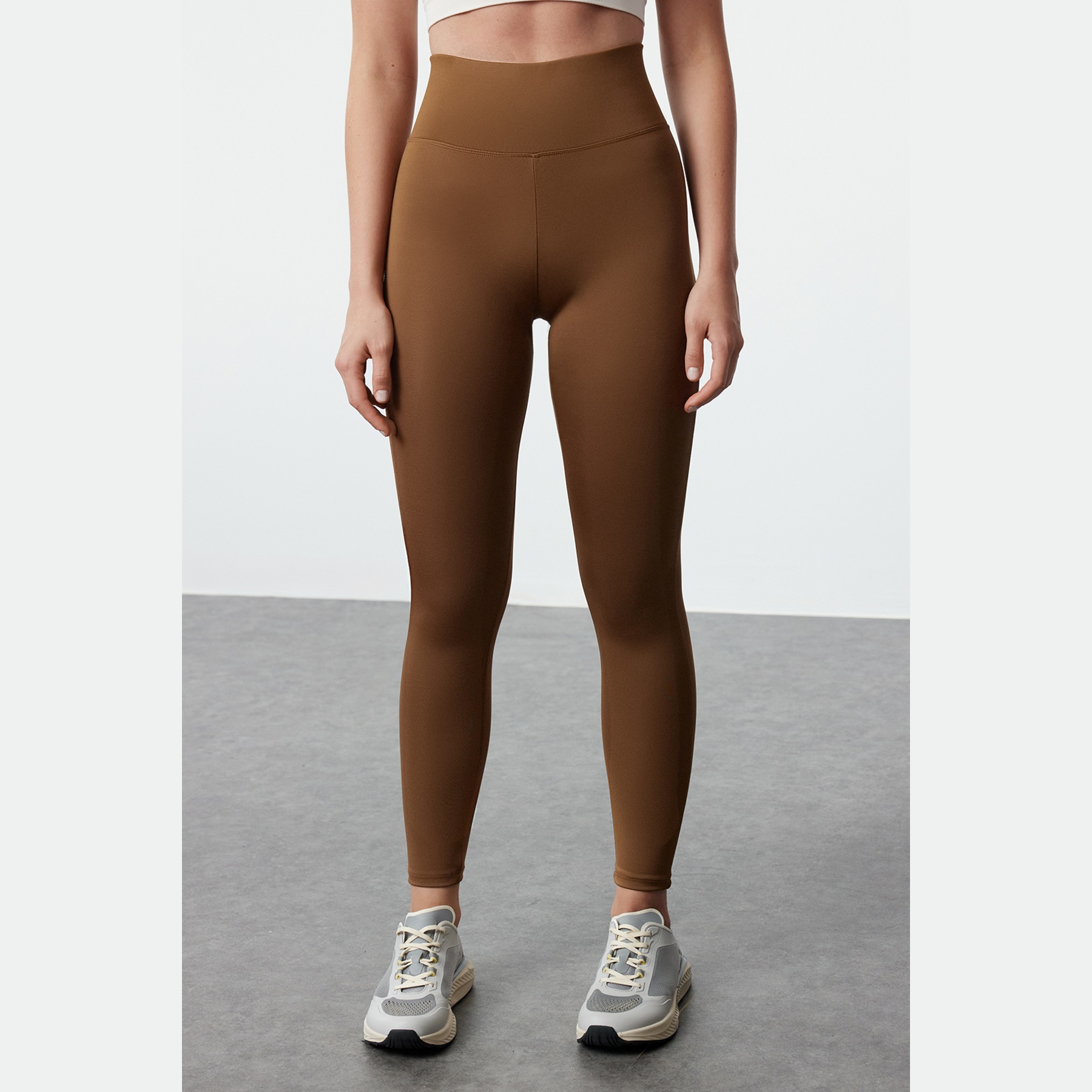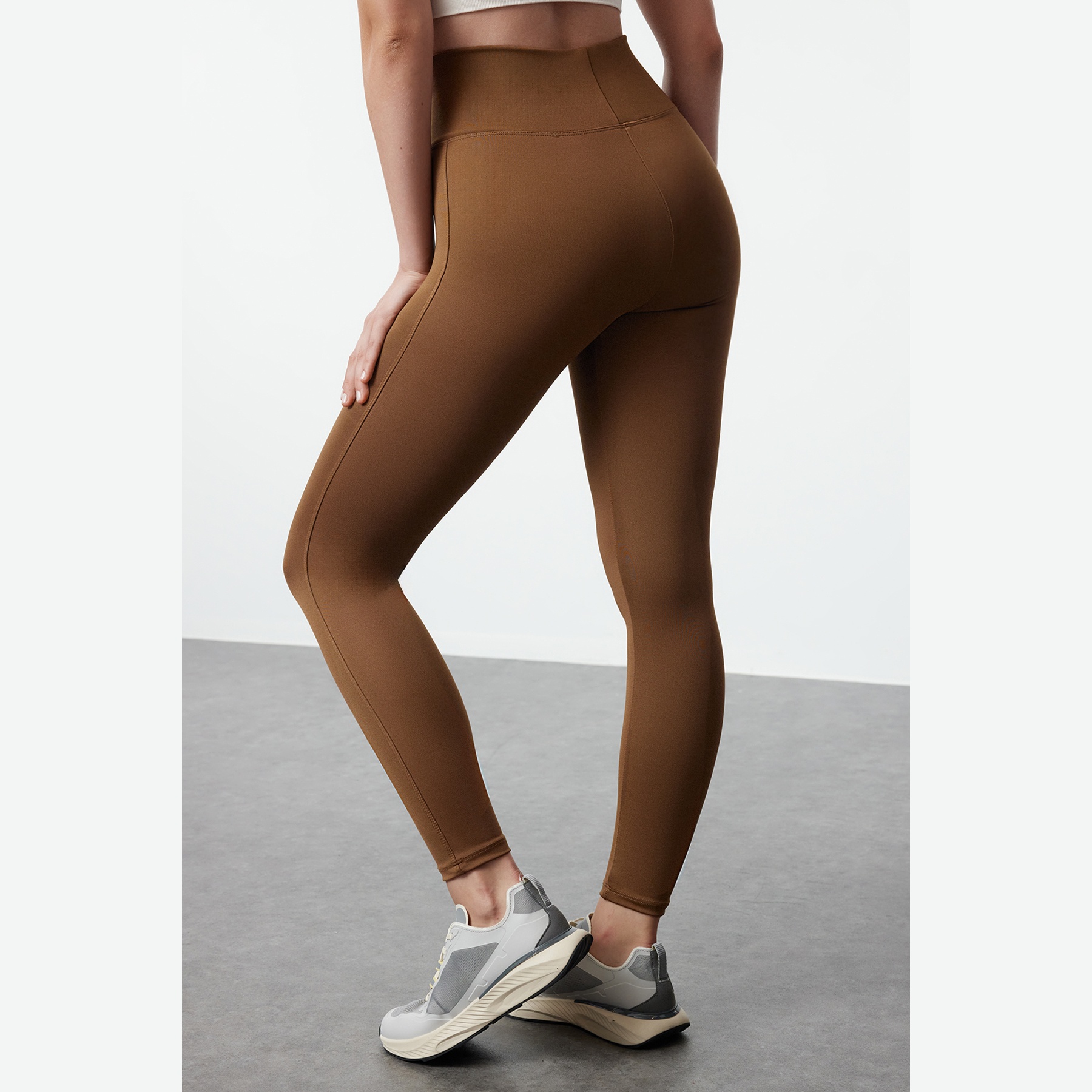بنطال رياضي نسائي بلون بني (Kahverengi)، مصنوع من خامة تريكو مطاطية بنسيج سكوبا بتركيبة بوليستر وإيلاستان، يتميز بخاصية Ekstra Toparlayıcı لشدّ القوام بشكل فعّال، خصر مرتفع، قصة ضيقة، وحزام خصر عريض يمنح ثباتًا وراحة أثناء الحركة. تصميم مثالي للرياضة أو الإطلالات اليومية المحتشمة.