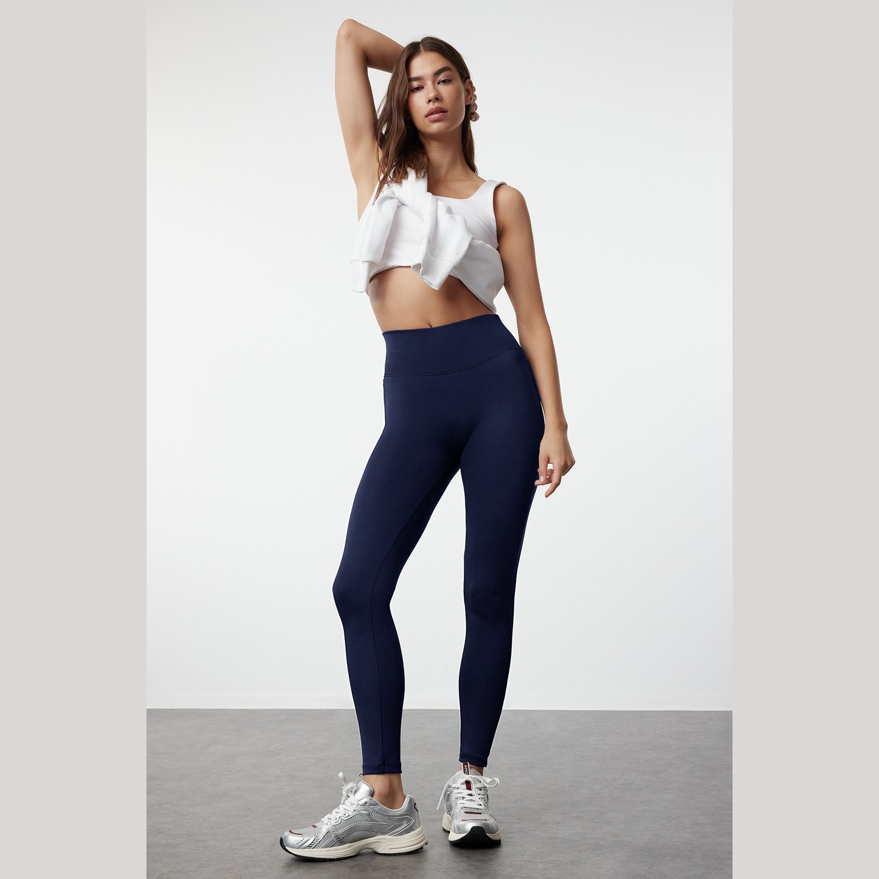 بنطال رياضي نسائي بلون كُحلي (Lacivert)، مصنوع من خامة تريكو مطاطية بنسيج سكوبا بتركيبة بوليستر وإيلاستان، يتميز بخاصية Ekstra Toparlayıcı لشدّ القوام بشكل فعّال، خصر مرتفع، قصة ضيقة، وحزام خصر عريض يمنح ثباتًا وراحة أثناء الحركة. تصميم مثالي للرياضة أو الإطلالات اليومية المحتشمة.