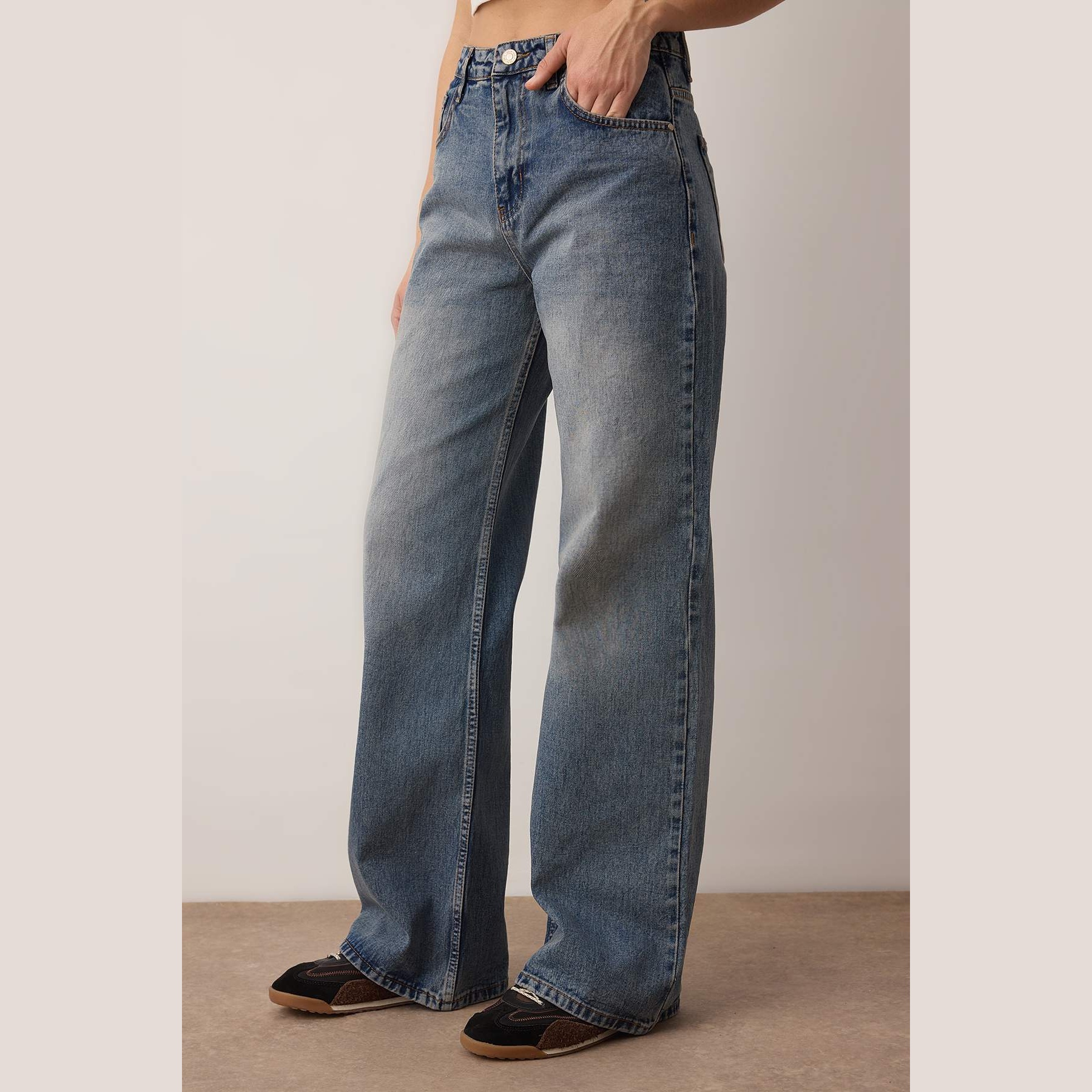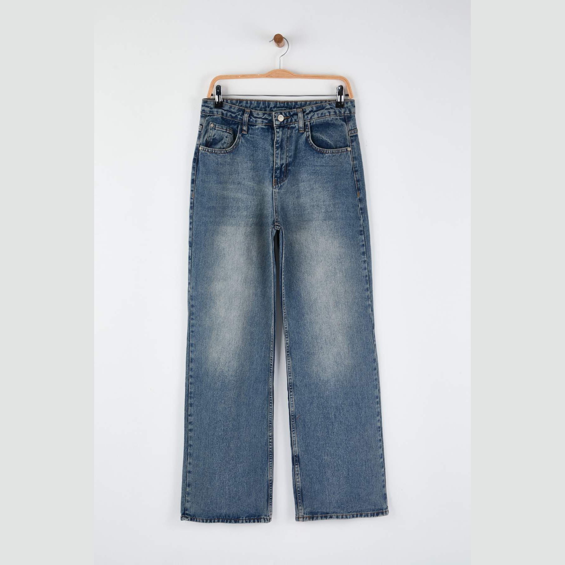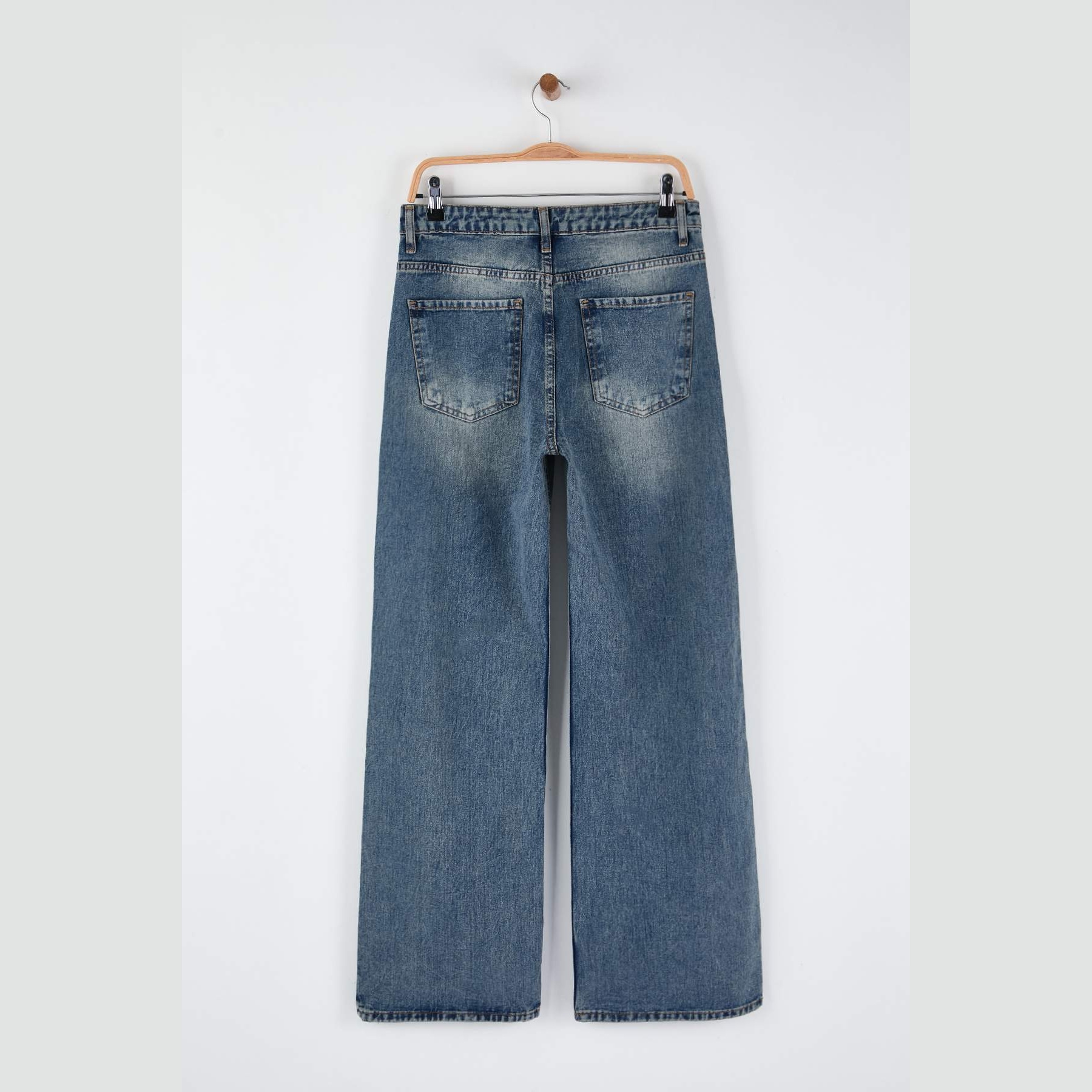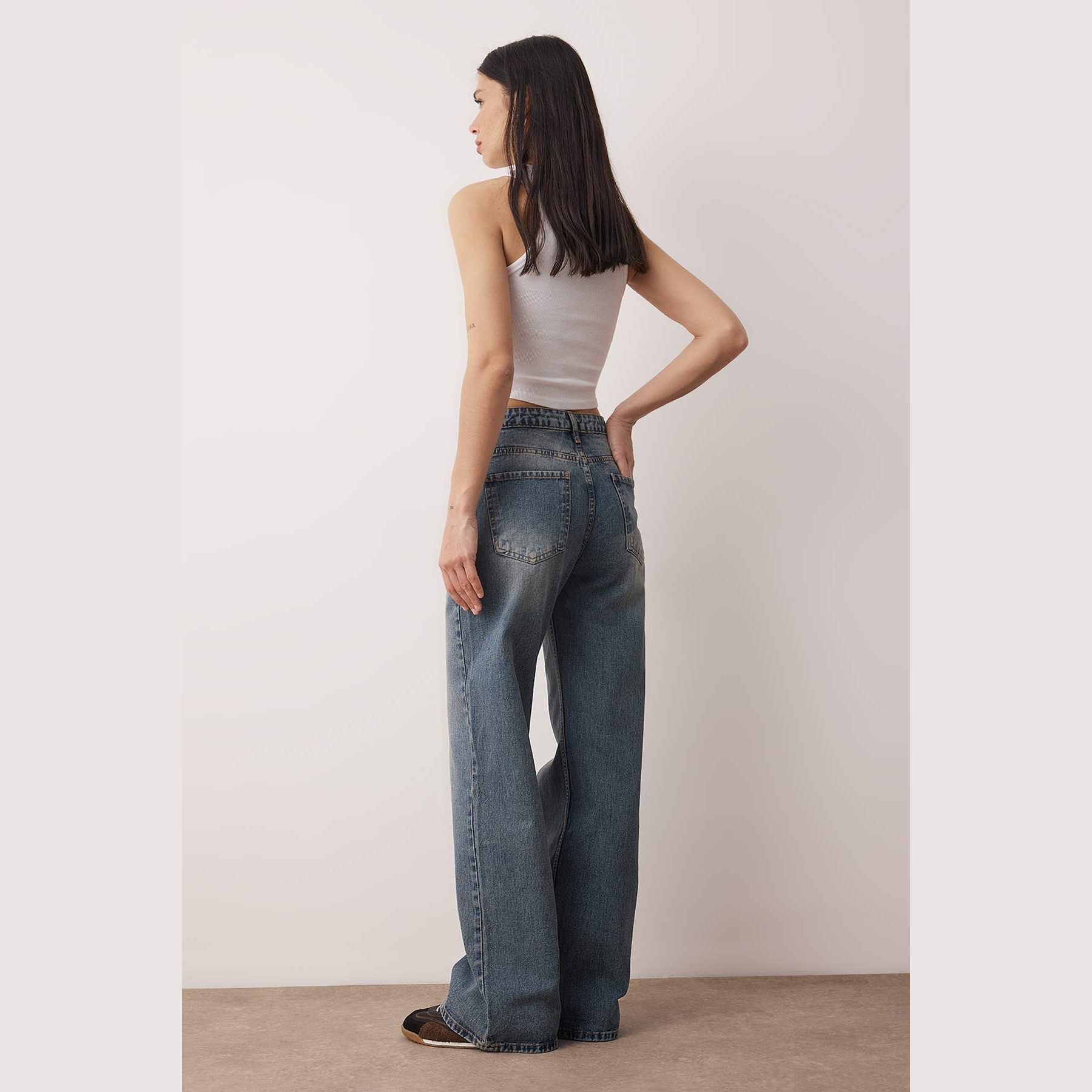 جينز نسائي بلون كُحلي داكن (Koyu Mavi)، مصنوع من خامة دنيم 100% قطن، يتميز بخصر مرتفع، قصة واسعة وطويلة (Wide Leg Palazzo)، وإغلاق بزر وسحاب. تصميم عملي وأنيق يناسب الإطلالات اليومية الكاجوال مع لمسة عصرية.