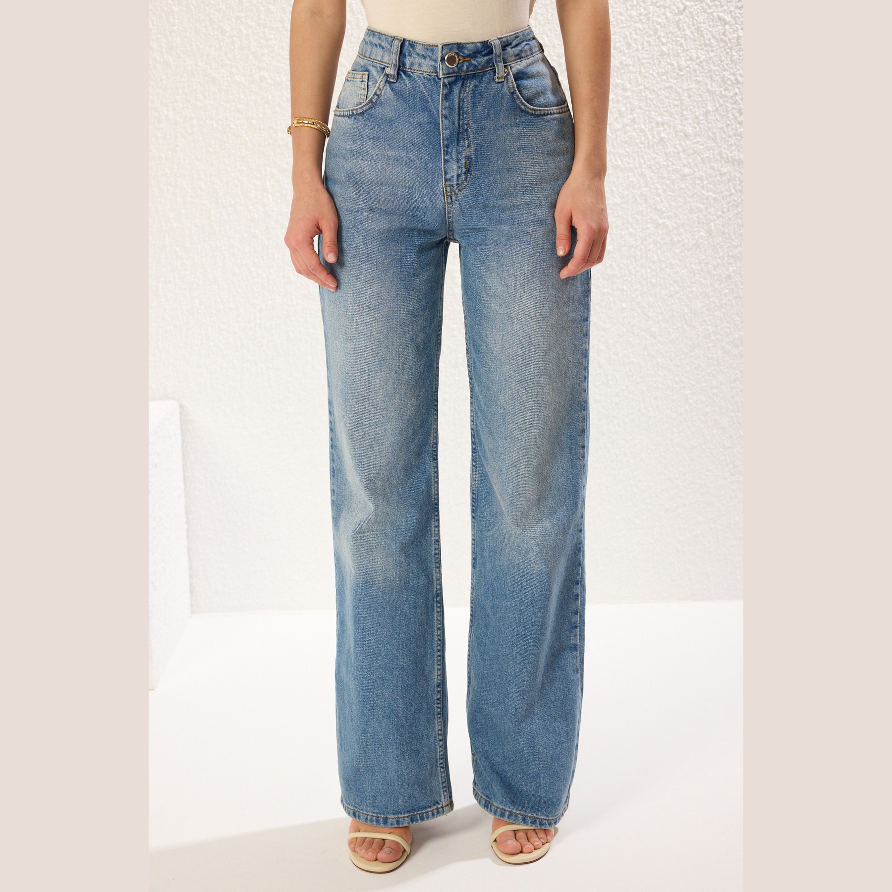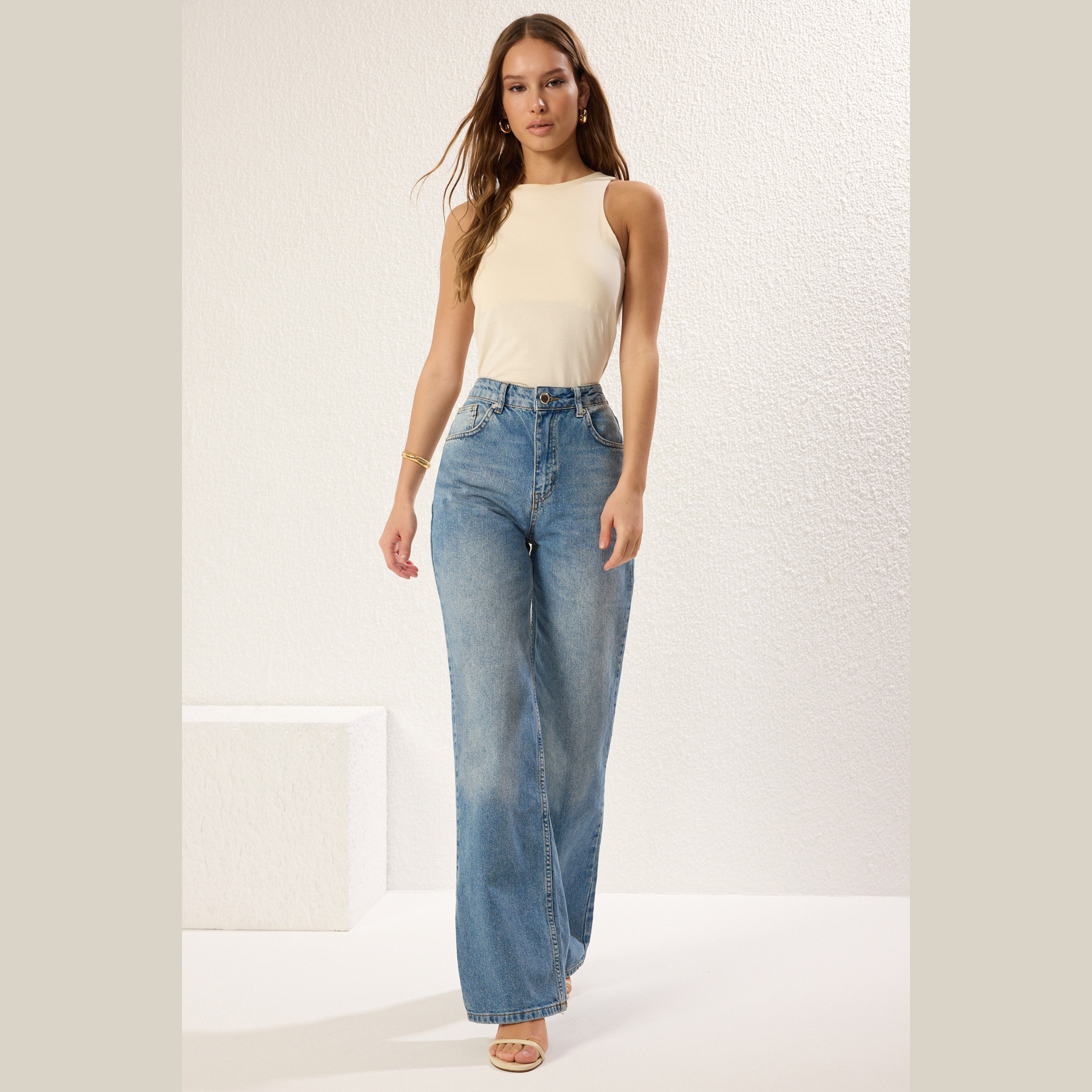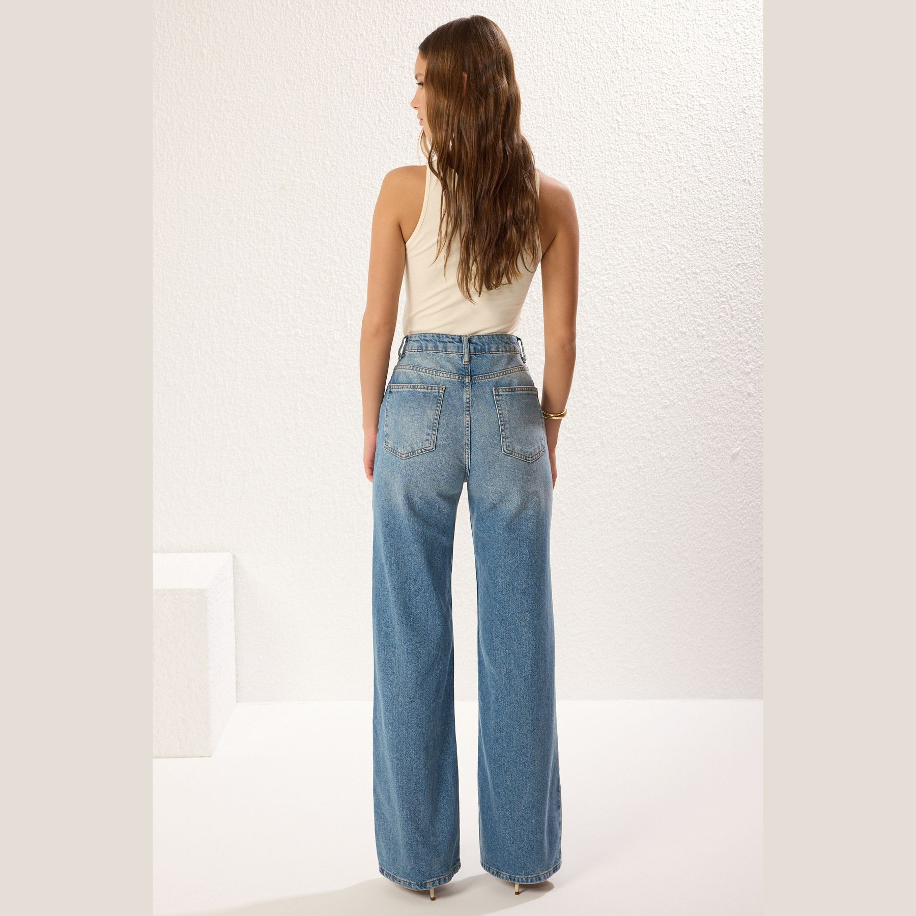 جينز نسائي – أزرق بخصر مرتفع وقصة واسعة (Wide Leg)