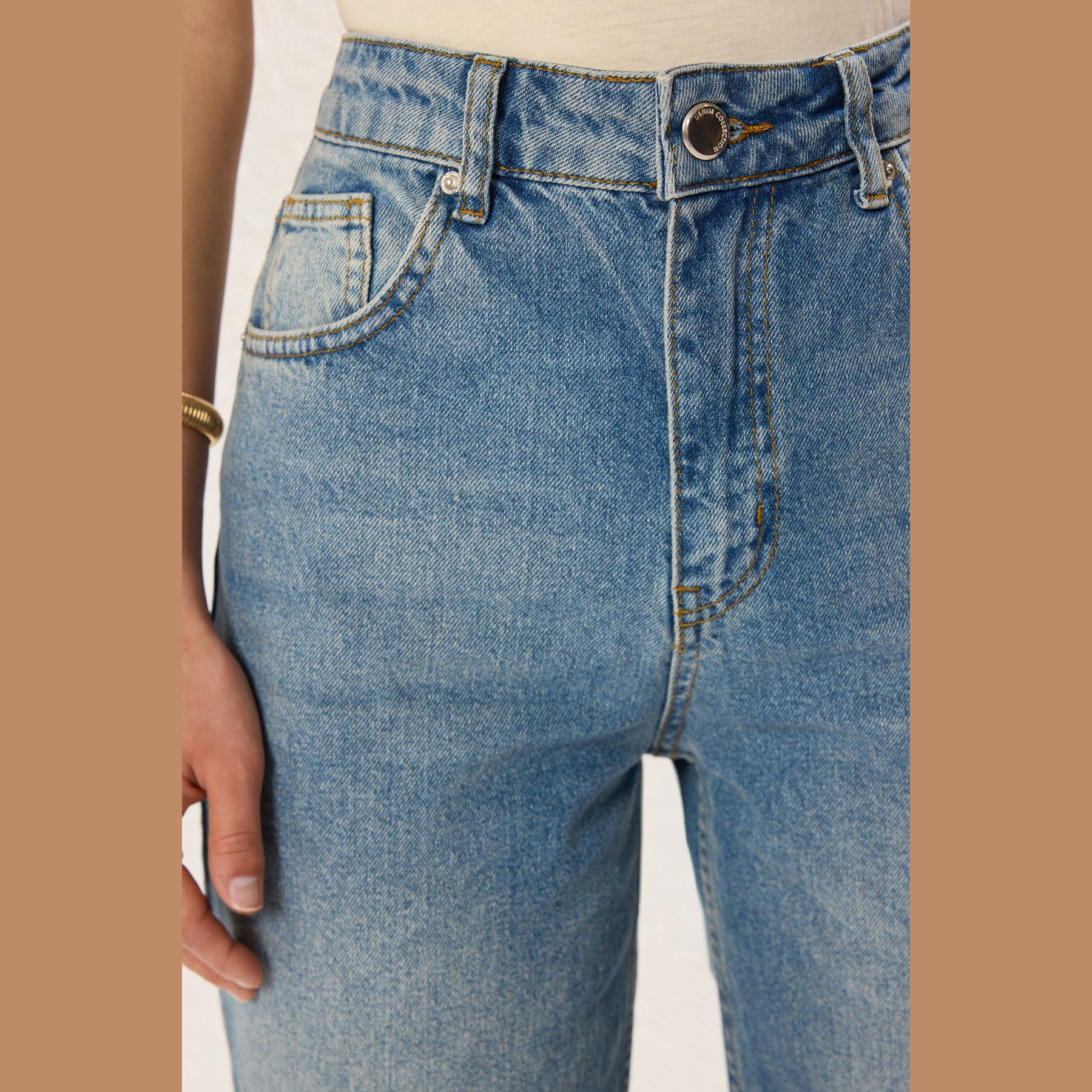 جينز نسائي بلون أزرق (Mavi)، مصنوع من خامة دنيم 100% قطن، يتميز بخصر مرتفع، قصة واسعة (Wide Leg)، وإغلاق بزر وسحاب. تصميم عملي وأنيق يناسب الإطلالات اليومية الكاجوال مع لمسة عصرية.