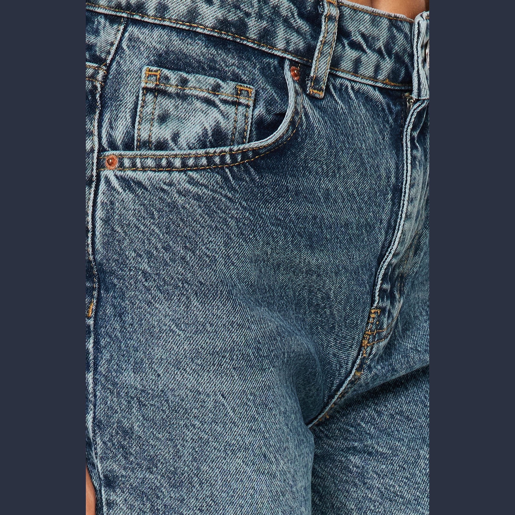- الخصائص الإضافية: تأثير باهت Vintage – قصة واسعة – خصر مرتفع – إغلاق بزر وسحاب