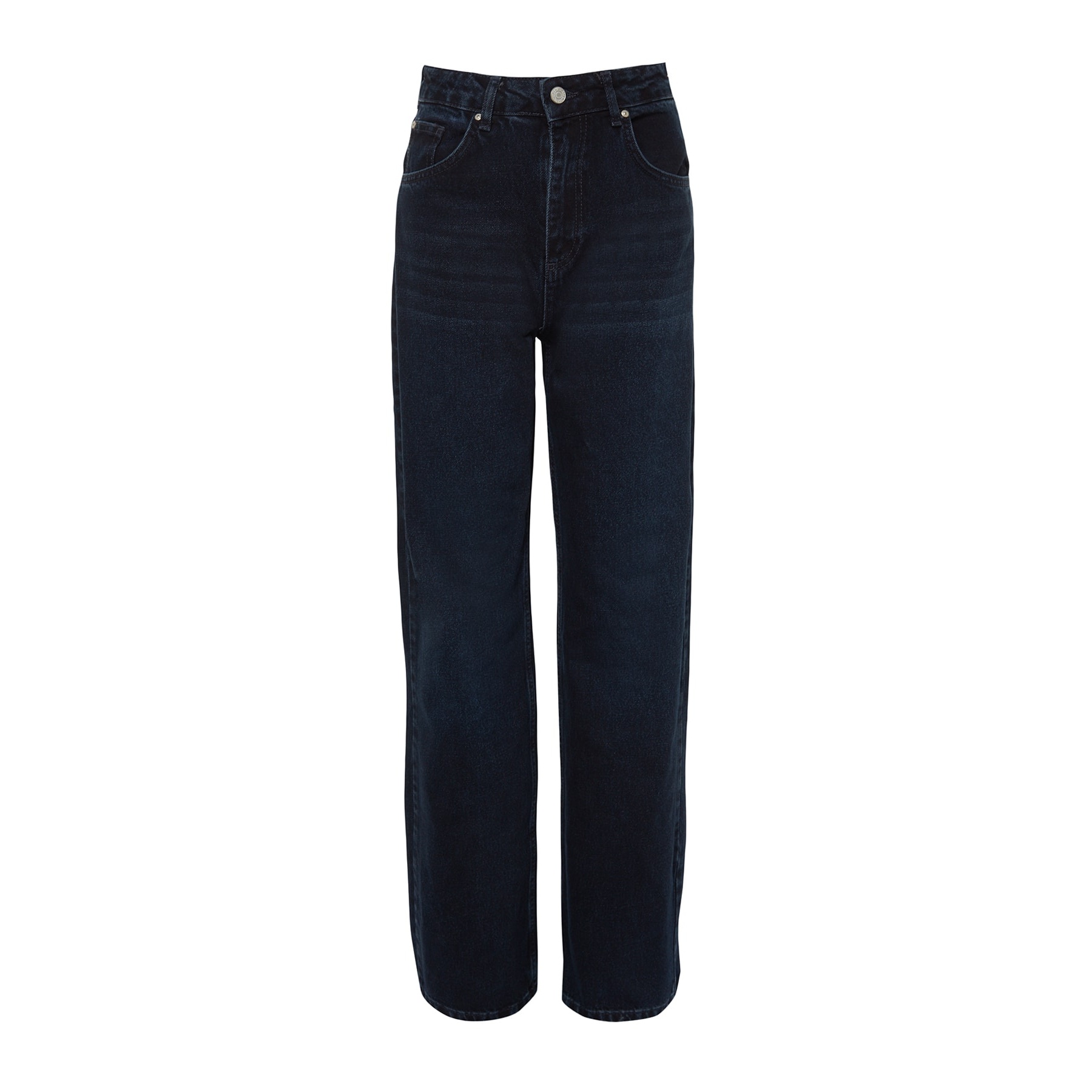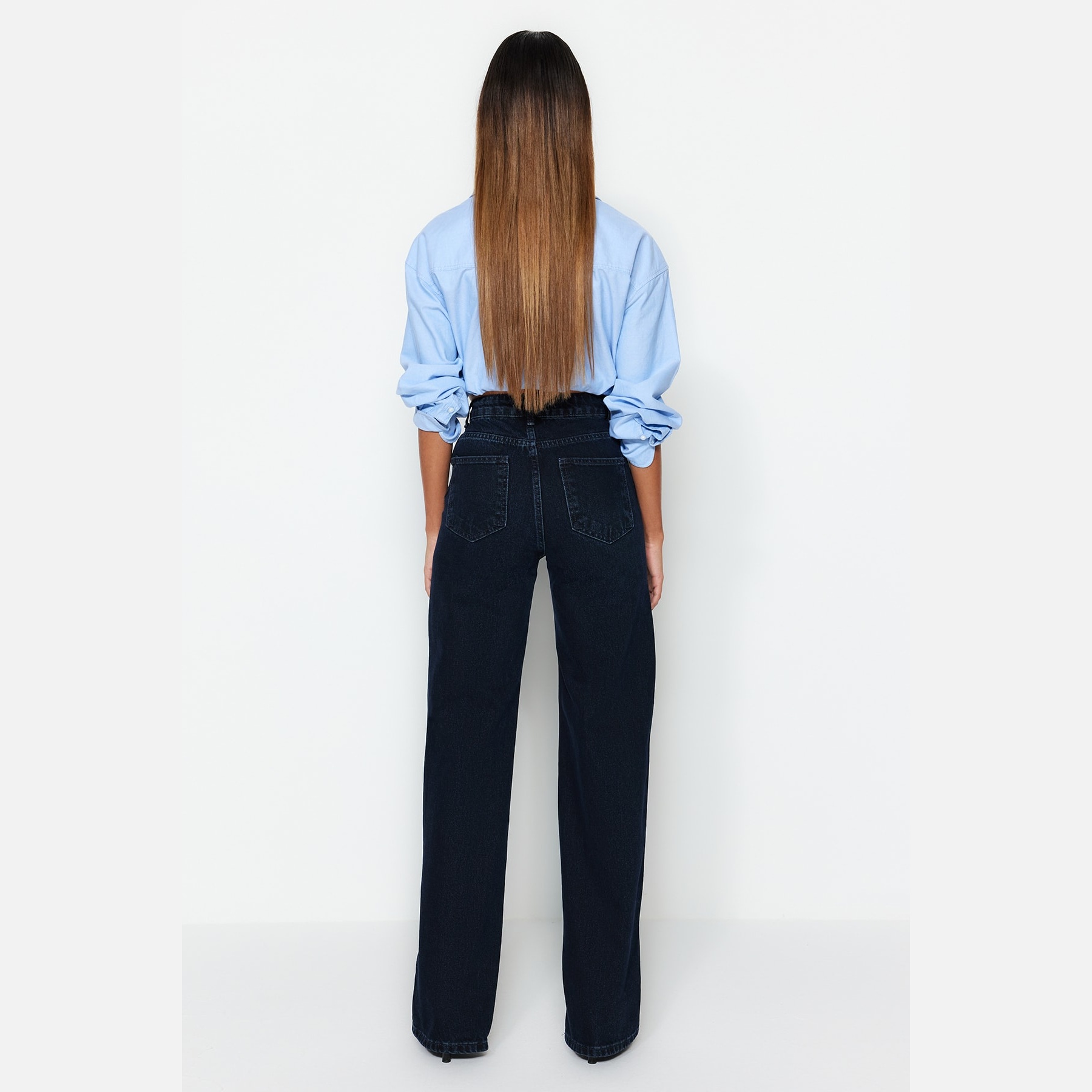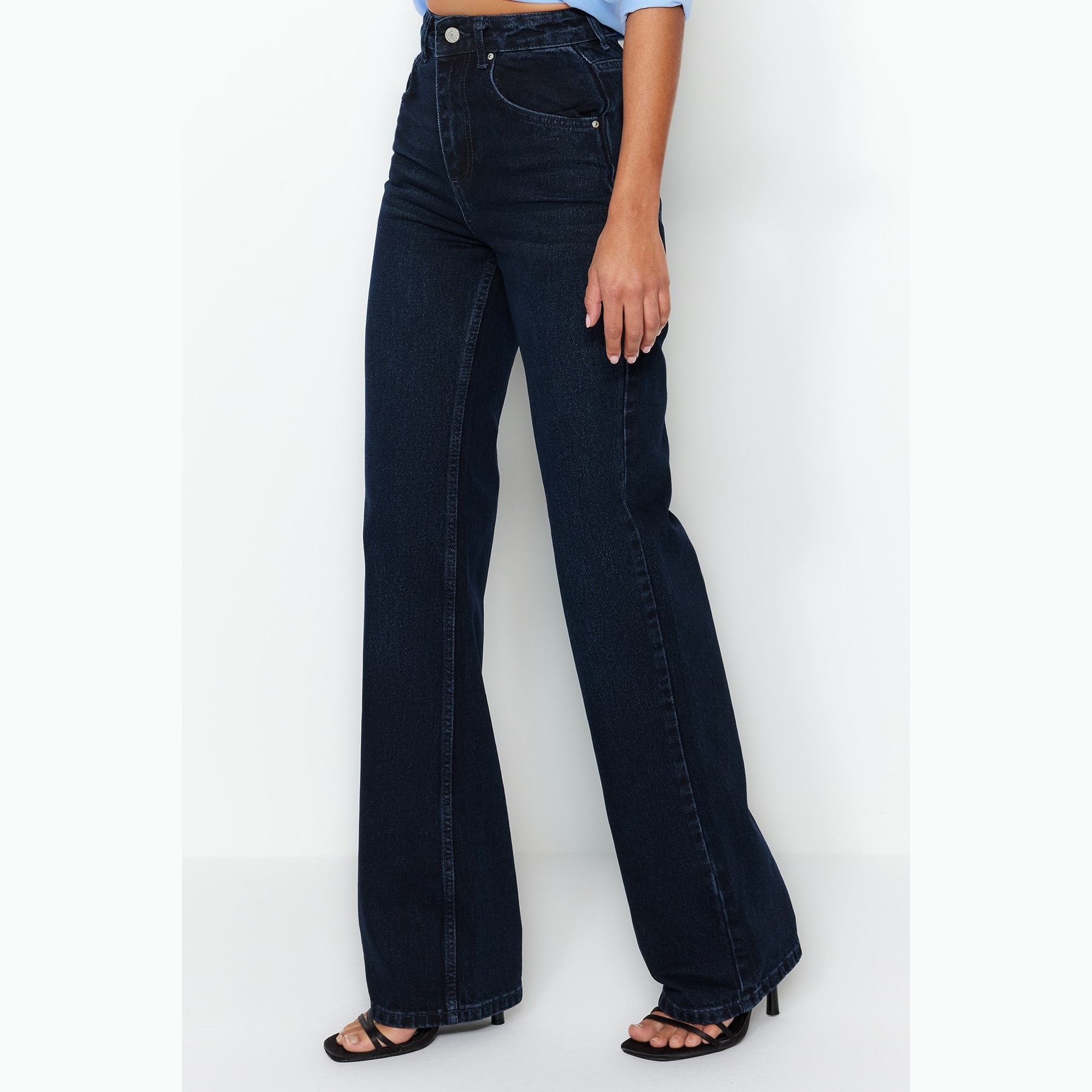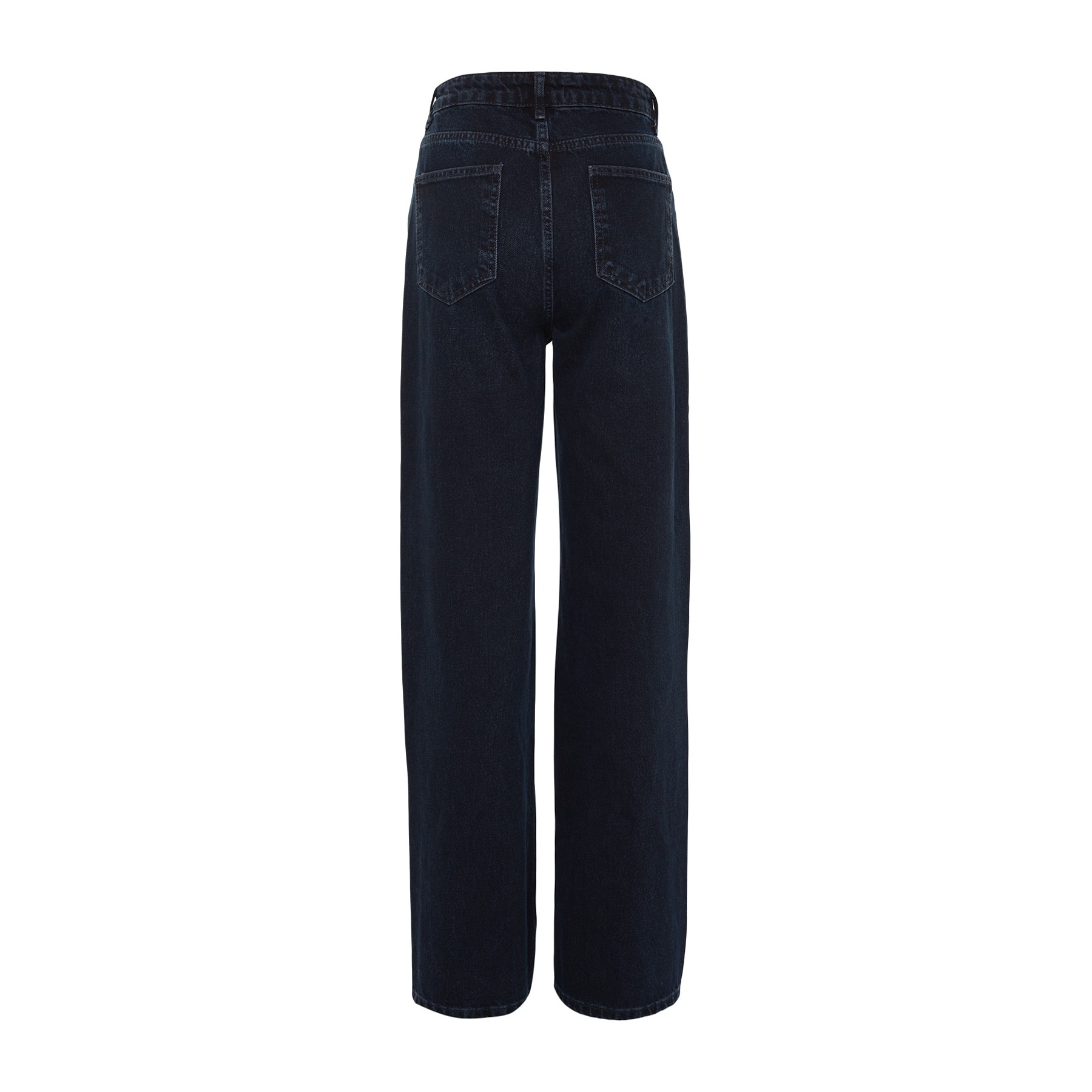 جينز نسائي بلون أزرق داكن ليلي (Gece Mavisi)، مصنوع من خامة دنيم 100% قطن، يتميز بخصر مرتفع، قصة واسعة (Wide Leg)، وإغلاق بزر وسحاب. تصميم عملي وأنيق يناسب الإطلالات اليومية الكاجوال مع لمسة كلاسيكية.