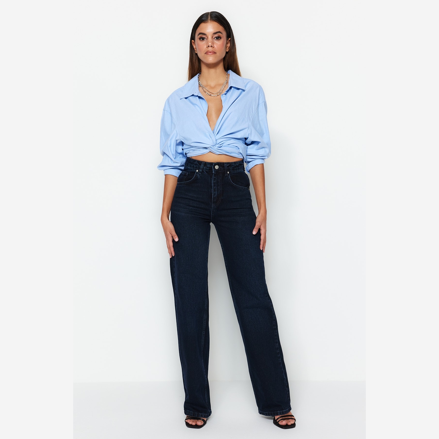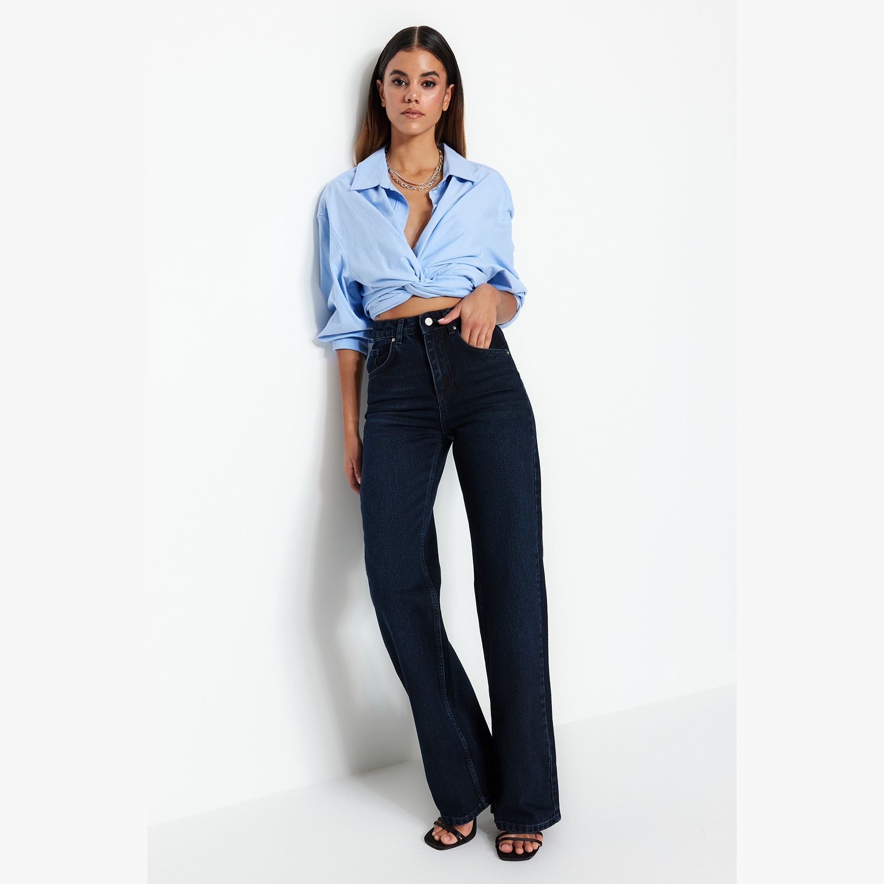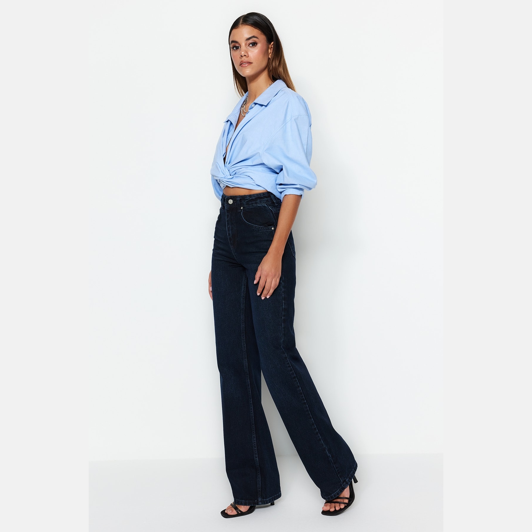 جينز نسائي – أزرق داكن ليلي بخصر مرتفع وقصة واسعة (Wide Leg)