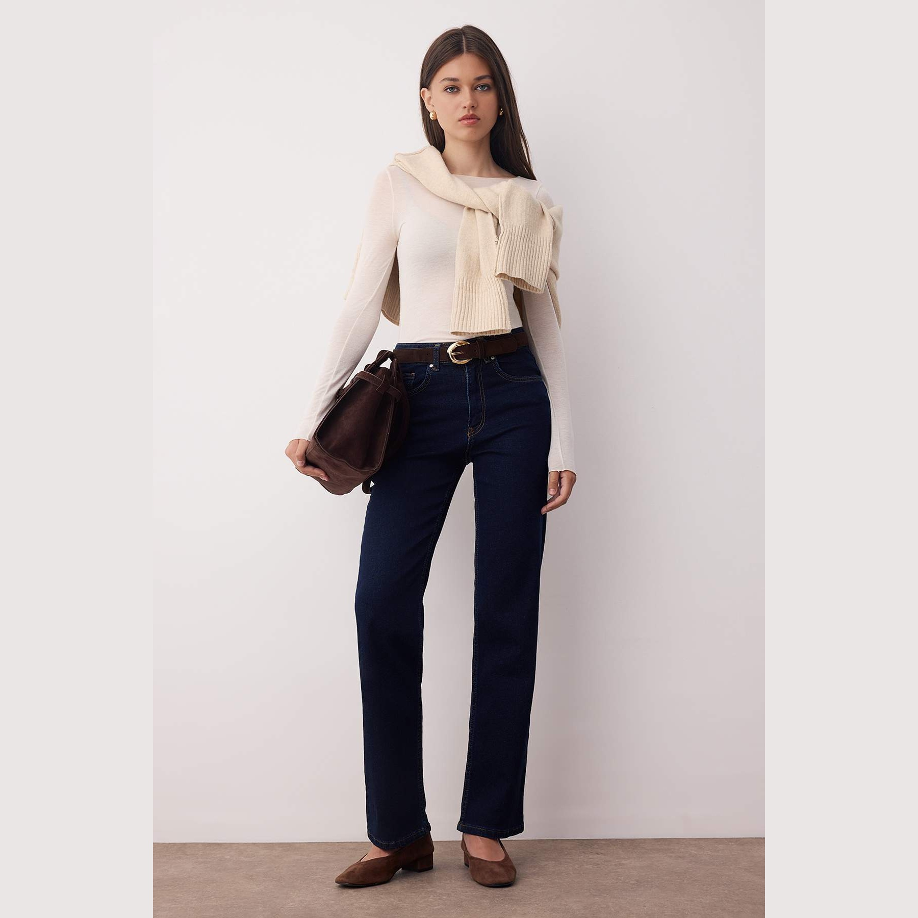 جينز نسائي – كُحلي داكن بخصر عادي وقصة مستقيمة مريحة (Comfort Straight)
