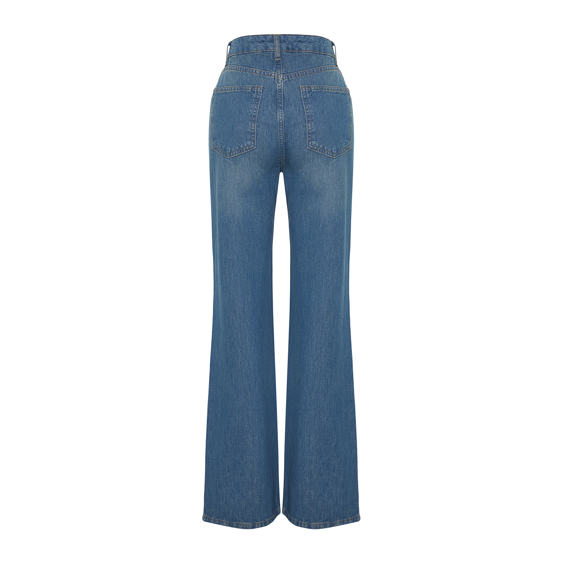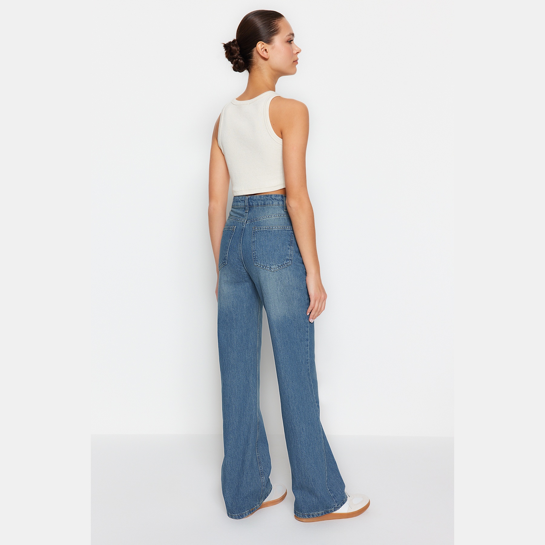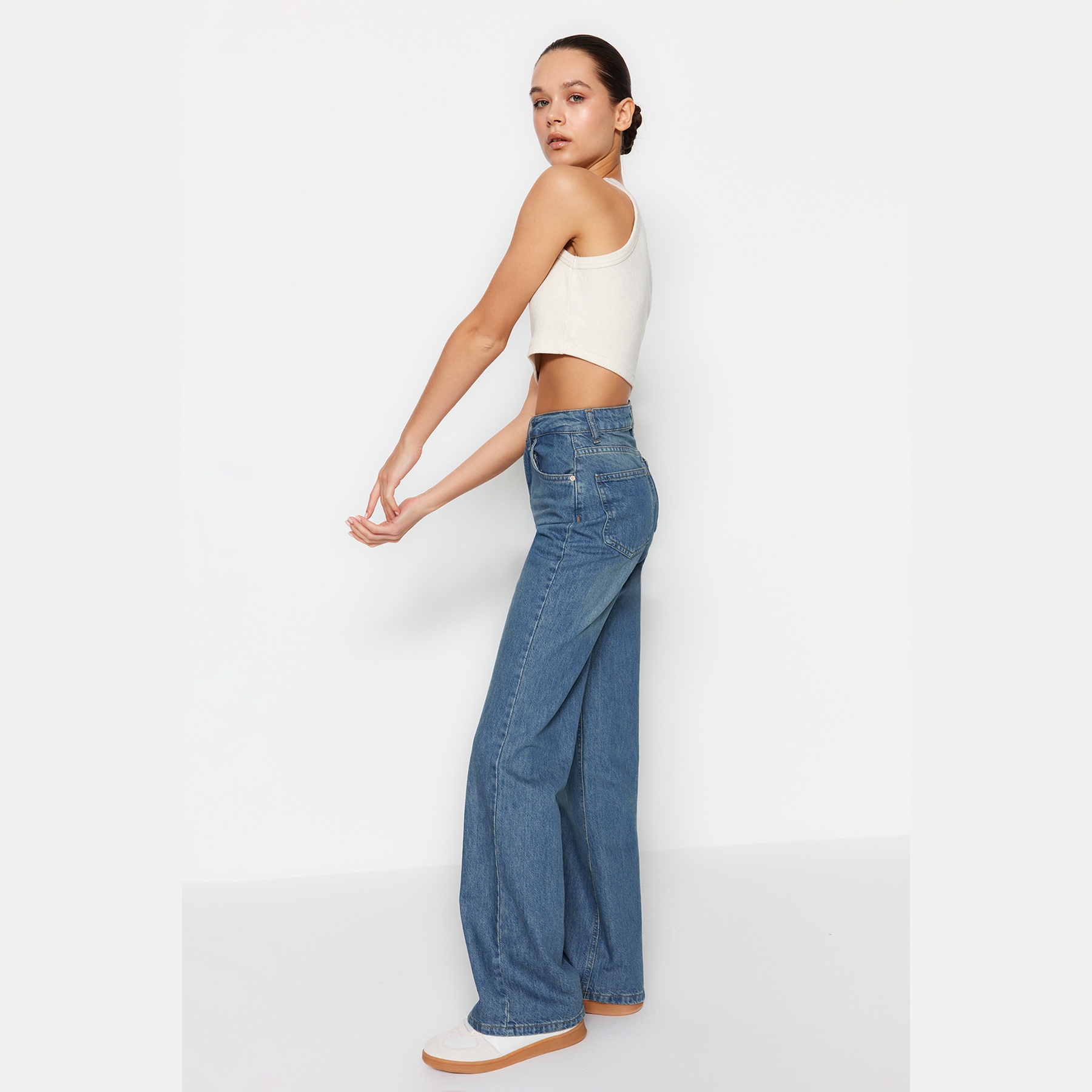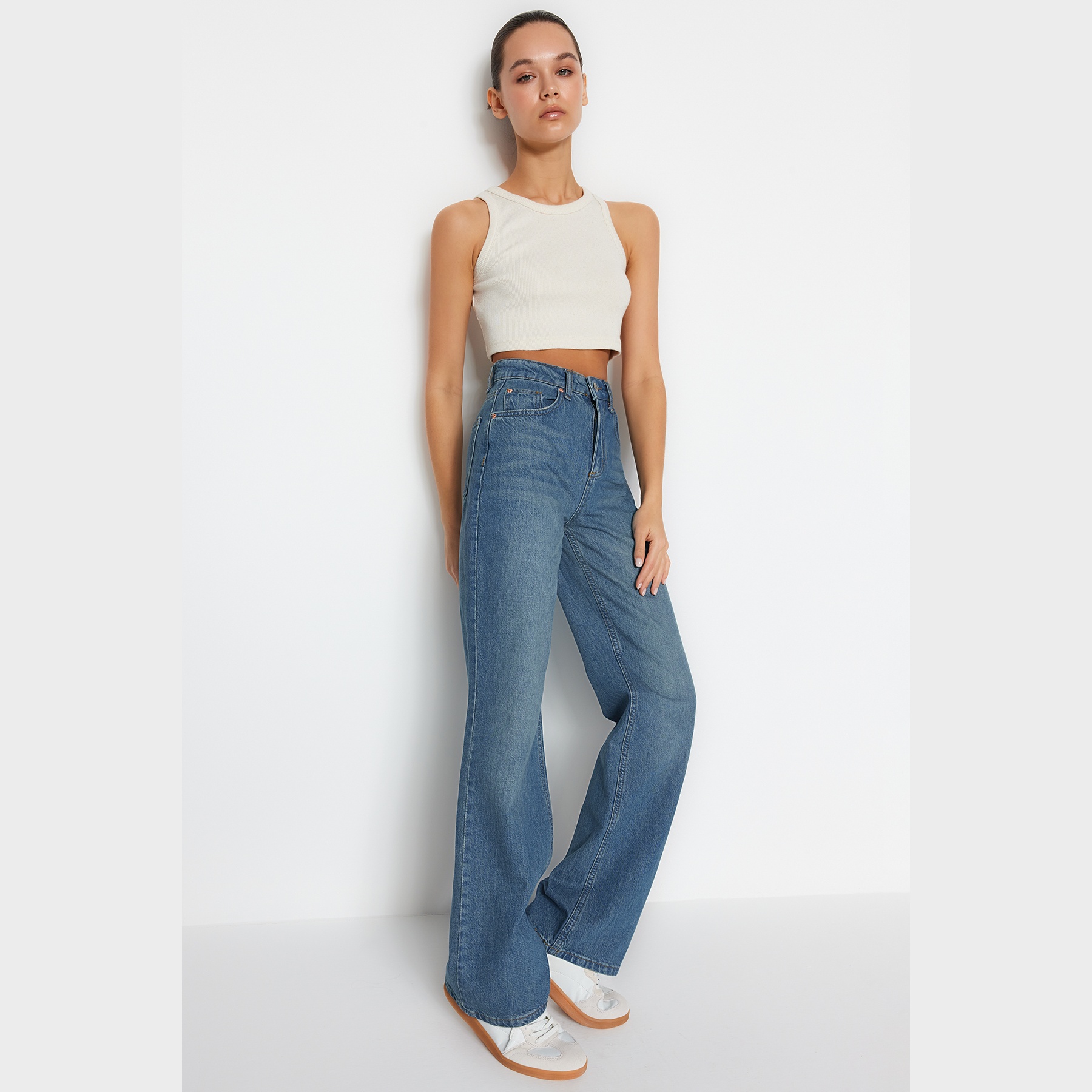 جينز نسائي – أزرق بخصر مرتفع وقصة واسعة (Wide Leg)