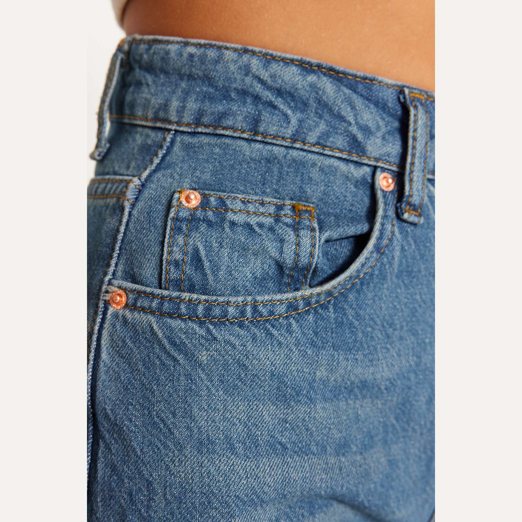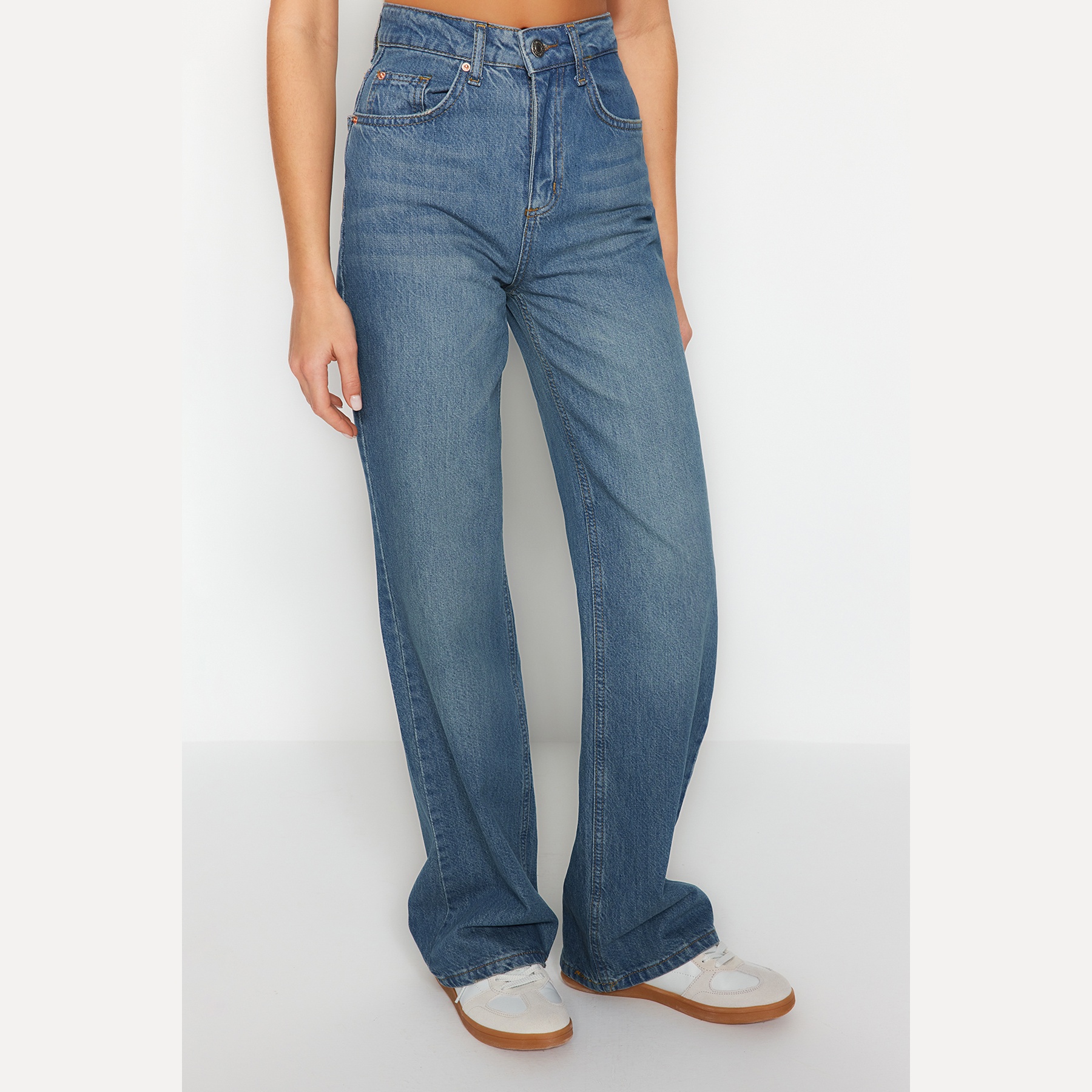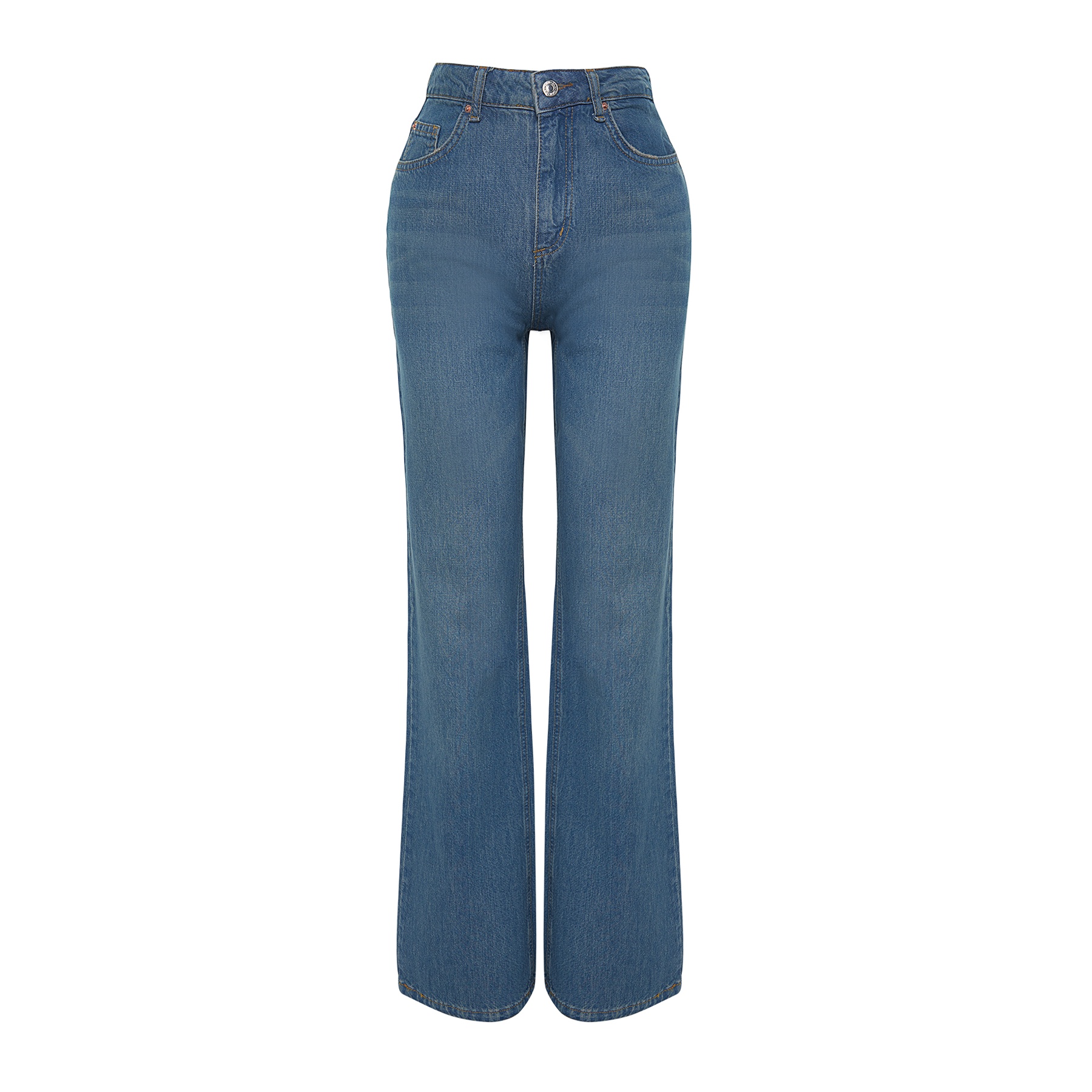 جينز نسائي بلون أزرق (Mavi)، مصنوع من خامة دنيم 100% قطن، يتميز بخصر مرتفع، قصة واسعة (Wide Leg)، وإغلاق بزر وسحاب. تصميم عملي وأنيق يناسب الإطلالات اليومية الكاجوال مع لمسة كلاسيكية.