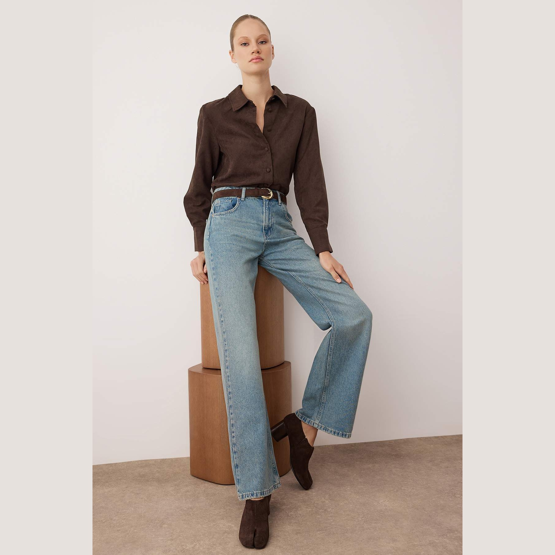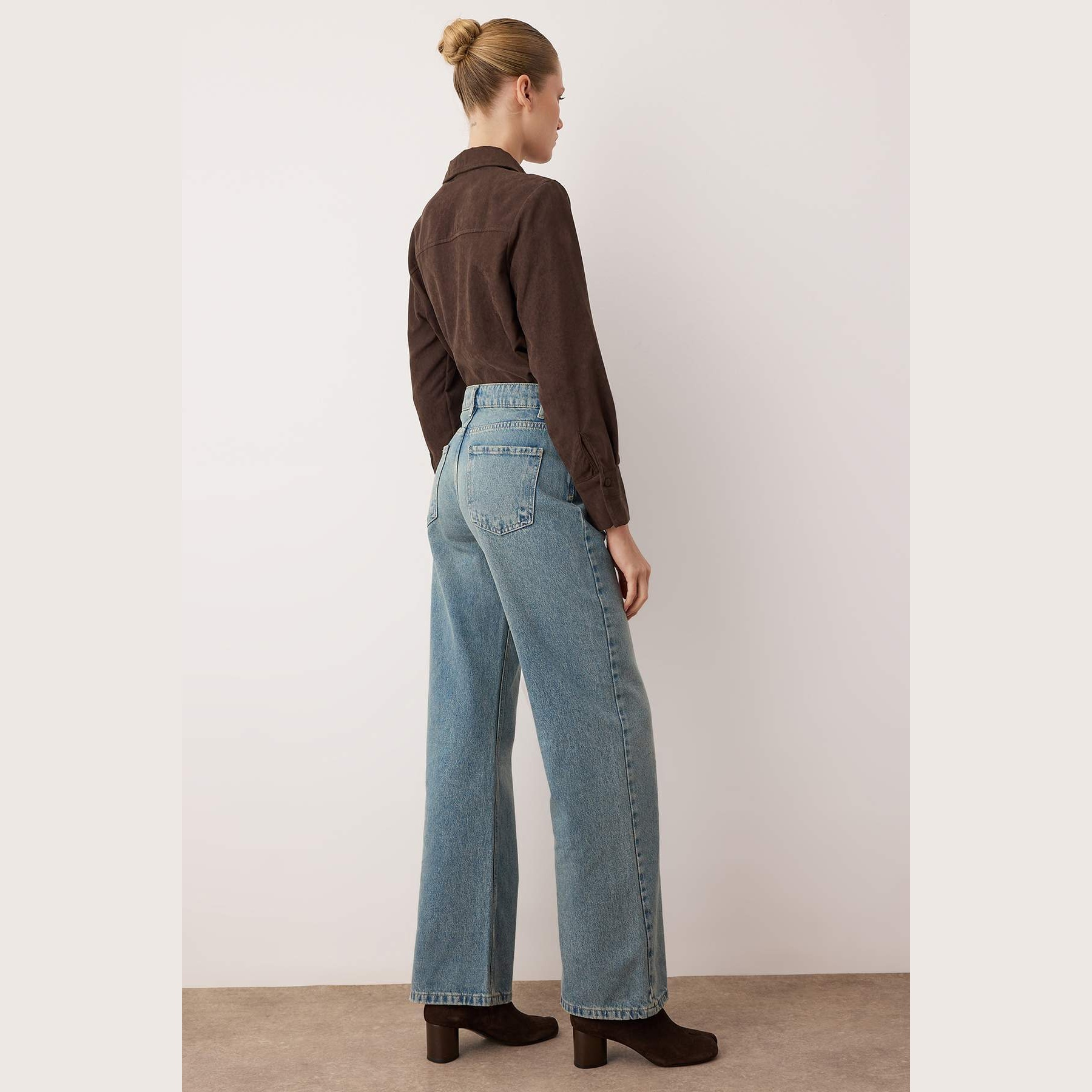 جينز نسائي بلون أزرق Vintage (Mavi Vintage Yıkama)، مصنوع من خامة دنيم 100% قطن، يتميز بخصر مرتفع، قصة واسعة (Wide Leg)، وإغلاق بزر وسحاب. تصميم عملي وأنيق يمنحك إطلالة كاجوال مريحة بلمسة كلاسيكية.