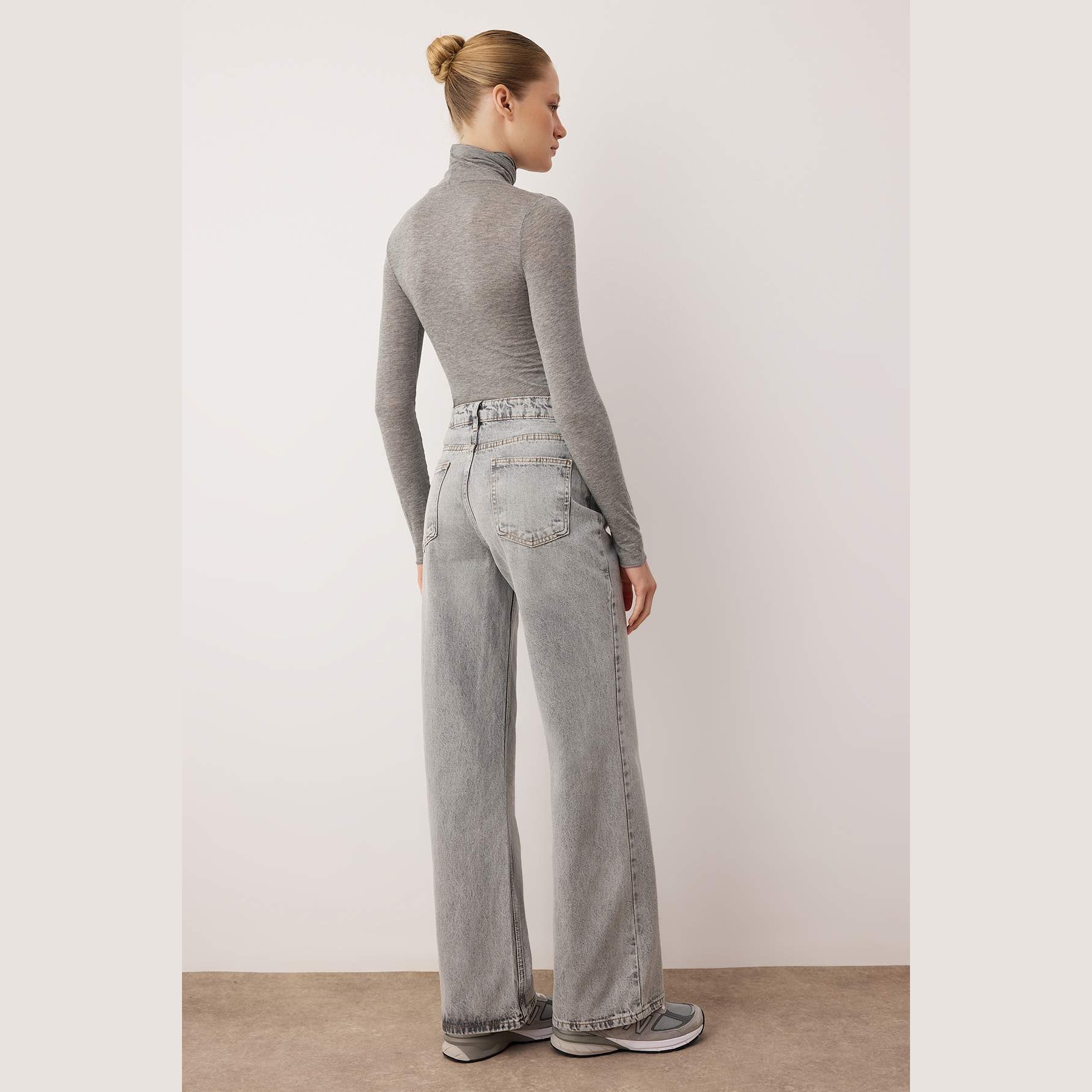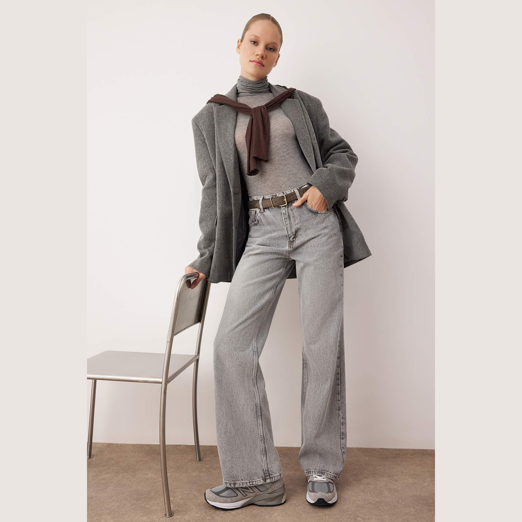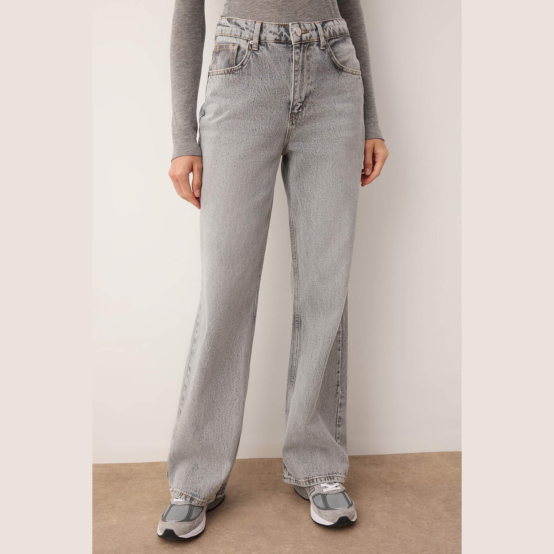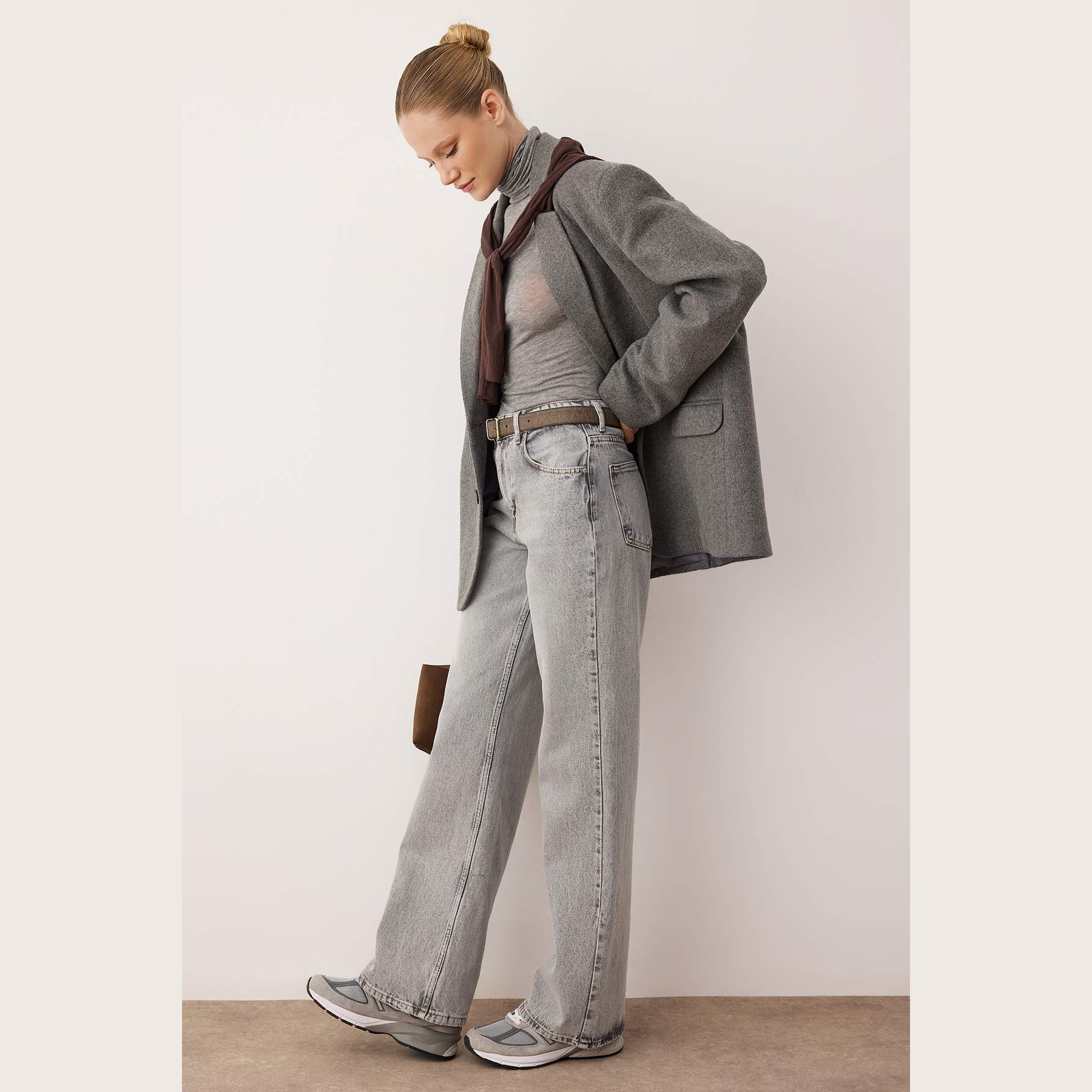 جينز نسائي – رمادي بخصر مرتفع وقصة واسعة (Wide Leg)