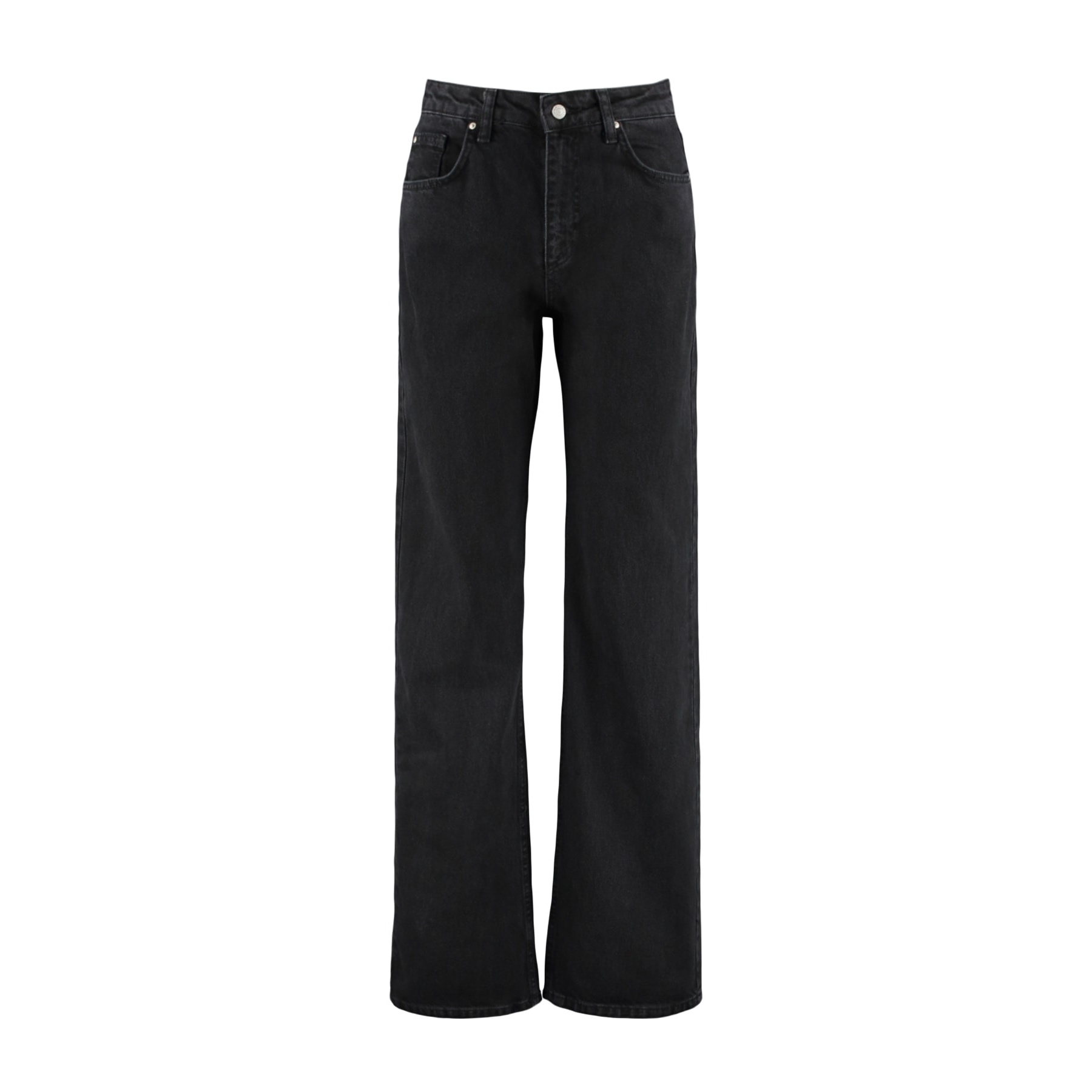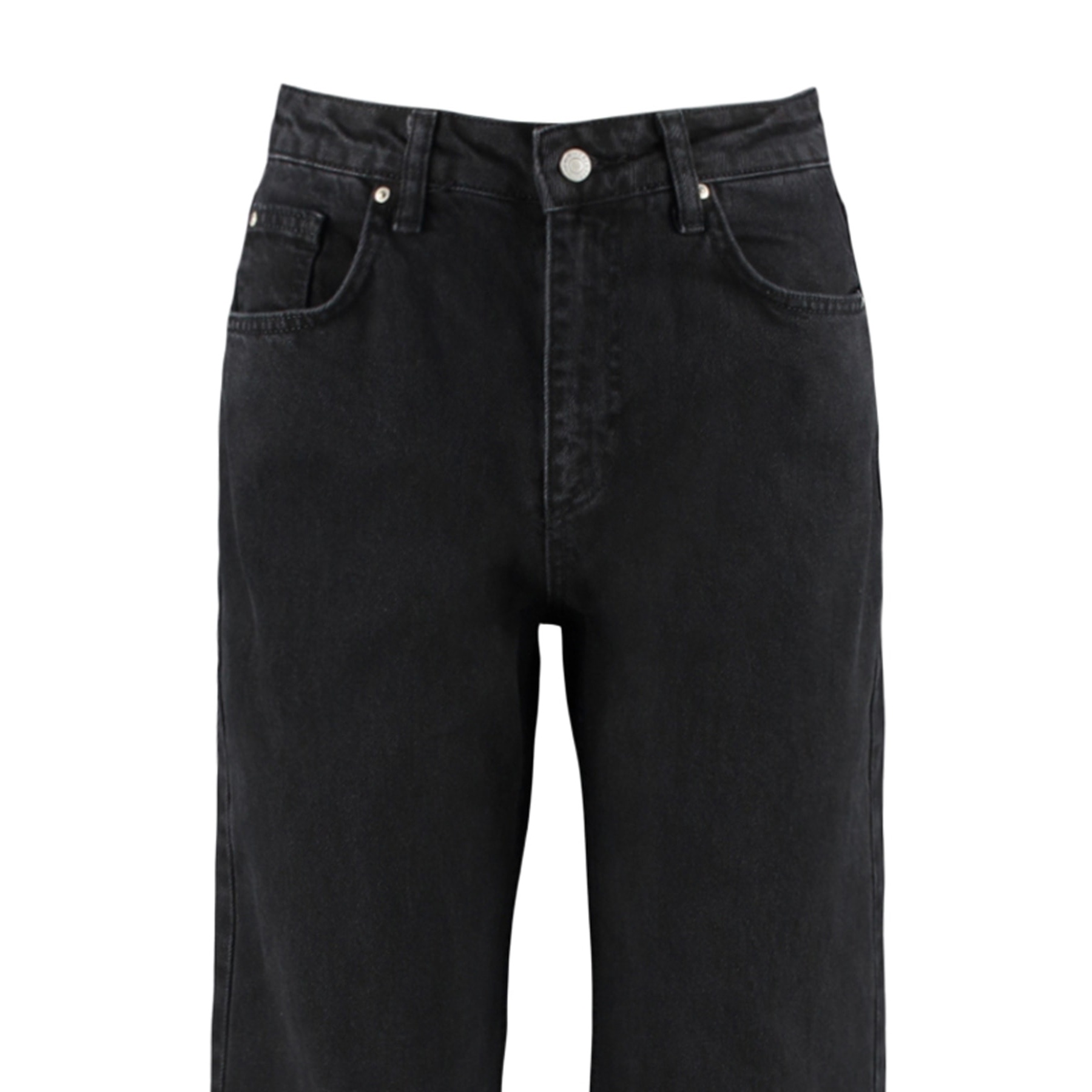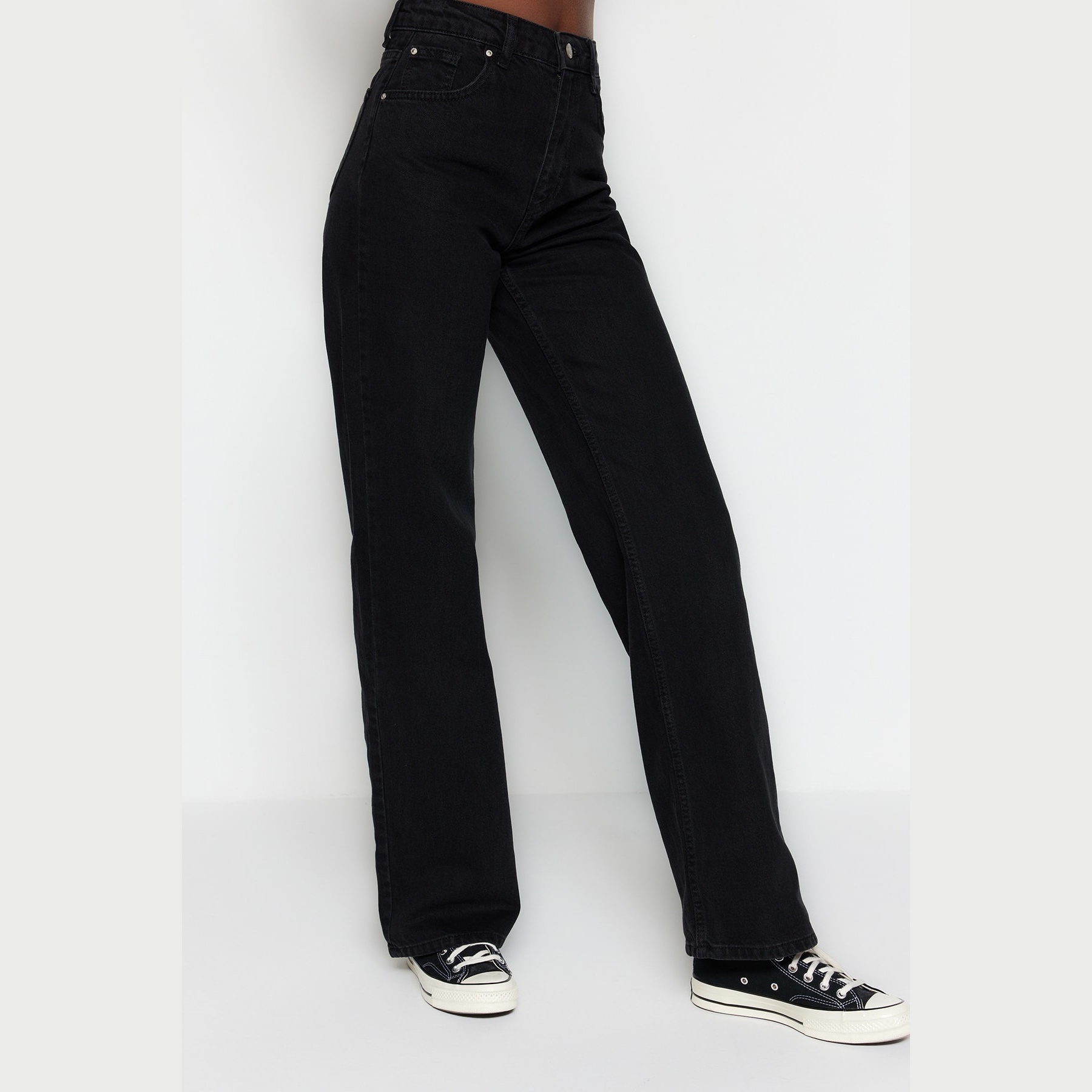 بنطال جينز نسائي بلون أسود بتأثير باهت، مصنوع من قماش دنيم طبيعي 100% قطن، يتميز بخصر مرتفع، قصة واسعة من الأسفل، وإغلاق أمامي بزر وسحاب. تصميم عملي يمنحك إطلالة مريحة وعصرية تناسب الاستخدام اليومي.