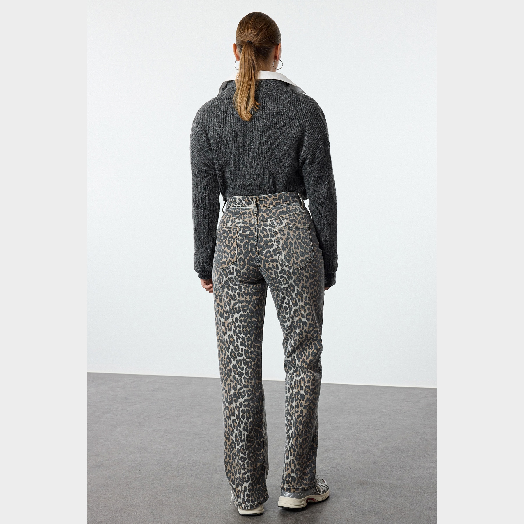- الخصائص الإضافية: خامة مرنة – نقشة ليوبارد – قصة واسعة – خصر مرتفع – إغلاق بزر وسحاب