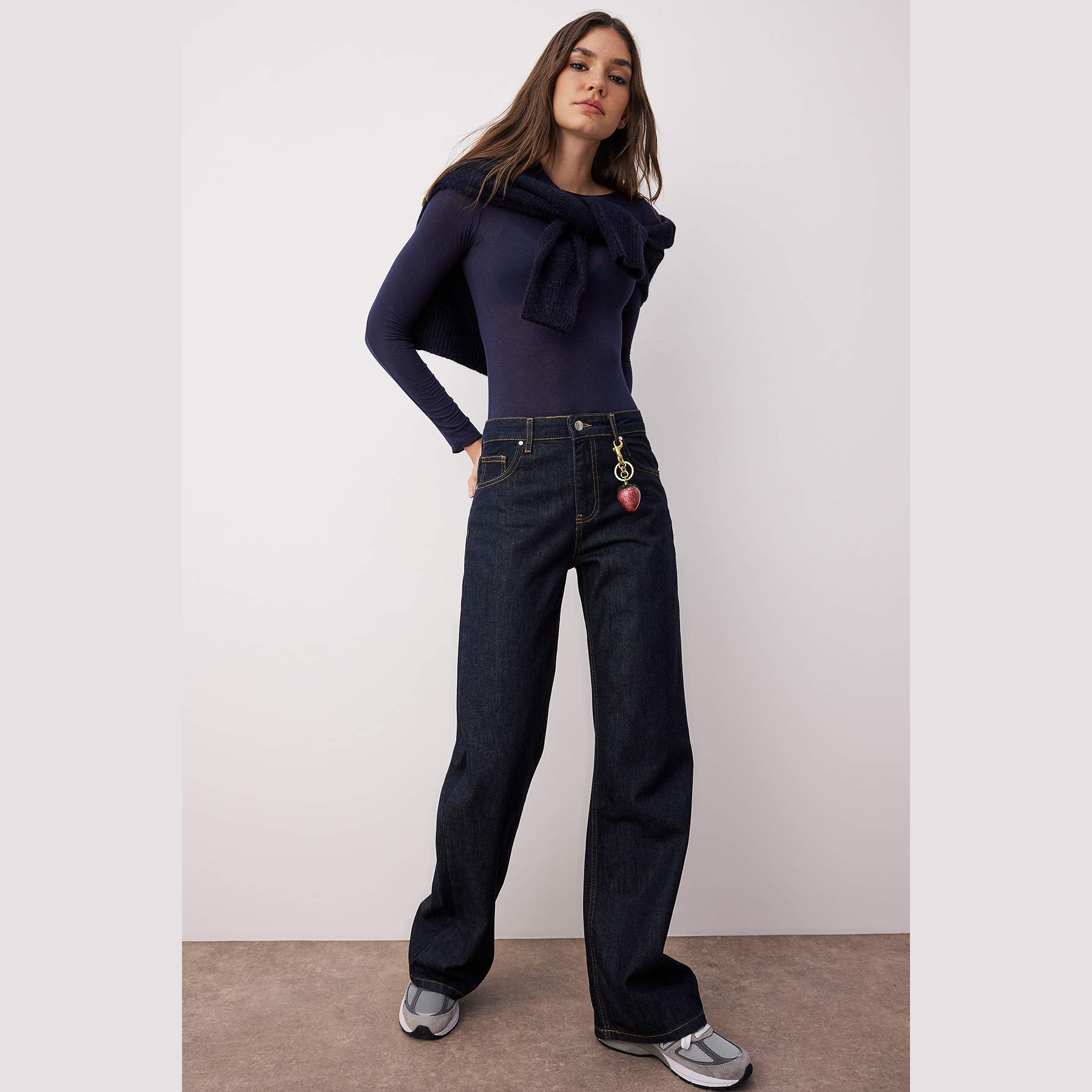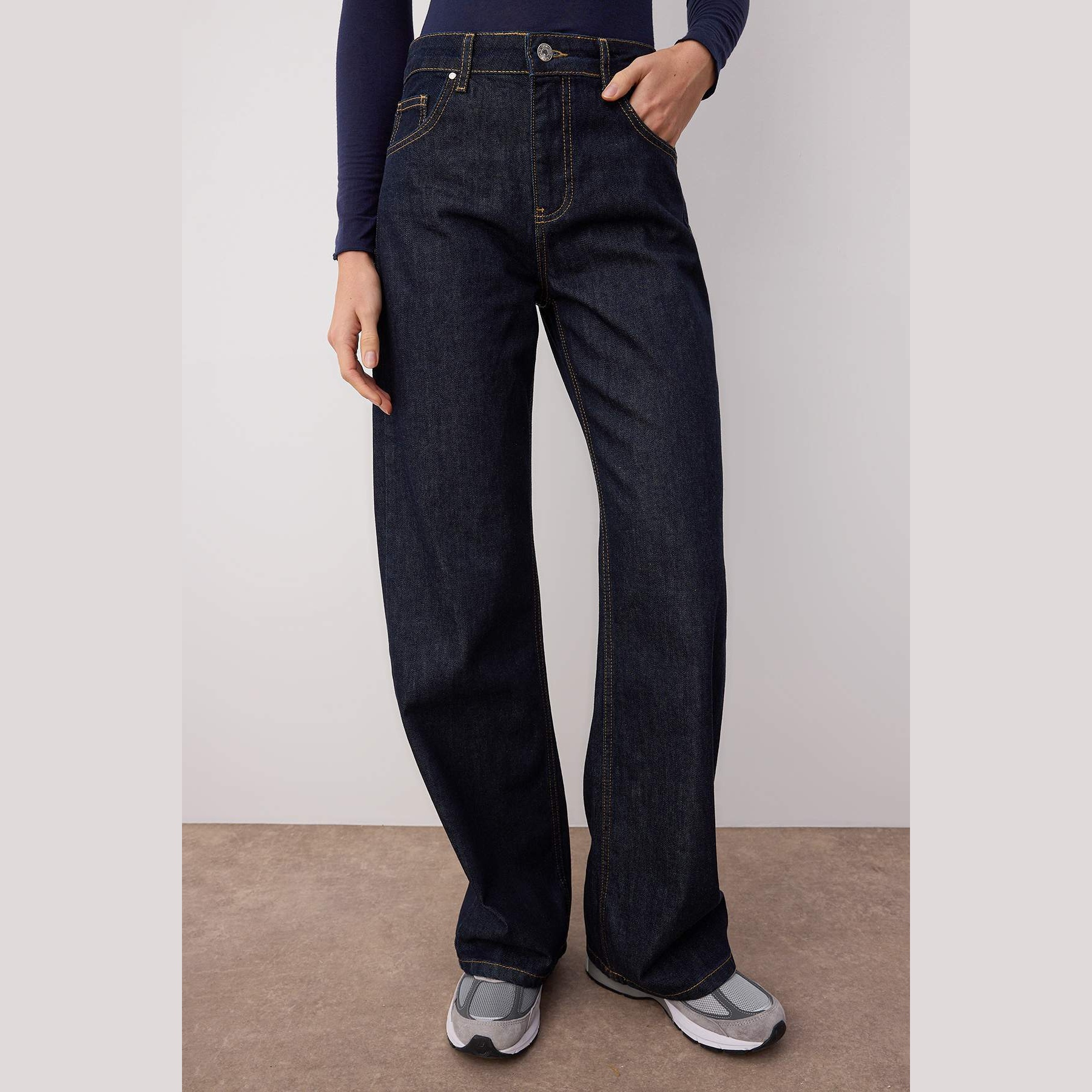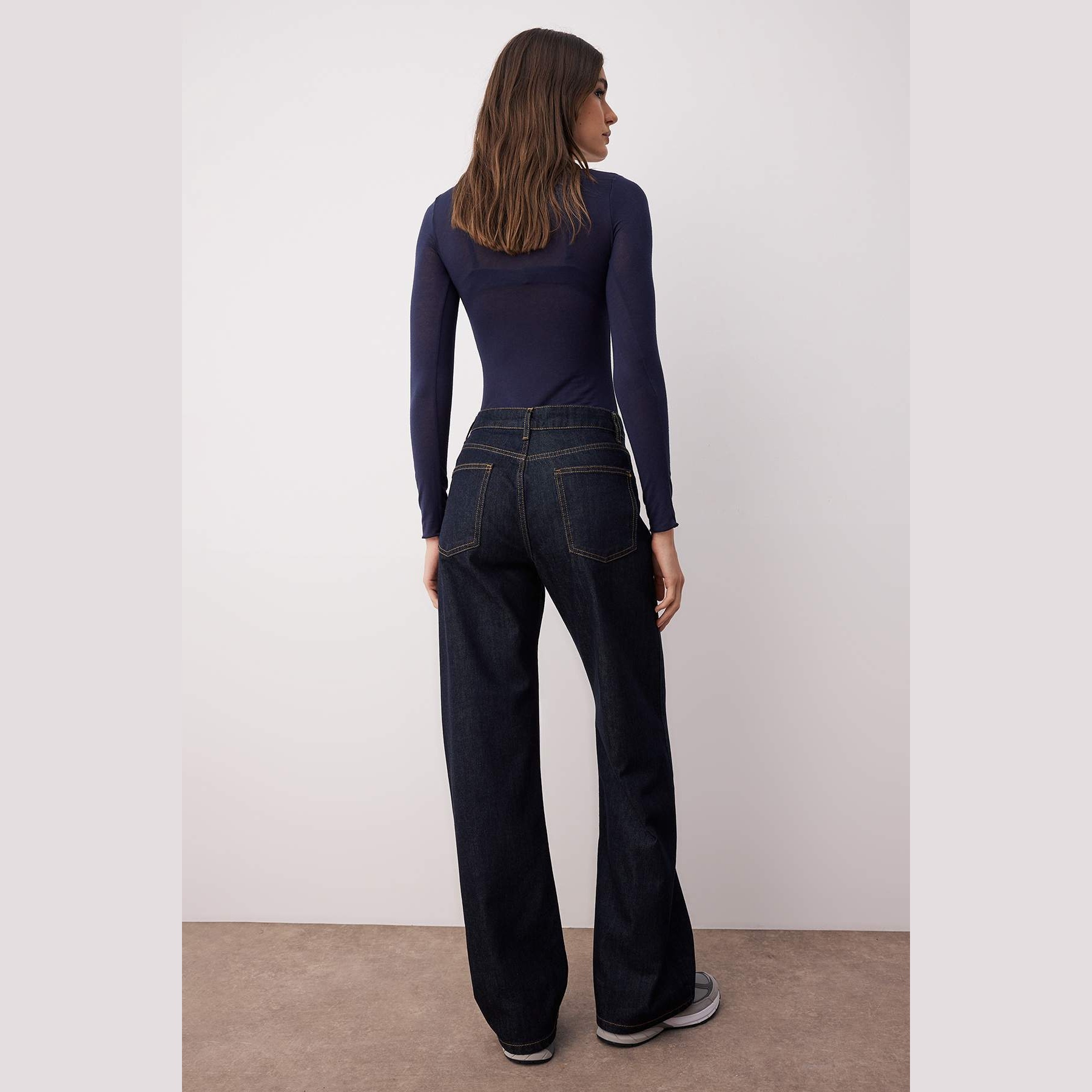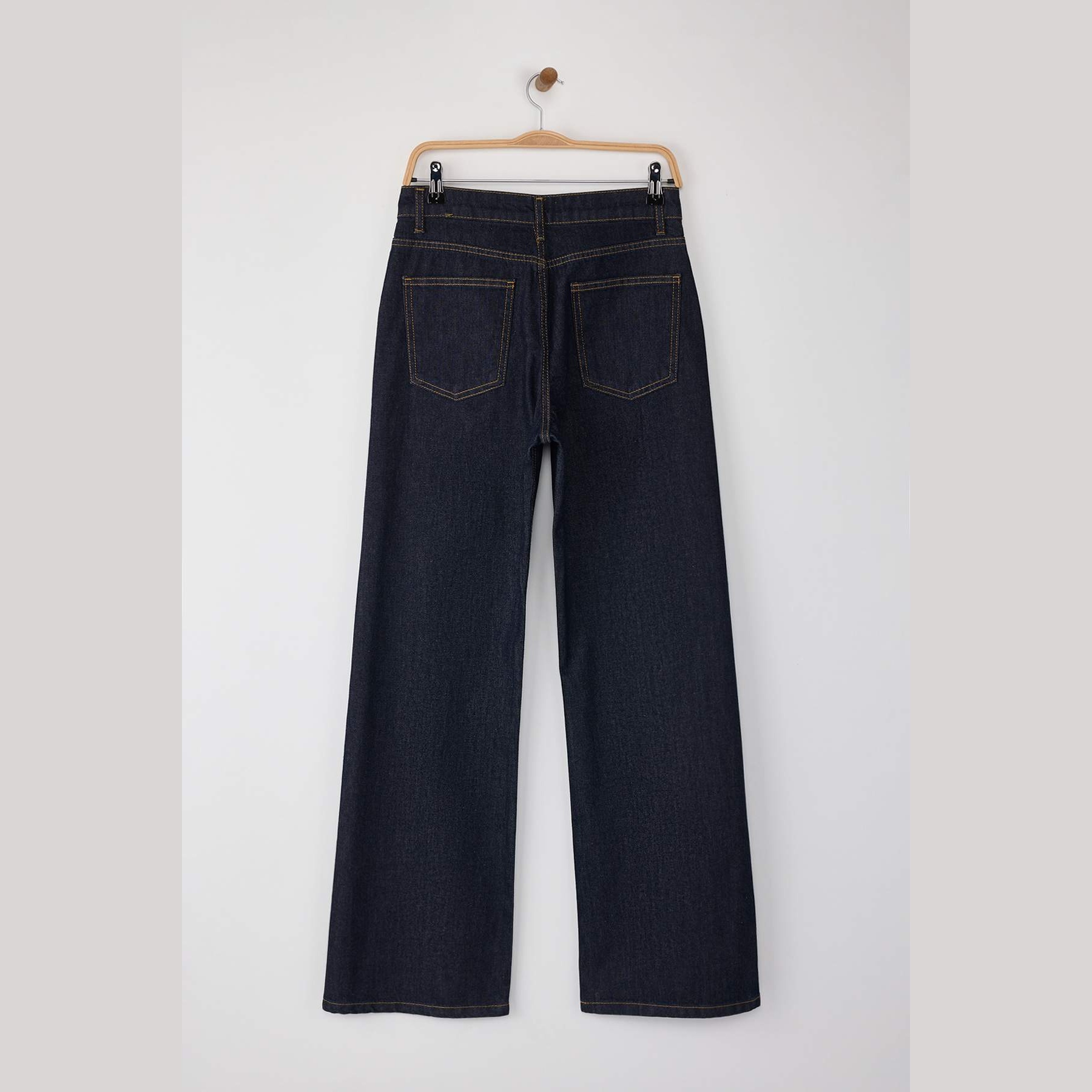 جينز نسائي – كُحلي داكن بخصر مرتفع وقصة واسعة (Wide Leg)