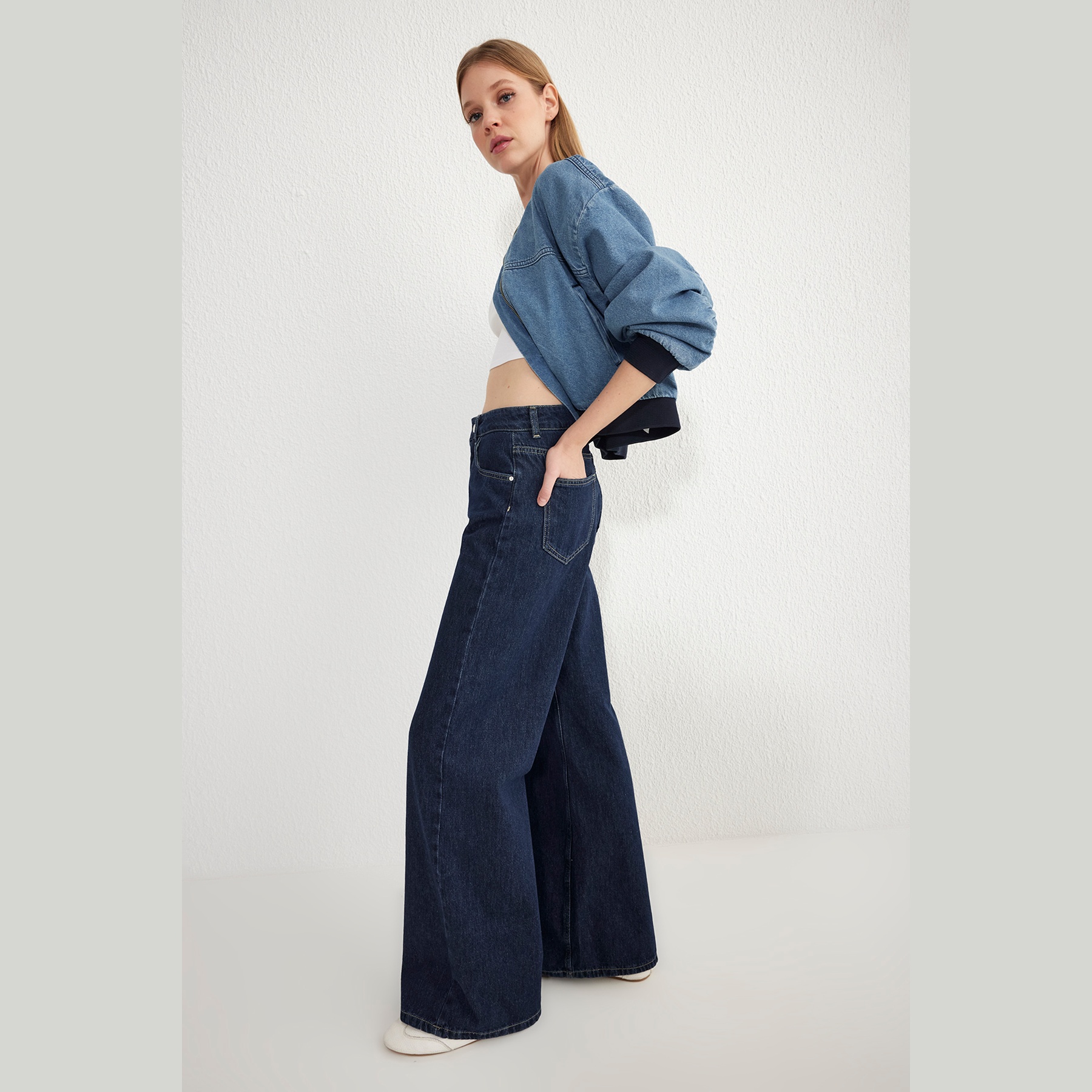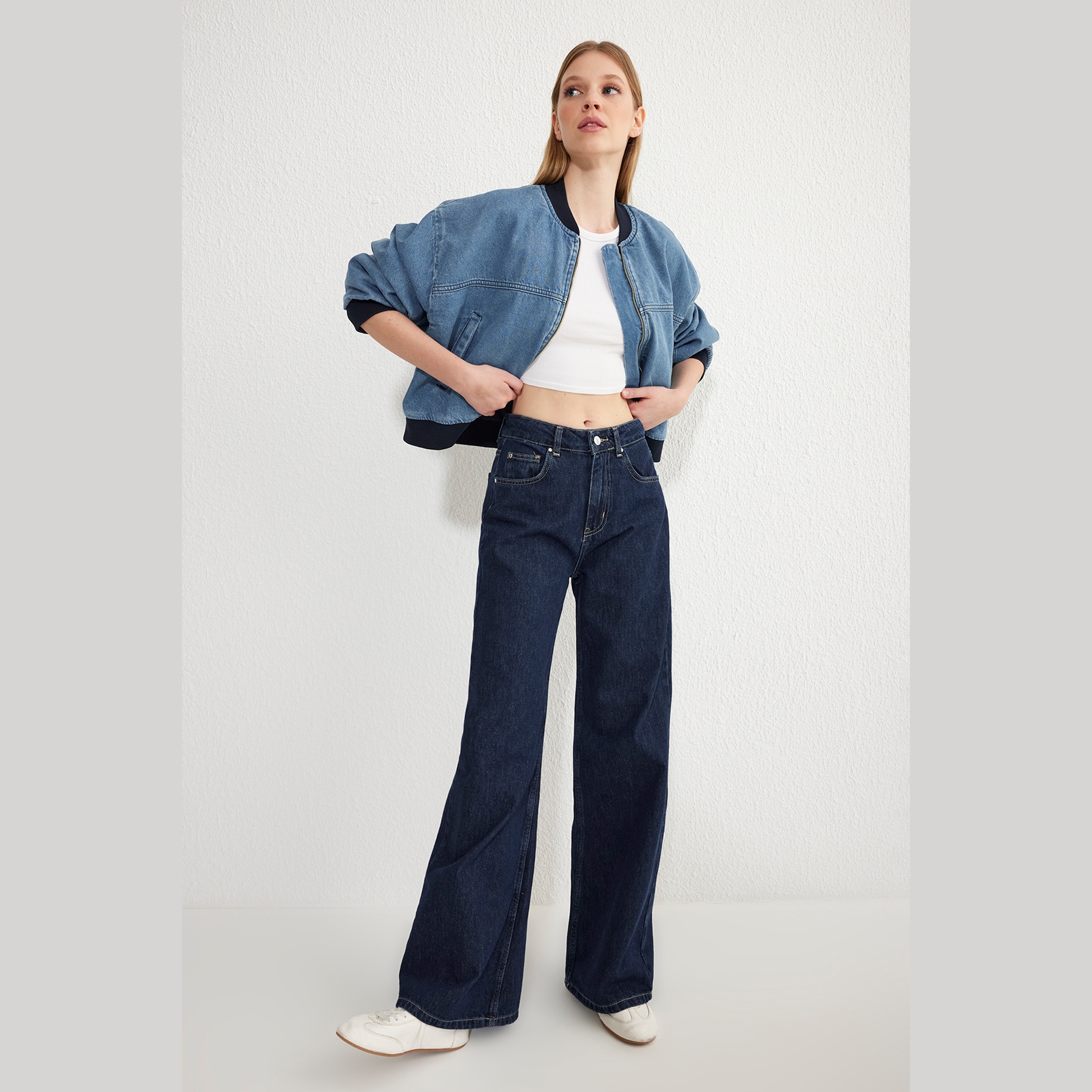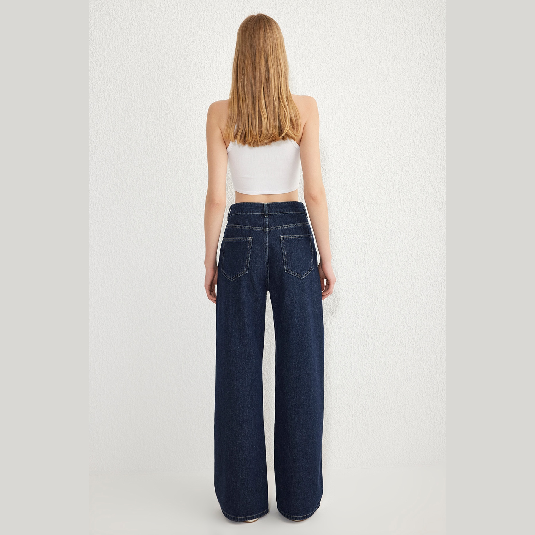 جينز نسائي – كُحلي داكن بخصر عادي وقصة واسعة (Wide Leg)