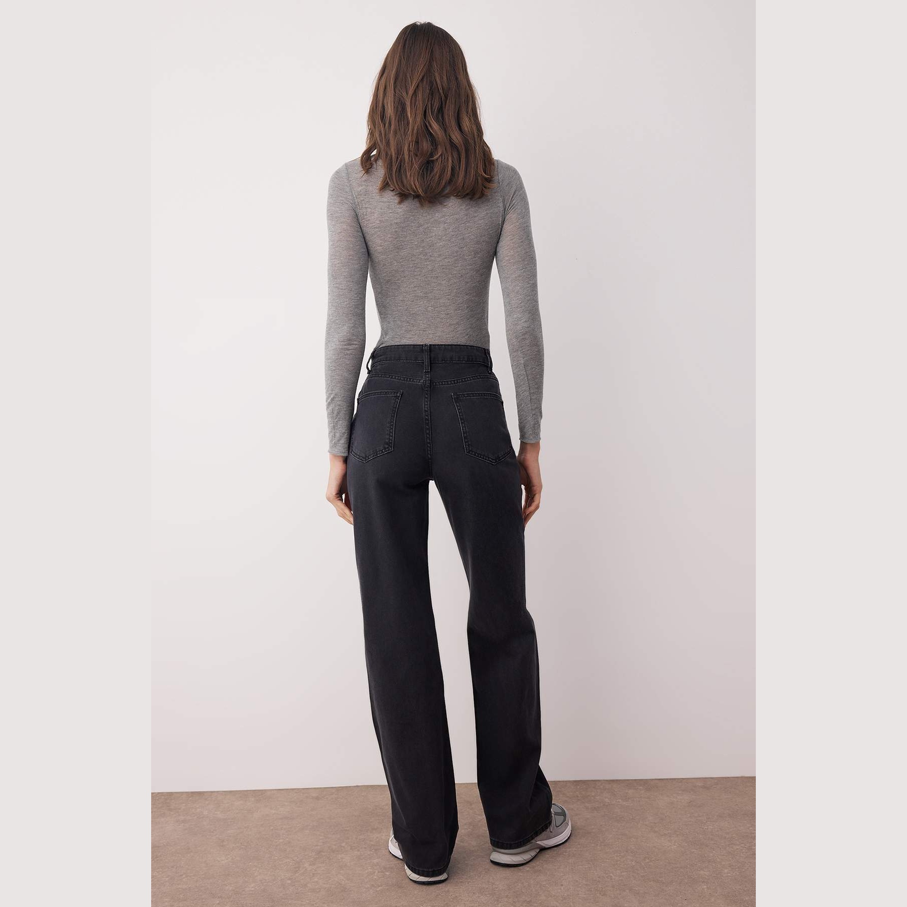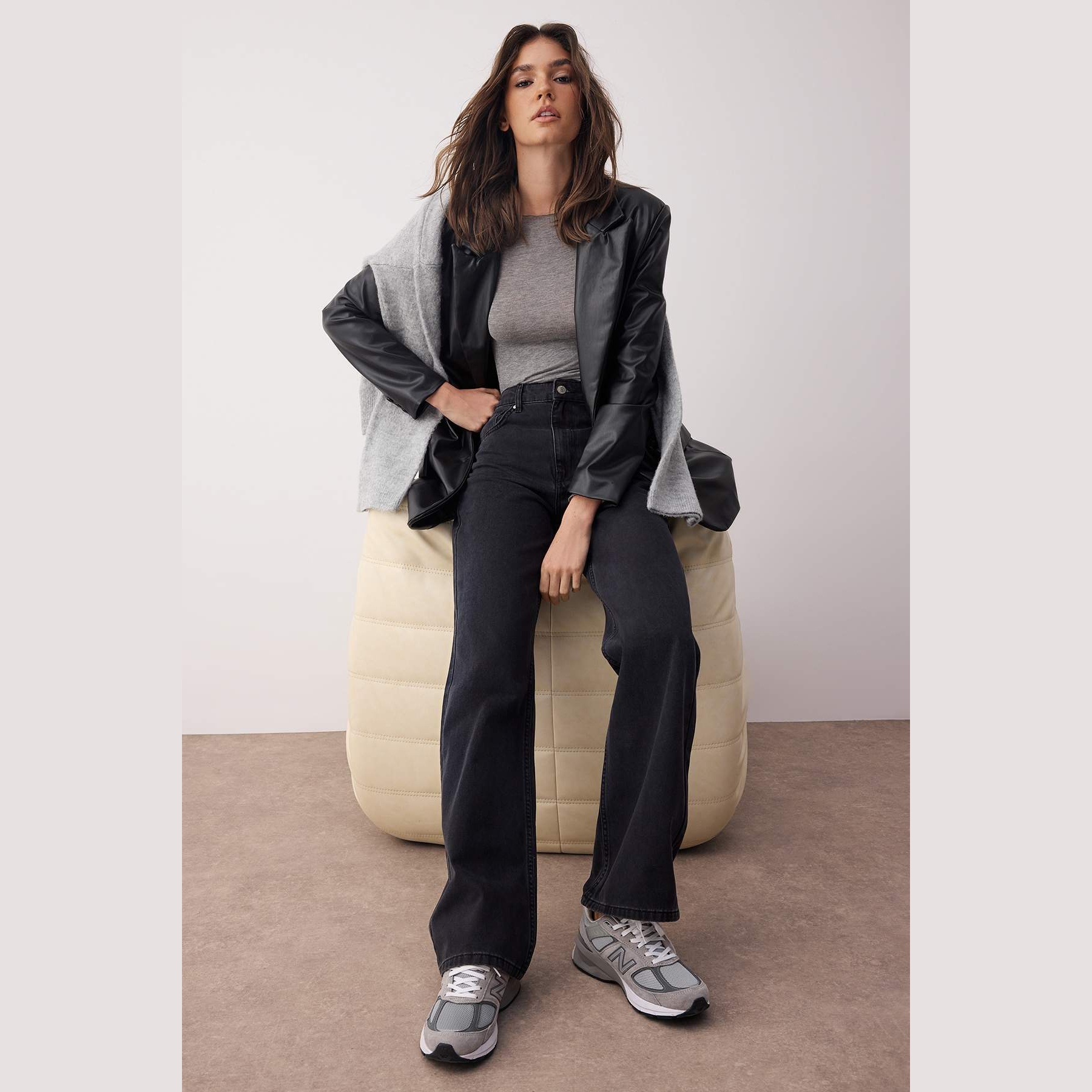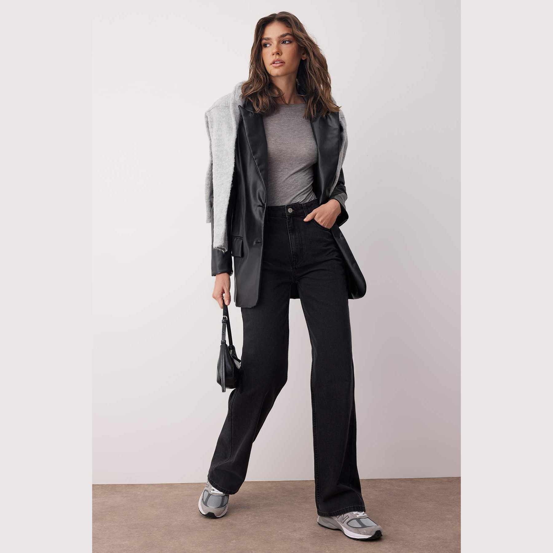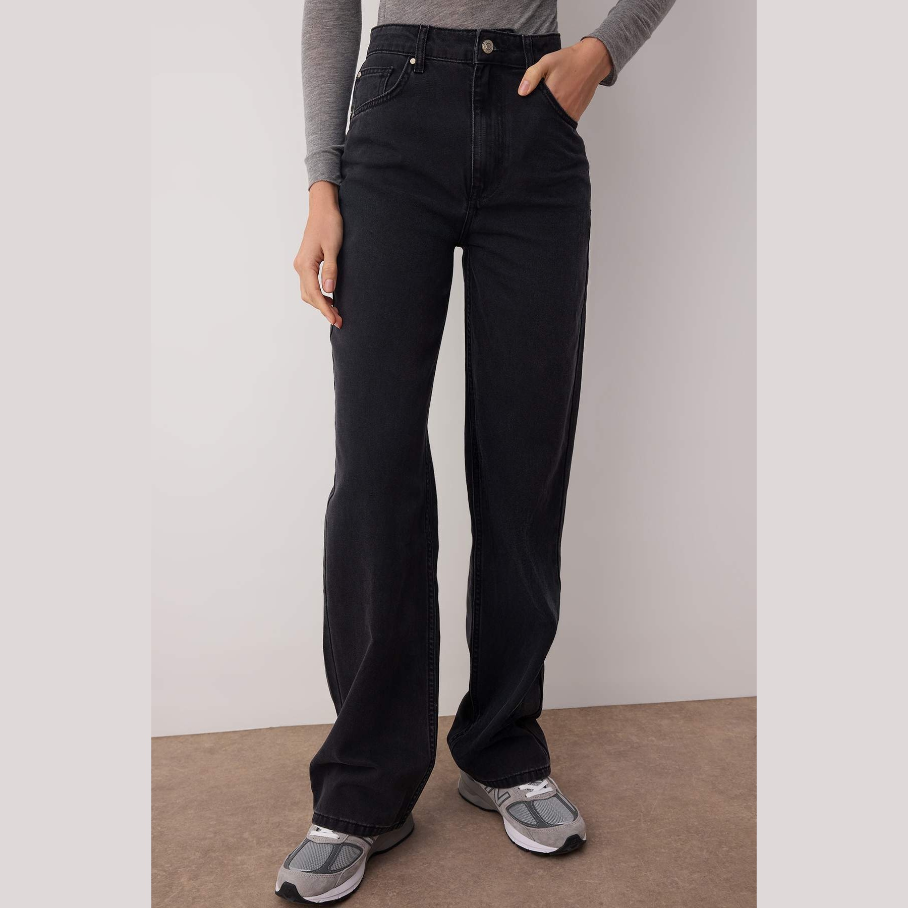 جينز نسائي – أسود بخصر مرتفع وقصة واسعة (Wide Leg)