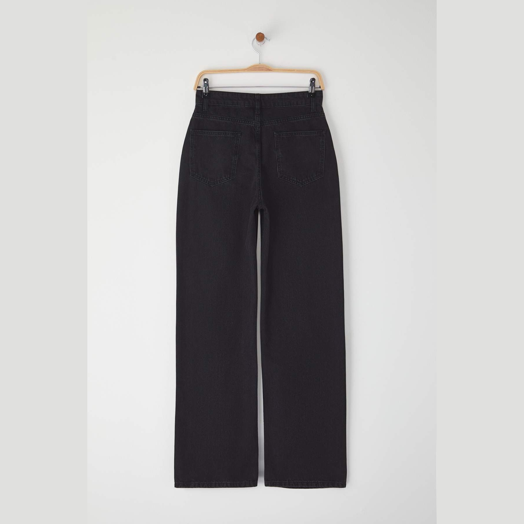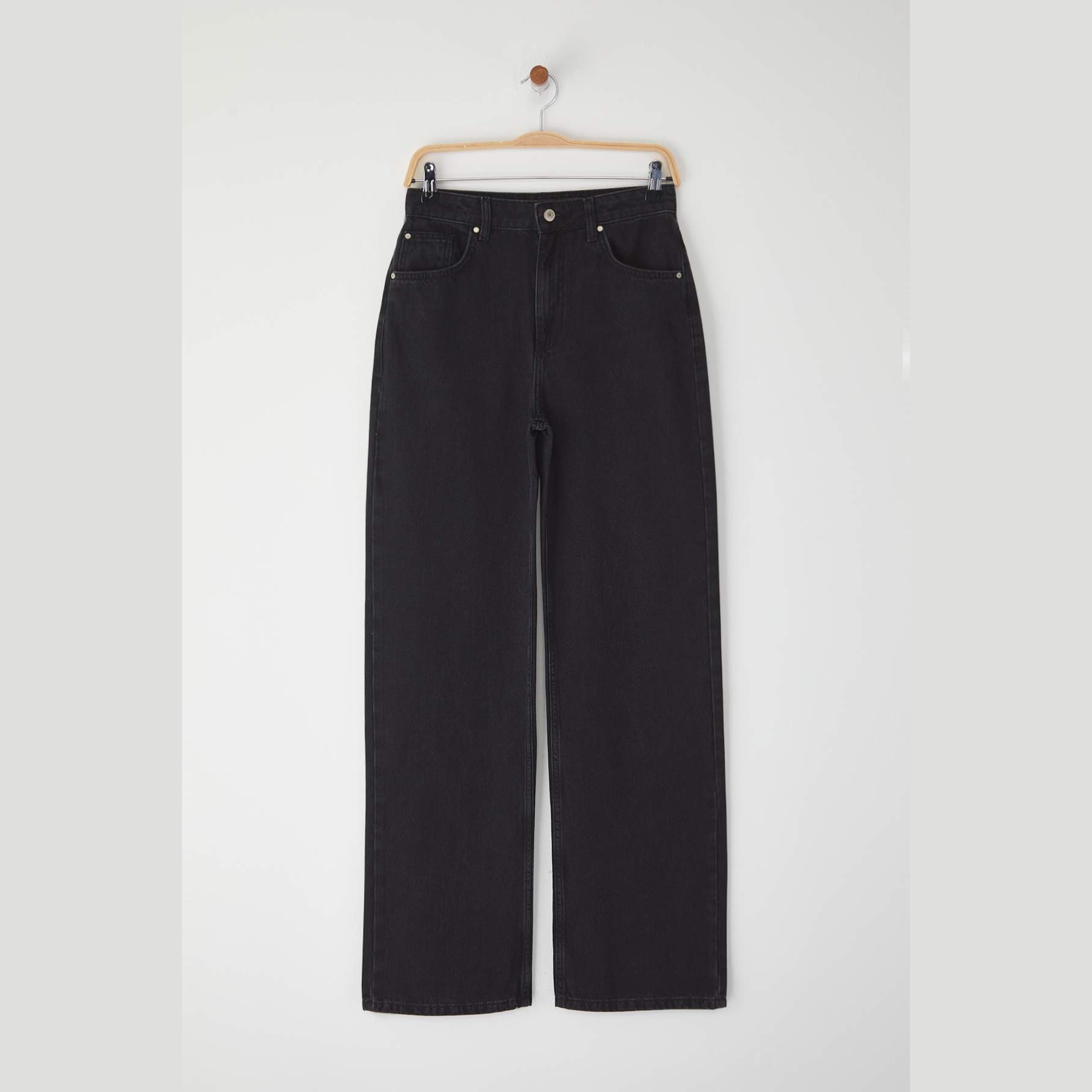 بنطال جينز نسائي بلون أسود، مصنوع من قماش دنيم طبيعي 100% قطن، يتميز بخصر مرتفع، قصة واسعة من الأسفل، وإغلاق أمامي بزر وسحاب. تصميم عملي يمنحك إطلالة مريحة وعصرية تناسب الاستخدام اليومي.