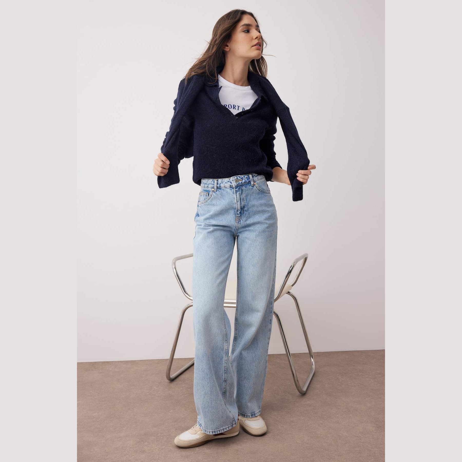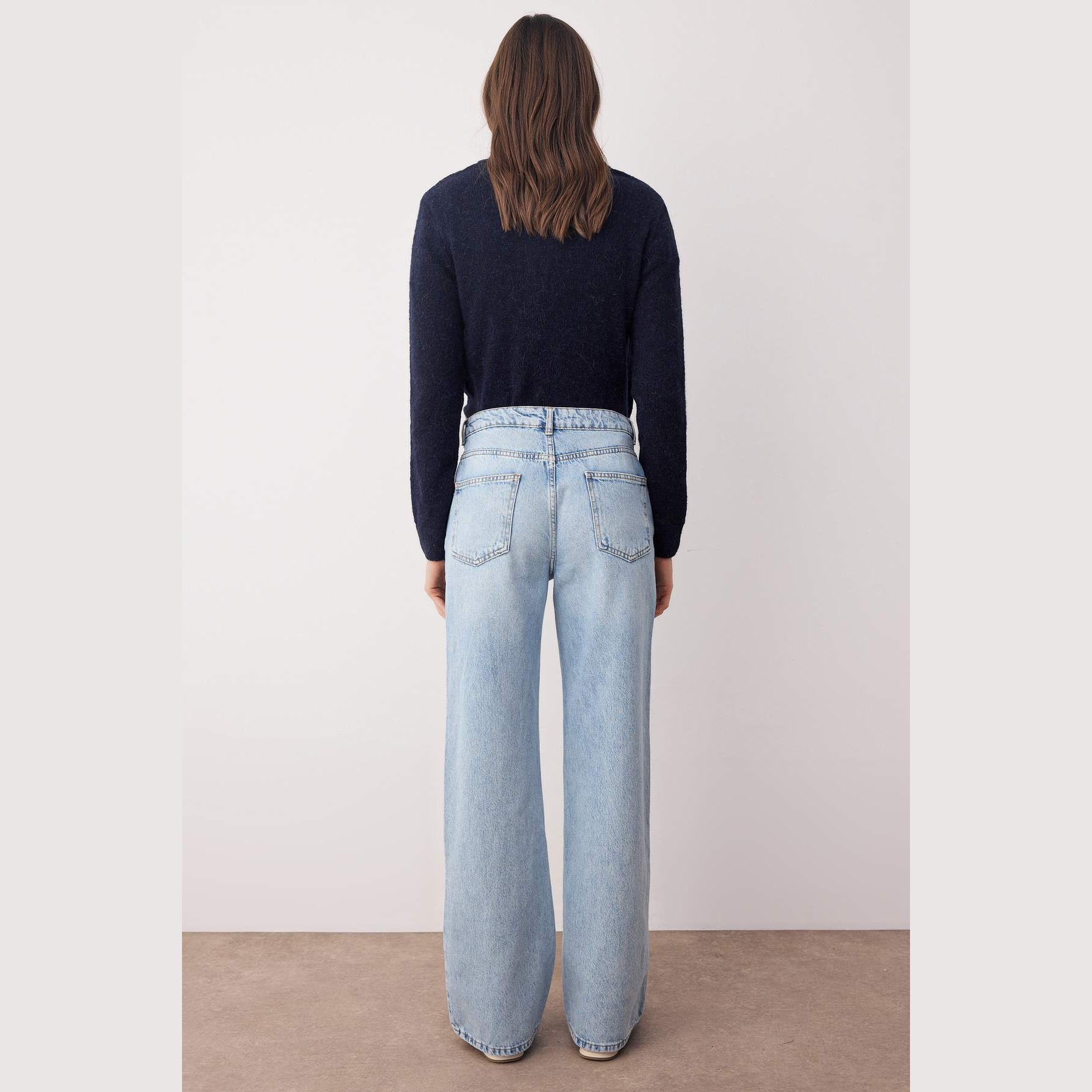 جينز نسائي – أزرق فاتح بخصر مرتفع وقصة واسعة (Wide Leg)