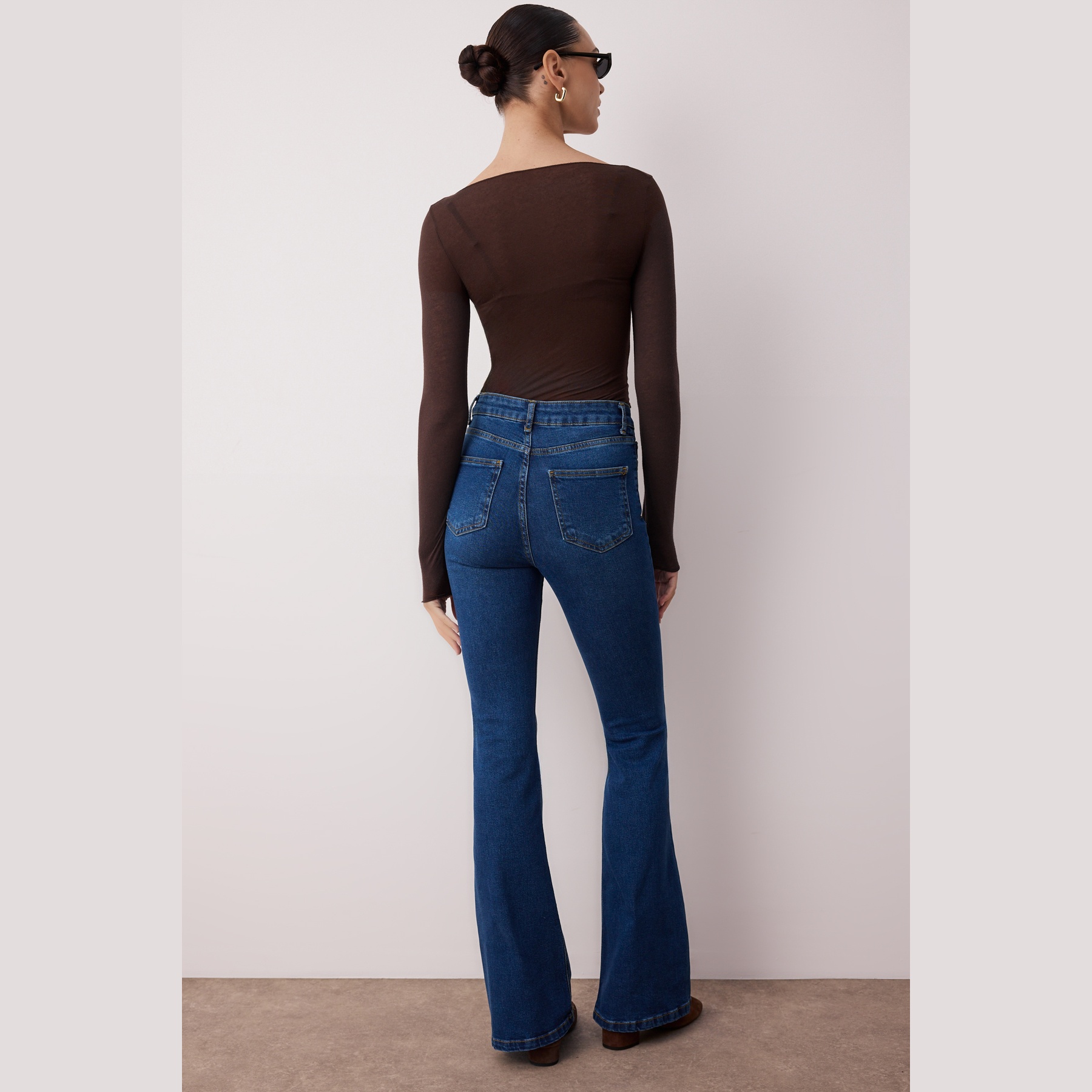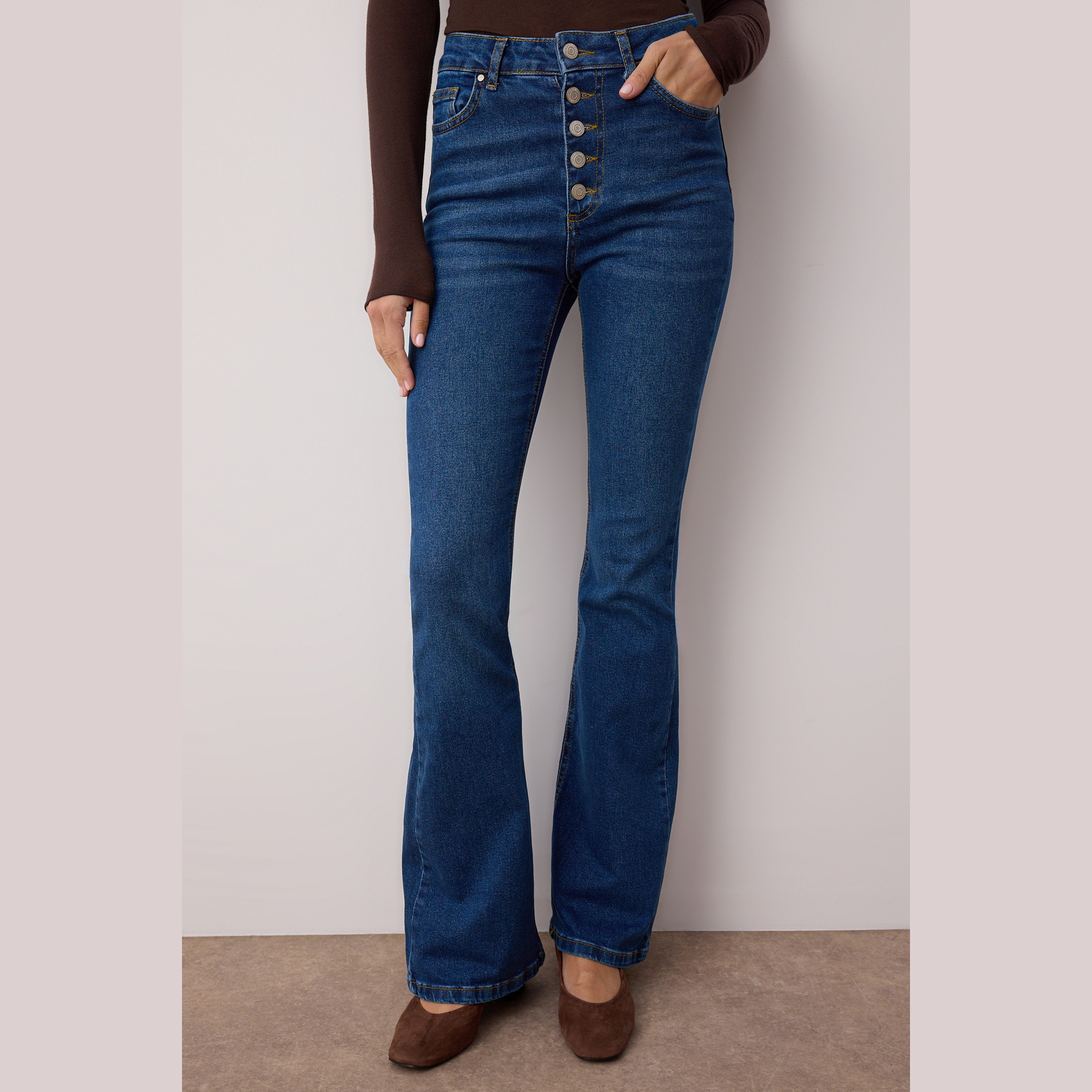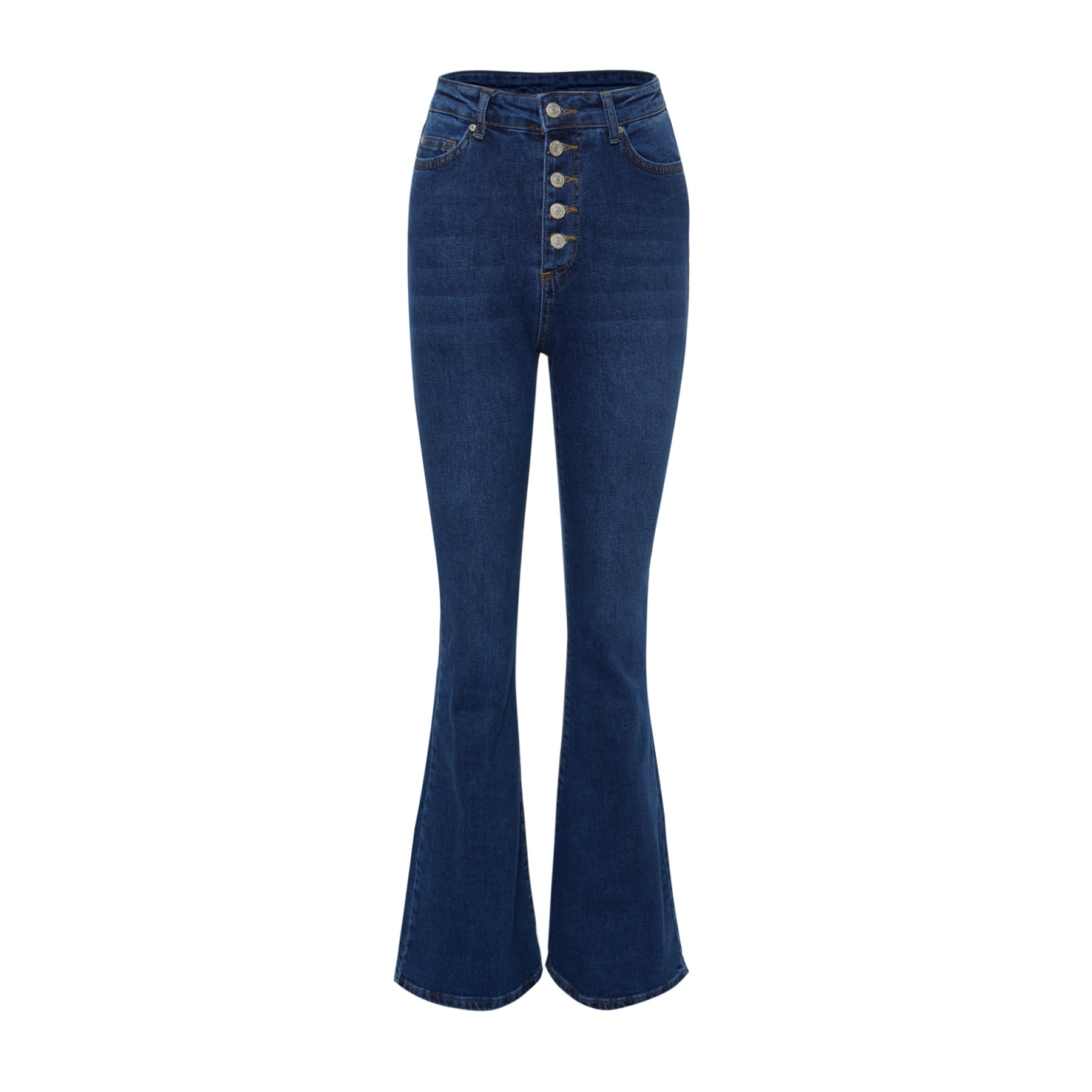 جينز نسائي – أزرق بخصر مرتفع وقصة Flare مرنة مع أزرار أمامية