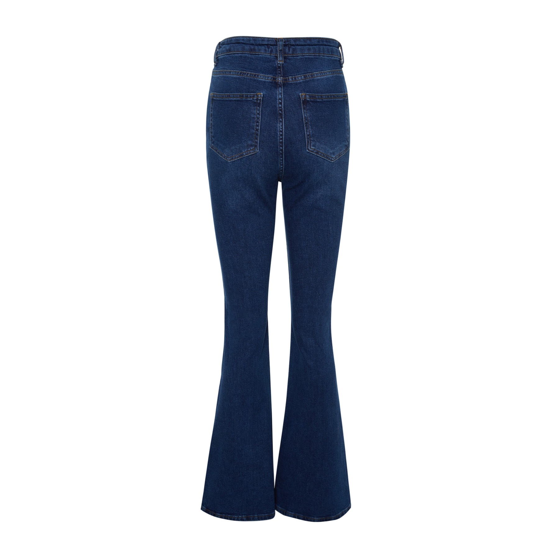 بنطال جينز نسائي بلون أزرق، مصنوع من قماش دنيم مرن بنسبة 98% قطن و2% إيلاستان، يتميز بخصر مرتفع، قصة Flare واسعة من الأسفل، وتصميم أمامي بأزرار بارزة، مع إغلاق مزدوج بزر وسحاب. تصميم عملي يمنحك إطلالة أنثوية مريحة وعصرية.
