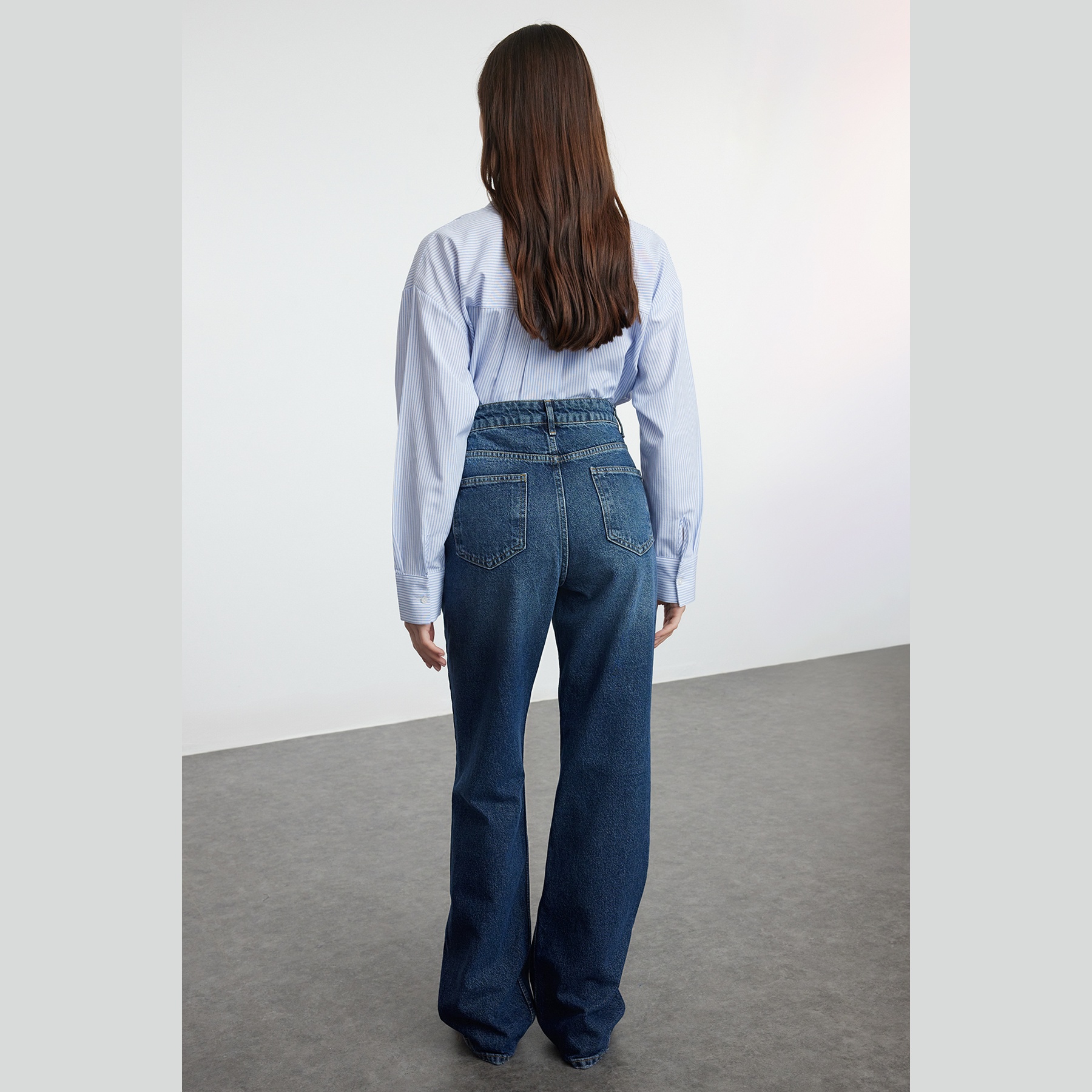 جينز نسائي – كُحلي داكن بخصر مرتفع وقصة واسعة (Wide Leg)