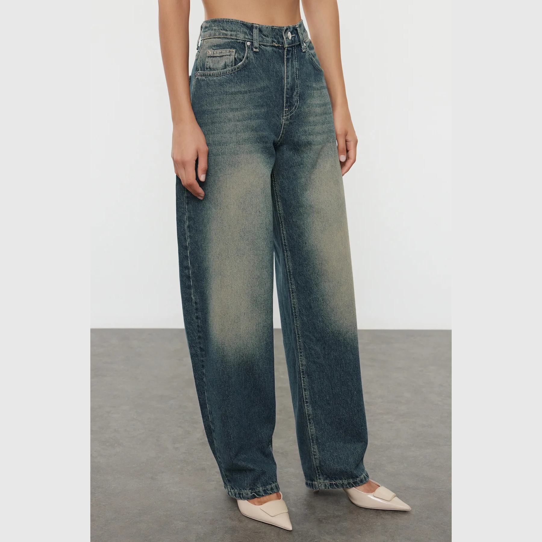 جينز نسائي مستدام – كُحلي داكن بخصر عادي وقصة فضفاضة (Loose Baggy)