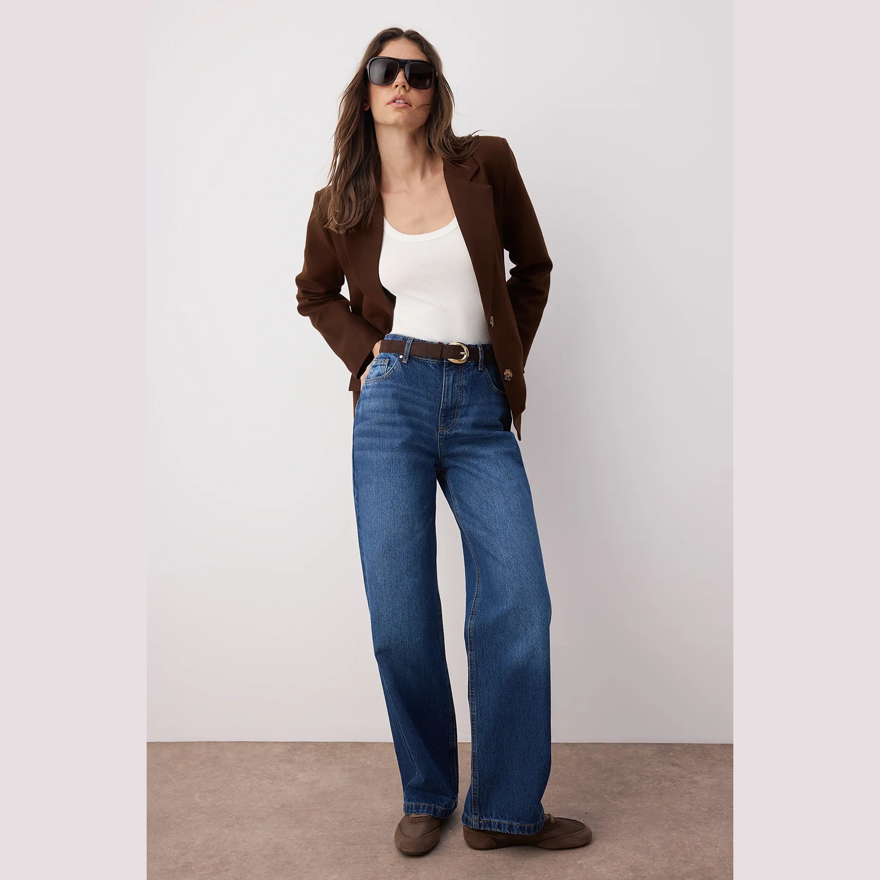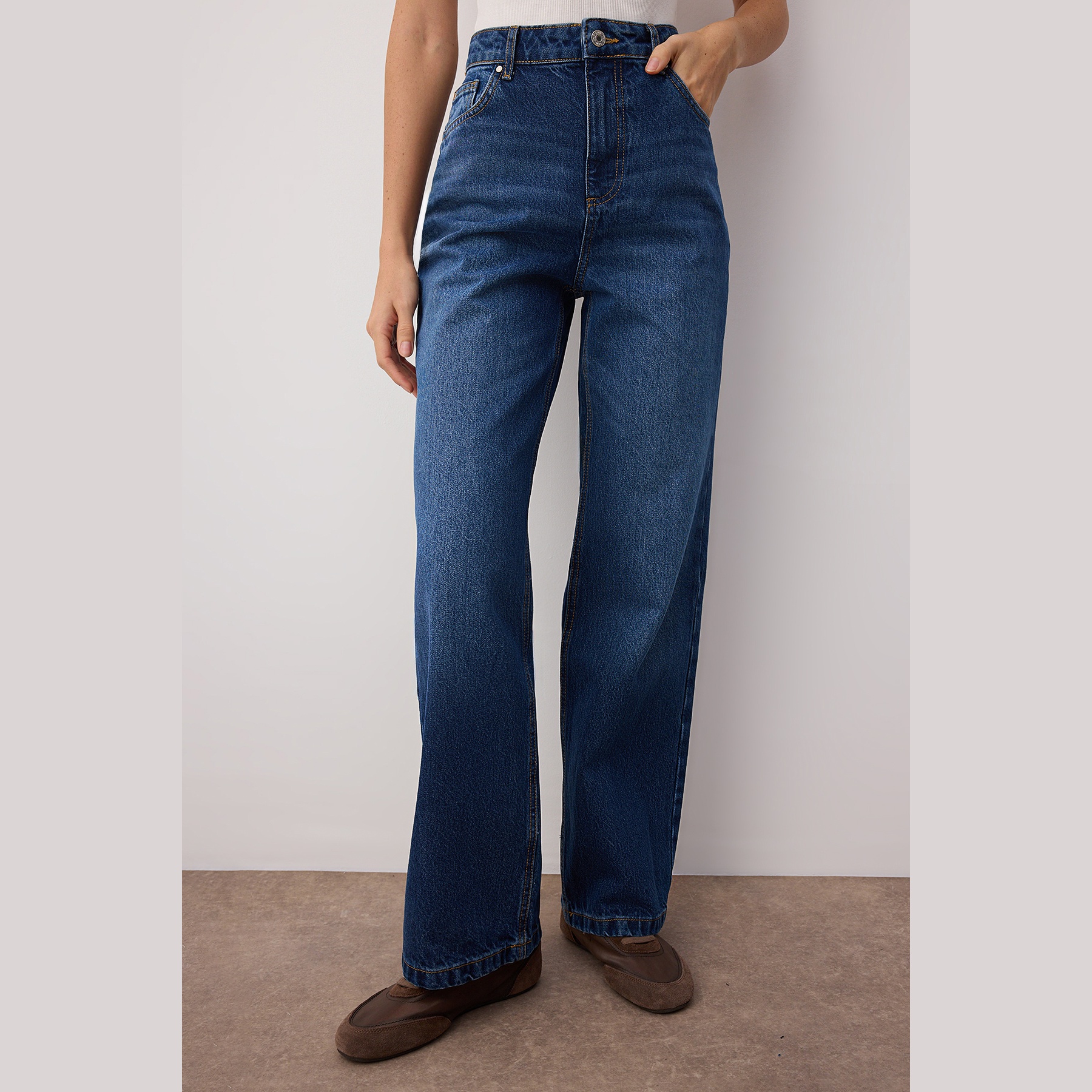 جينز نسائي – كُحلي داكن بخصر مرتفع وقصة واسعة (Wide Leg)