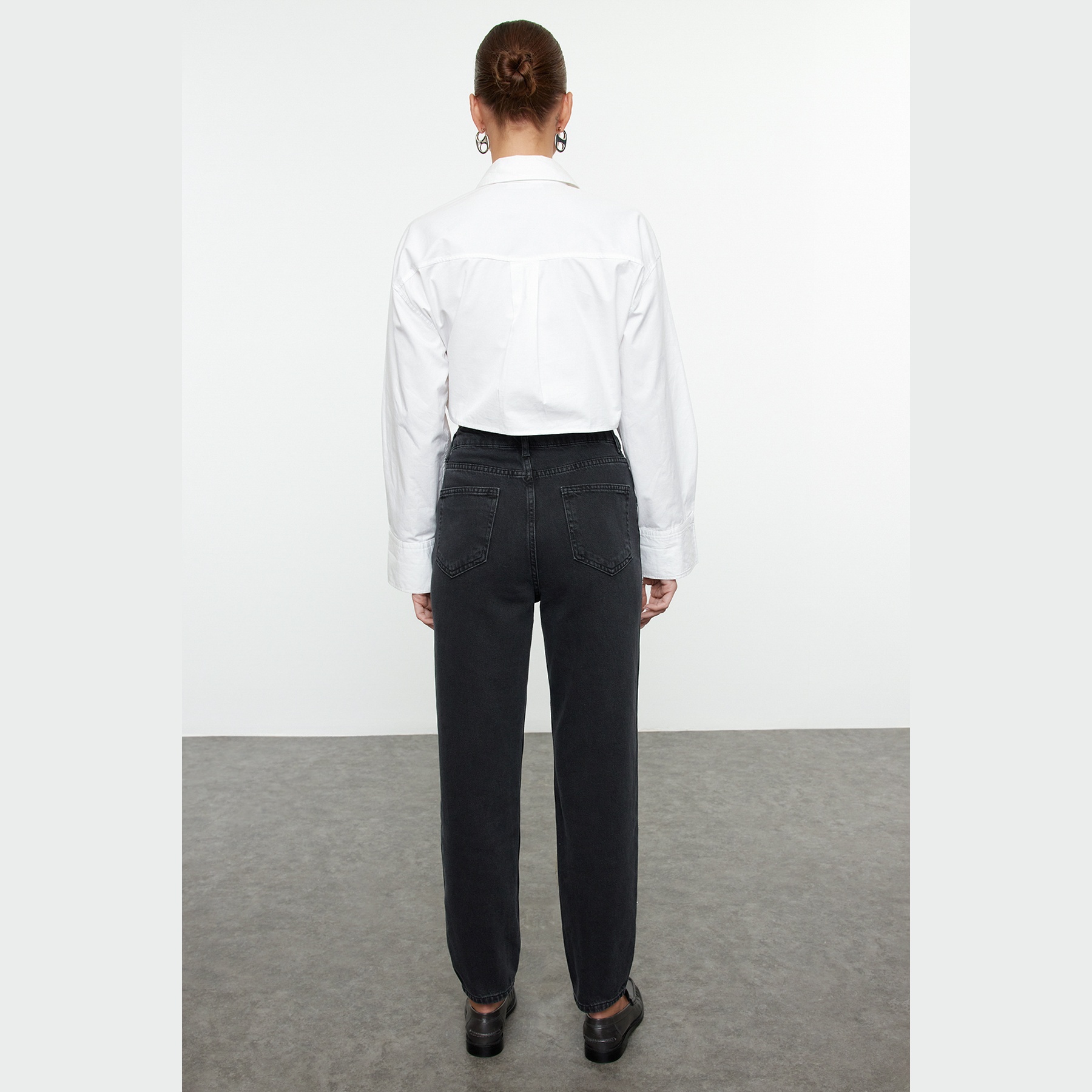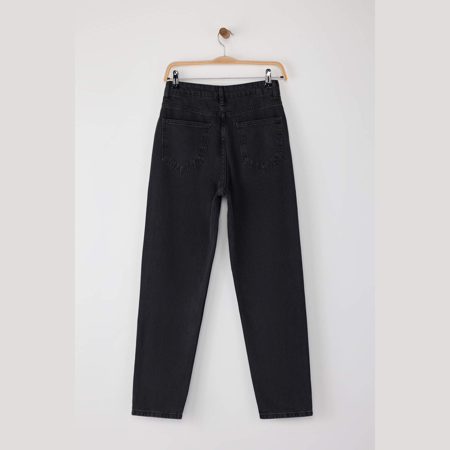 بنطال جينز نسائي بلون أسود، مصنوع من قماش دنيم طبيعي 100% قطن، يتميز بخصر مرتفع، قصة Mom مستقيمة ومريحة، وتفاصيل حجرية لامعة تضيف لمسة فاخرة، مع إغلاق أمامي بزر وسحاب. تصميم أنيق يجمع بين الراحة والتميّز في الإطلالة.