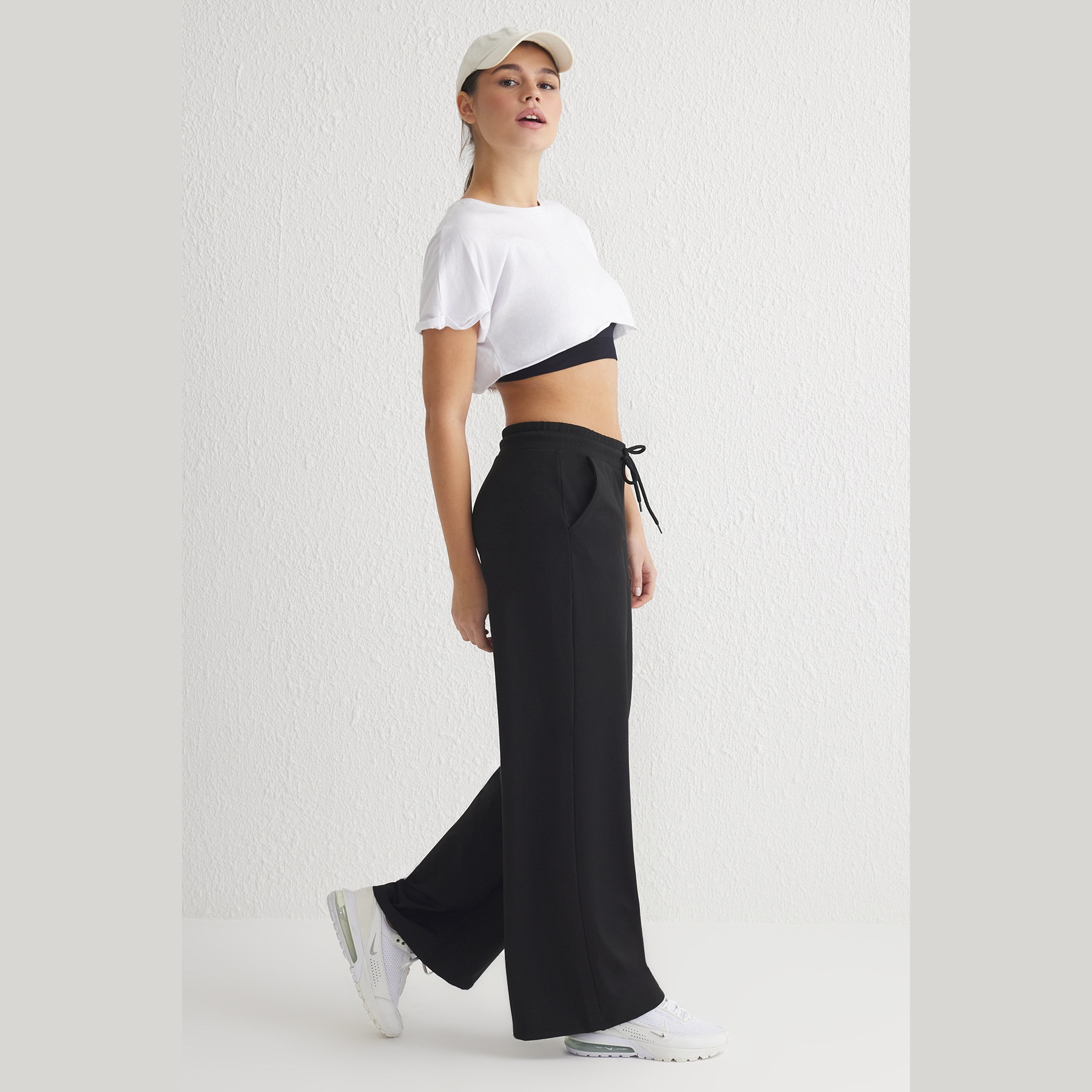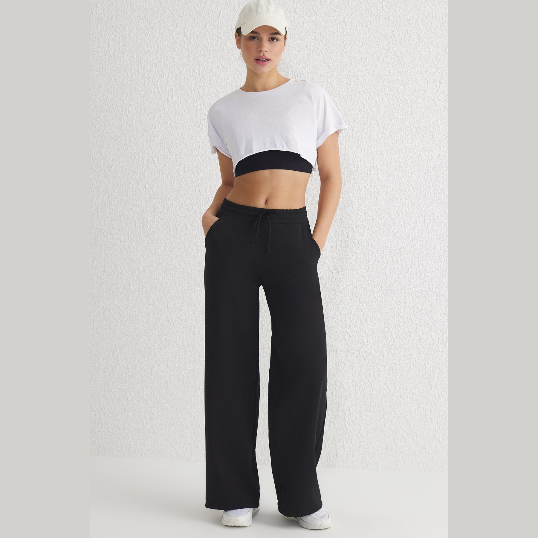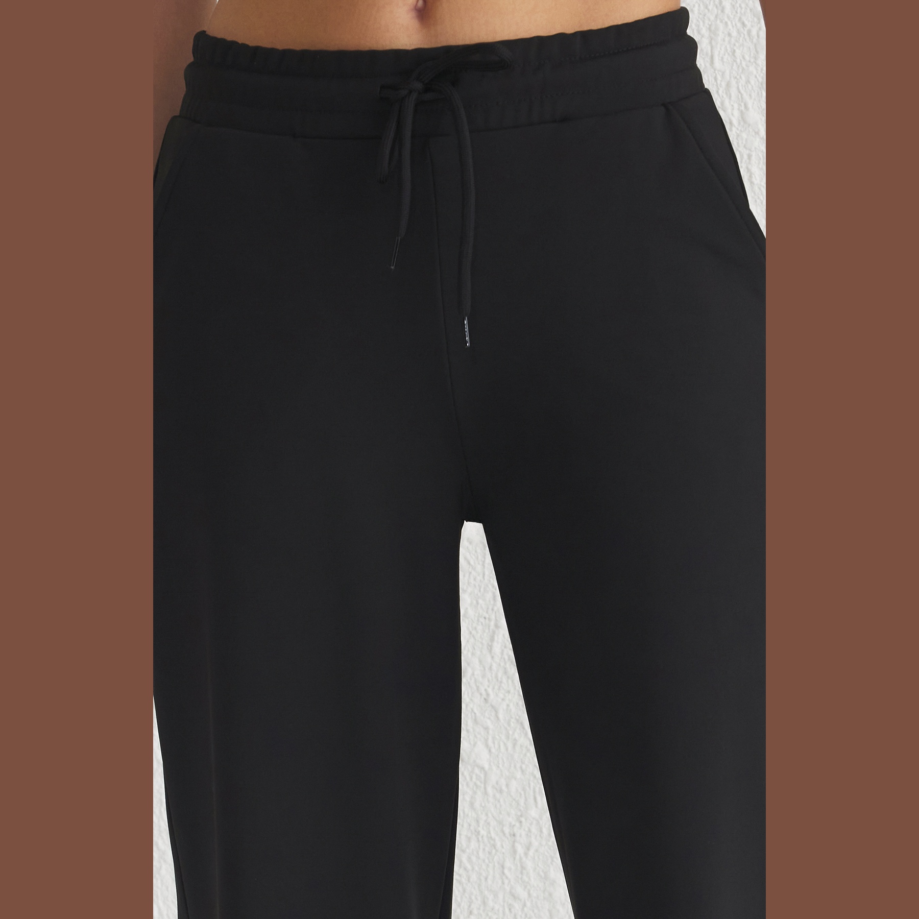 بنطال رياضي نسائي بلون أسود، مصنوع من قماش دالغيت/سكوبا محبوك بنسبة 88% بوليستر و12% إيلاستان، يتميز ببطانة داخلية بولار ناعمة تمنح دفئًا مثاليًا في الأجواء الباردة، قصة مستقيمة، خصر عادي، وتصميم عملي يناسب الإطلالات الشتوية والرياضية.