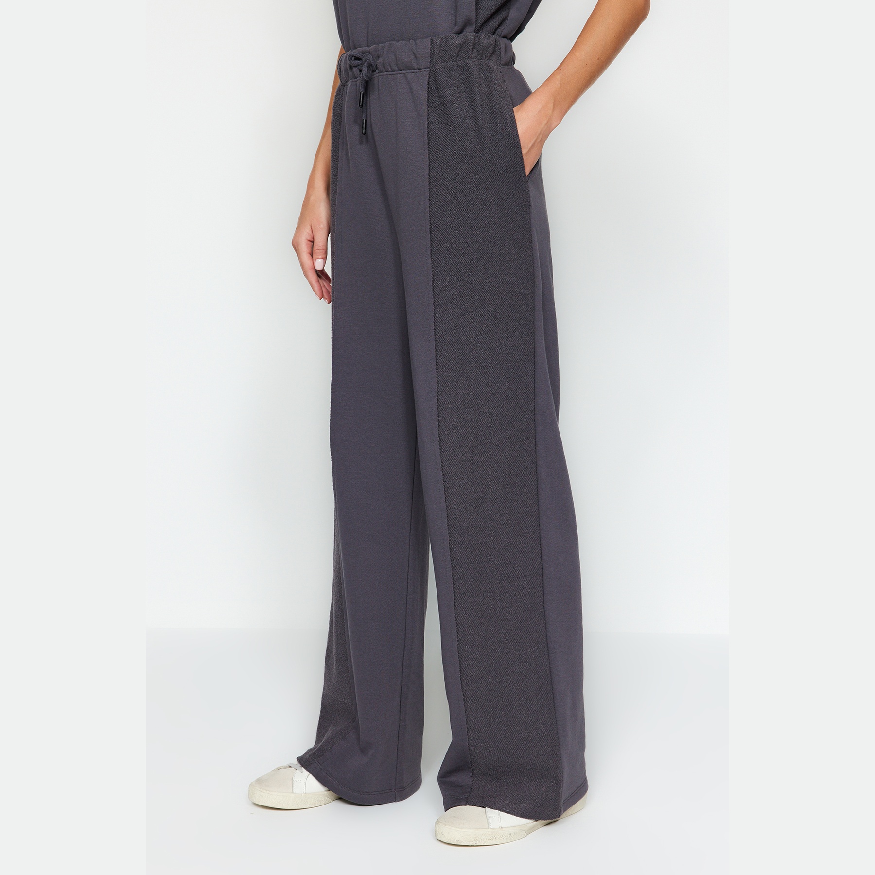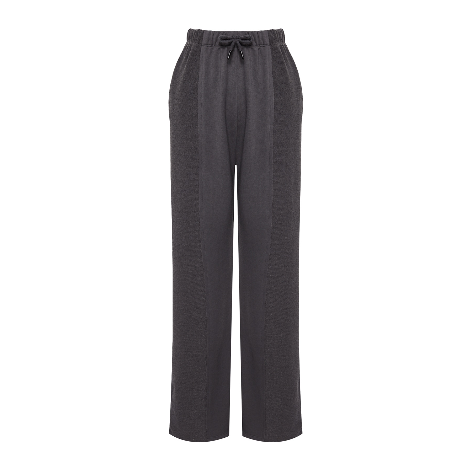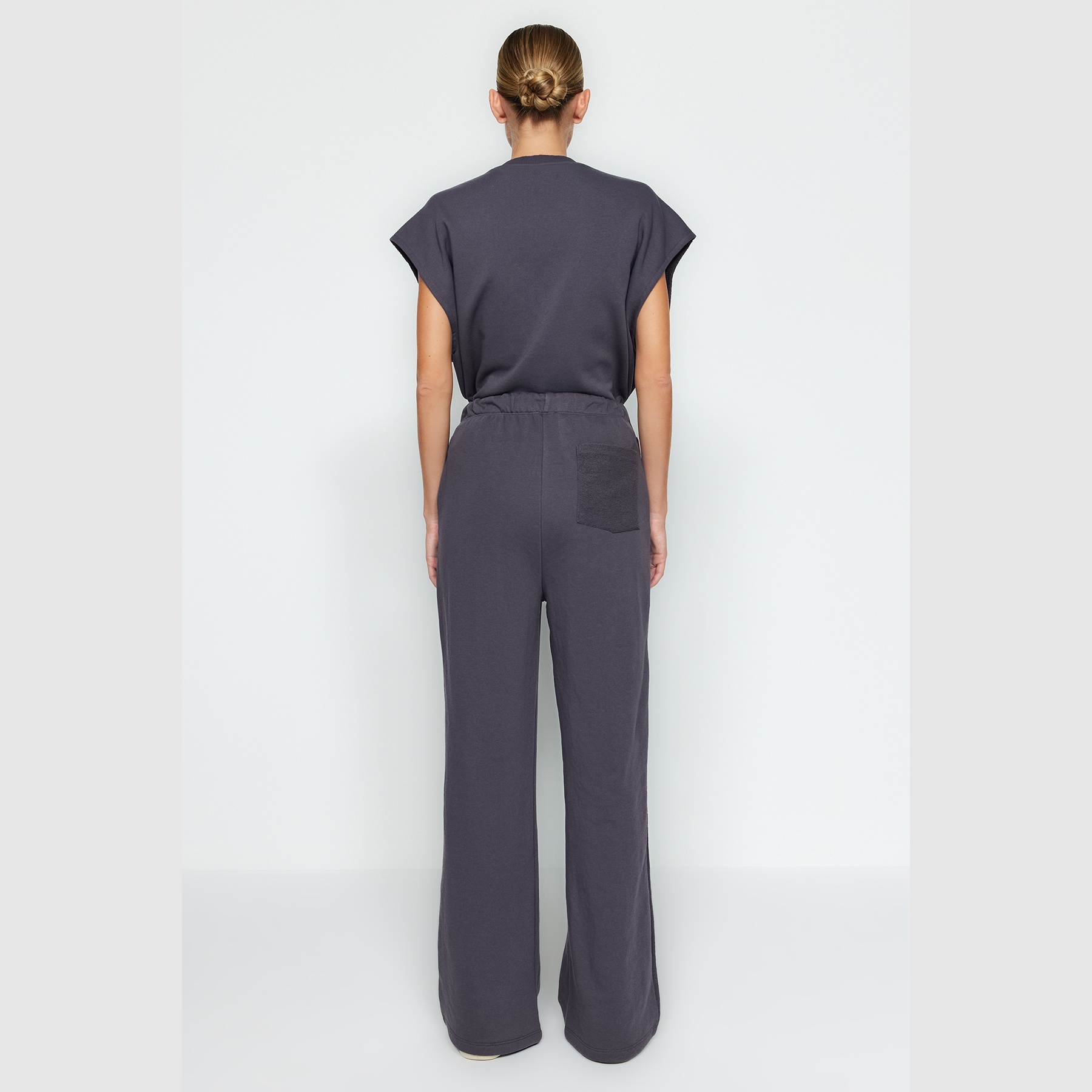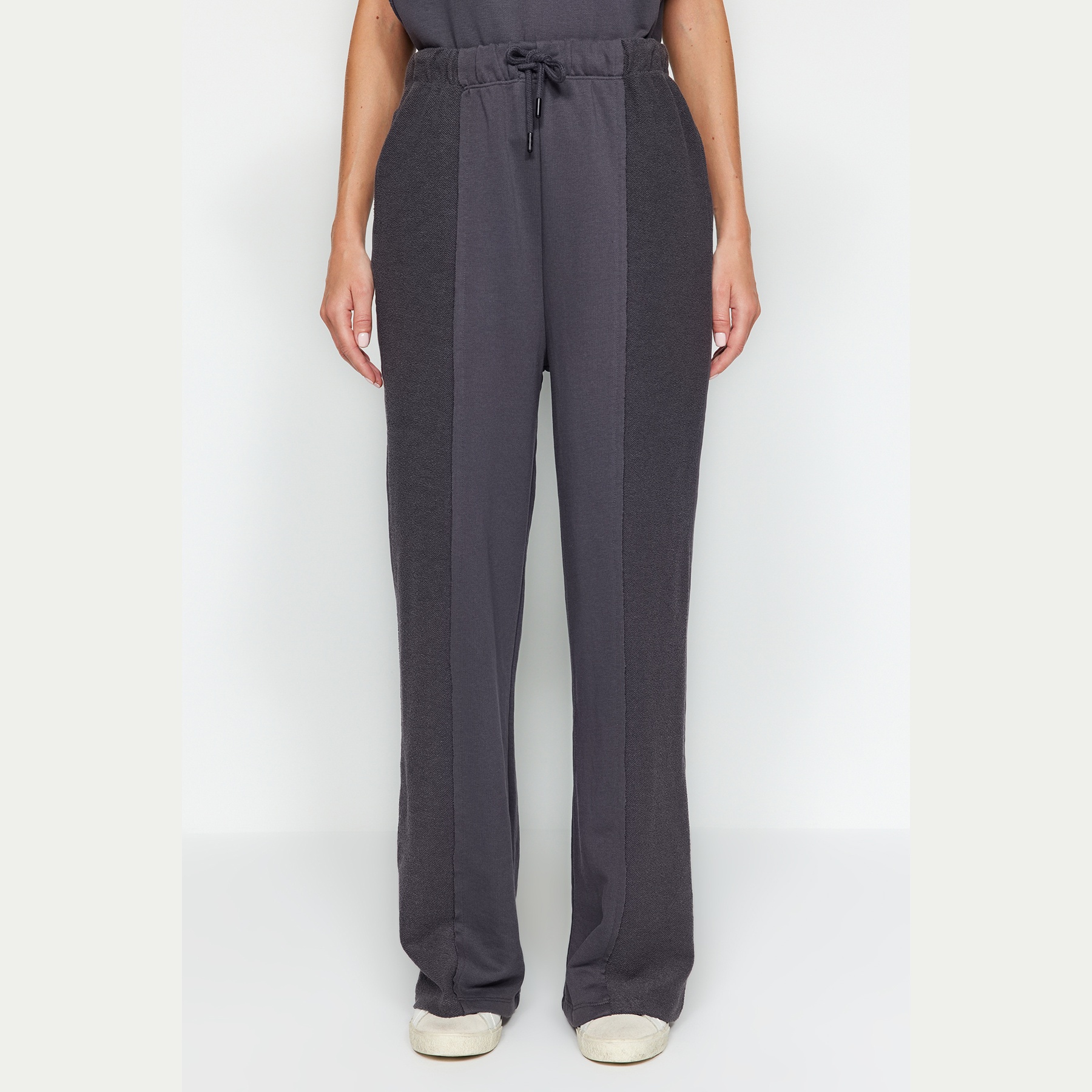 بنطال رياضي نسائي بلون رمادي فحمي (أنثراسيت)، مصنوع من قماش محبوك سميك بتركيبة 62% قطن و38% بوليستر، يتميز بقصة مستقيمة مريحة، خصر مرتفع، وتصميم عملي يوفر دفئًا وراحة مثالية في الإطلالات اليومية والشتوية.