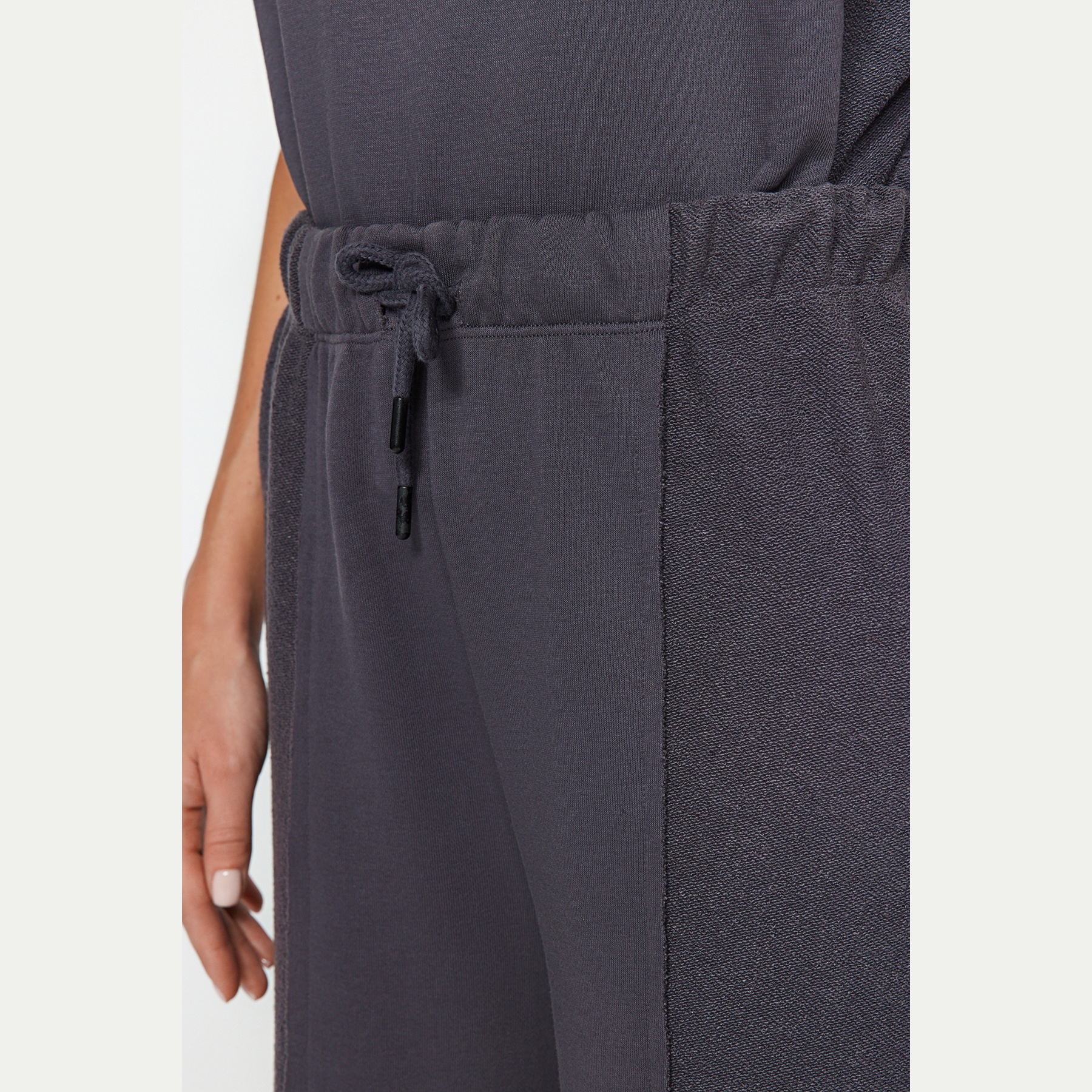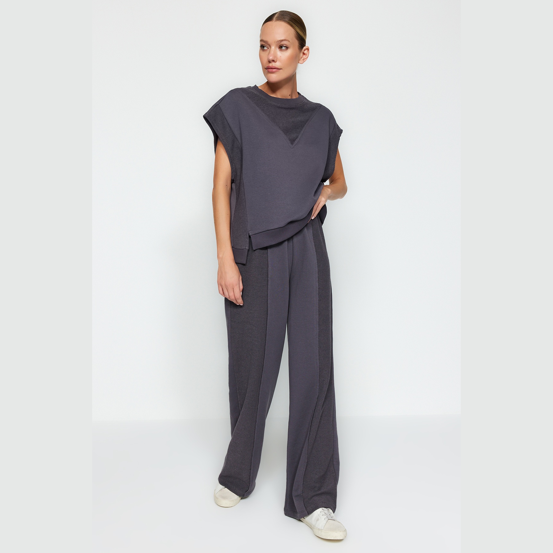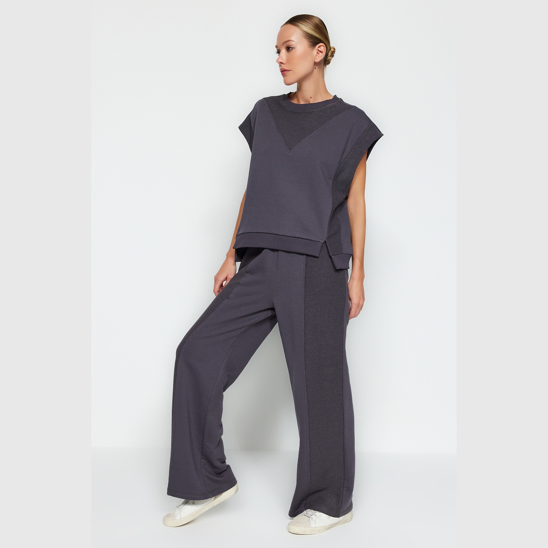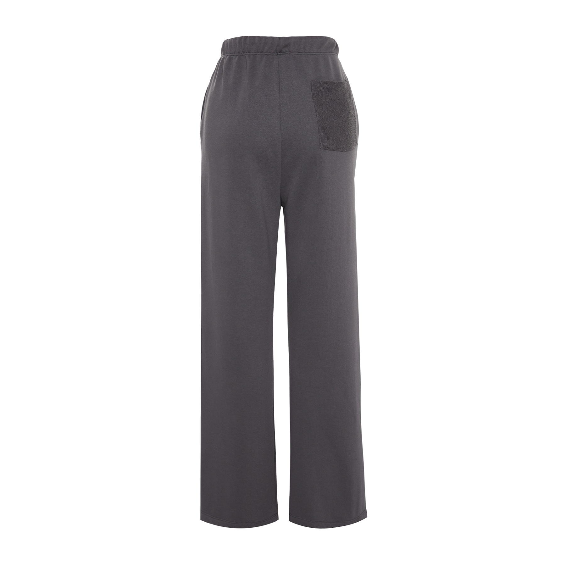 بنطال رياضي نسائي بلون رمادي فحمي (أنثراسيت)، مصنوع من قماش محبوك سميك بتركيبة 62% قطن و38% بوليستر، يتميز بقصة مستقيمة مريحة، خصر مرتفع، وتصميم عملي يوفر دفئًا وراحة مثالية في الإطلالات اليومية والشتوية.