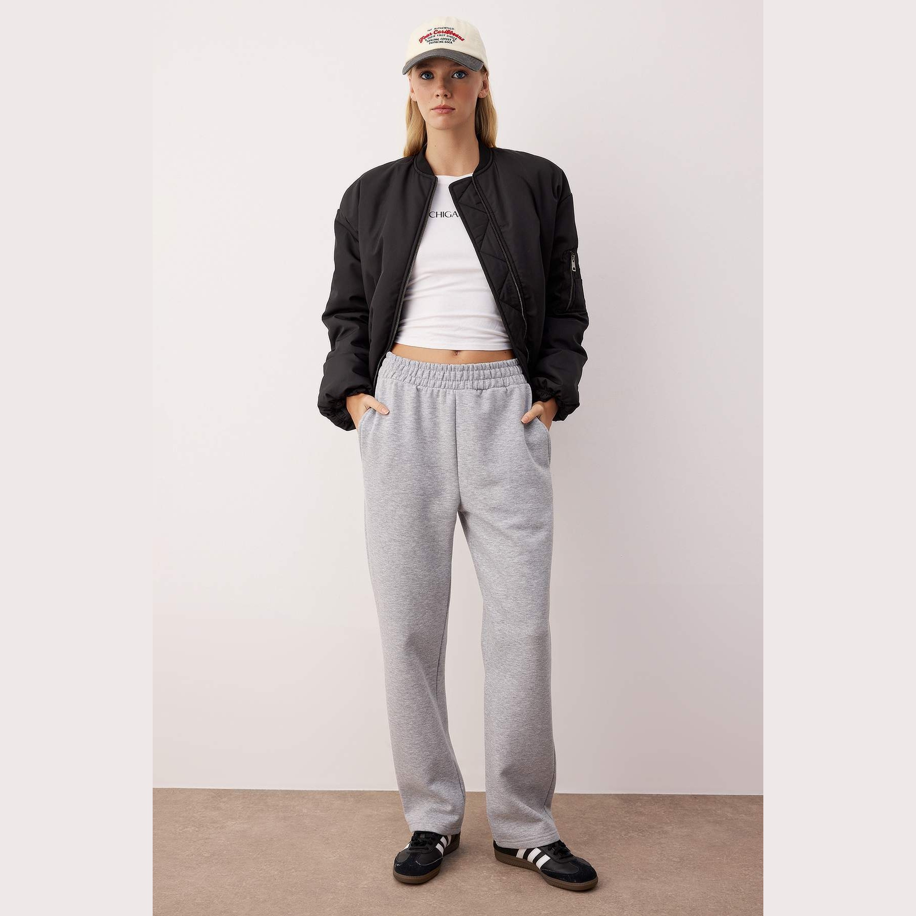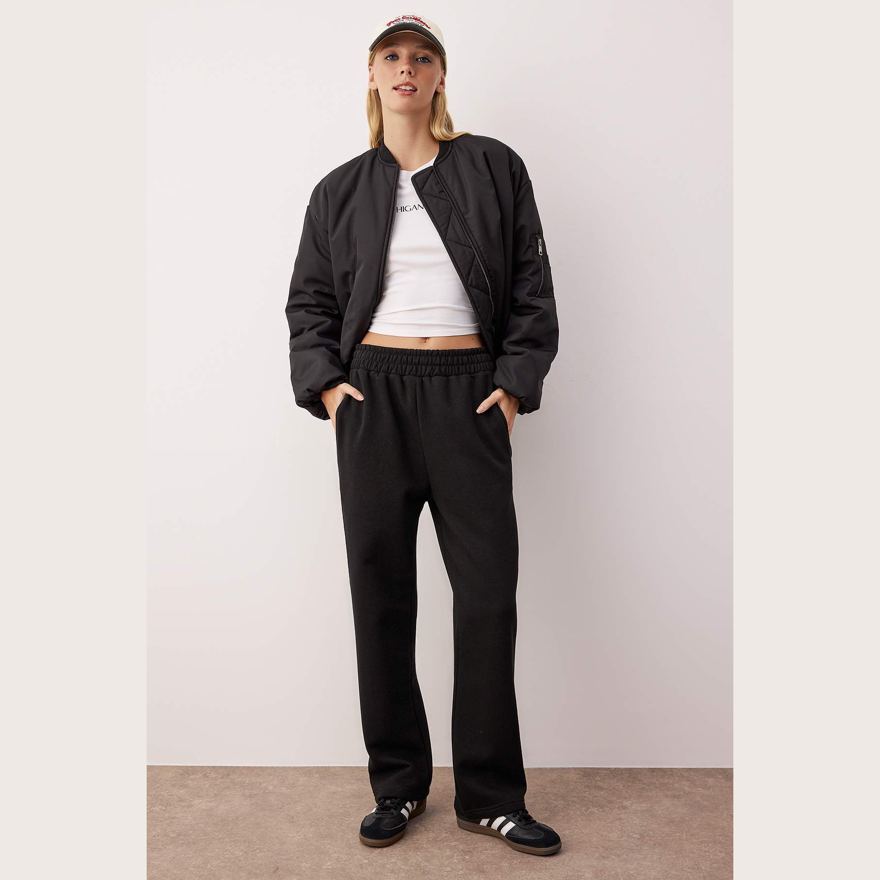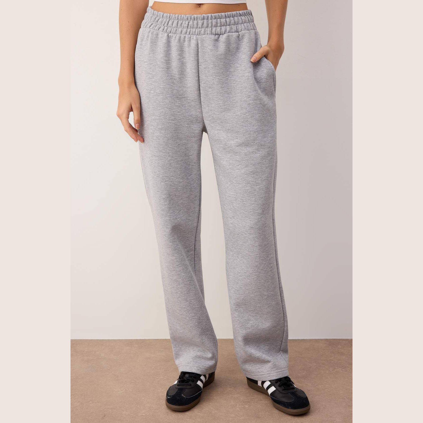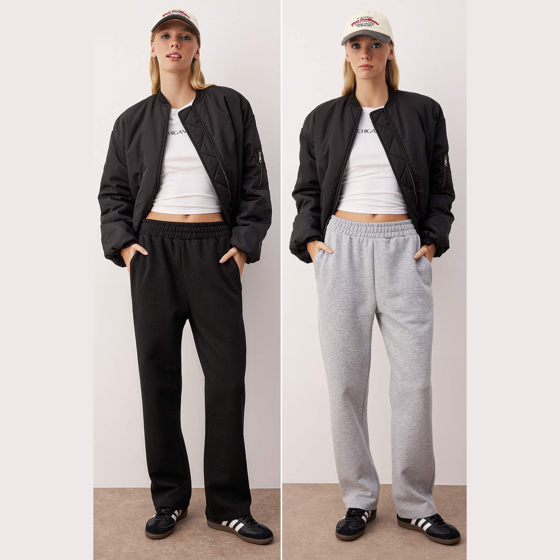 طقم بنطال رياضي نسائي – عبوة من قطعتين (أسود + رمادي ميلانج)، قصة مستقيمة وخامة محبوكة مريحة (2'li Paket Straight Fit)