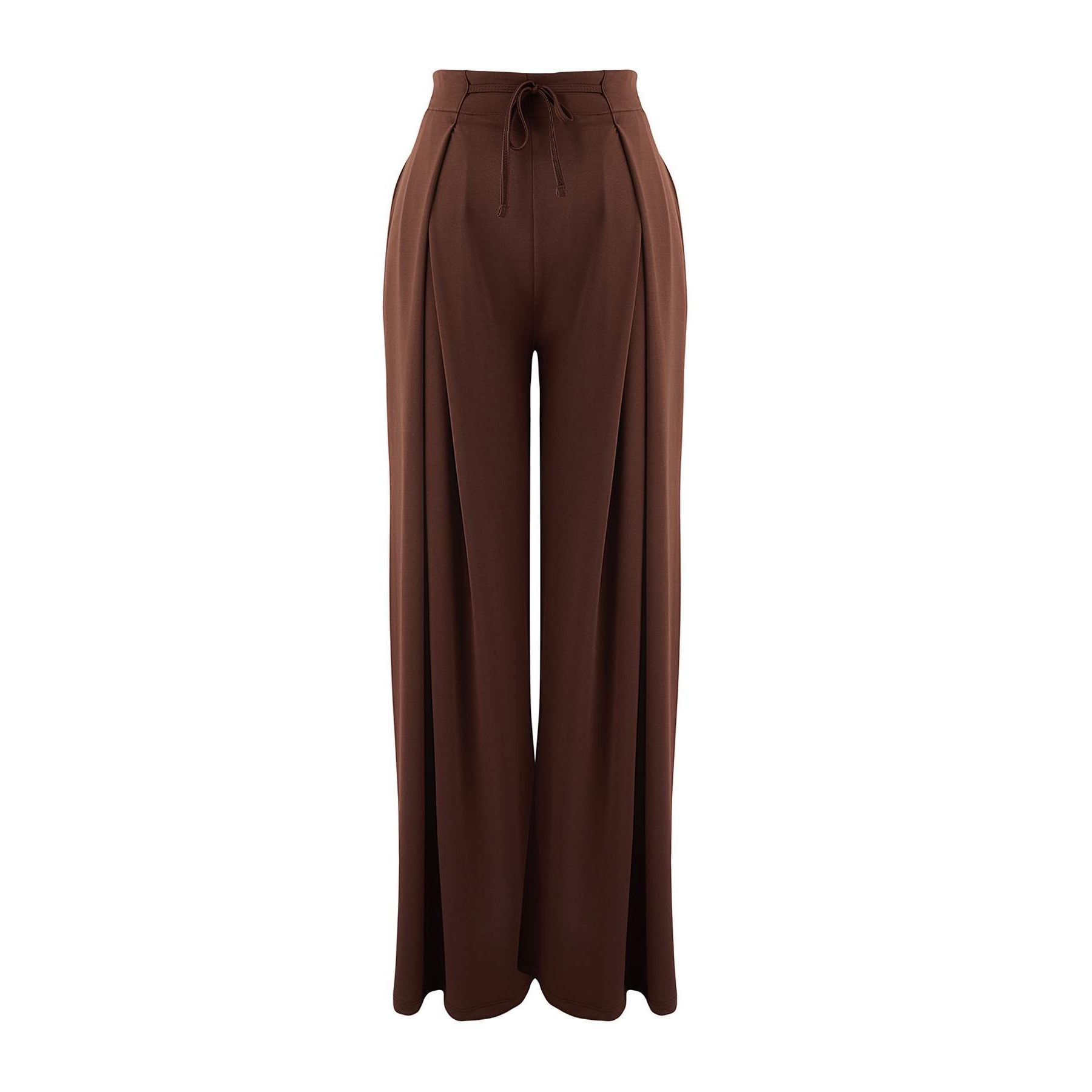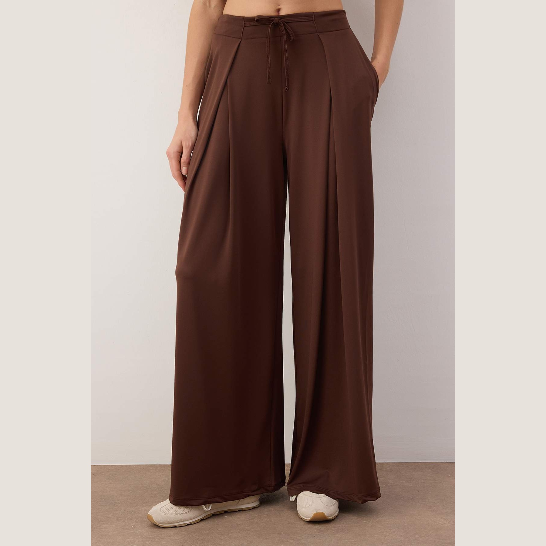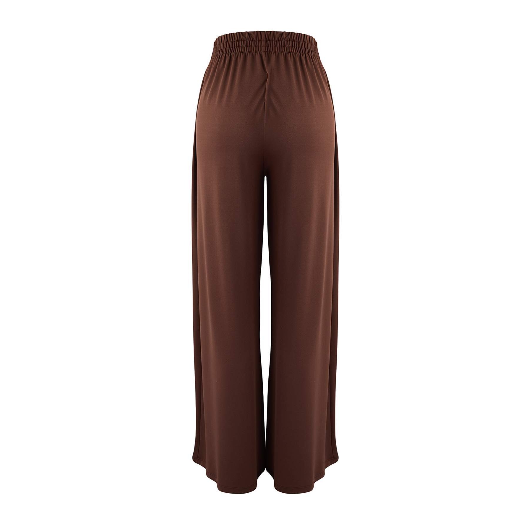 بنطال رياضي نسائي – بني بطيات أمامية، قصة مستقيمة وخامة سكوبا محبوكة (Scuba Pileli Sportswear)