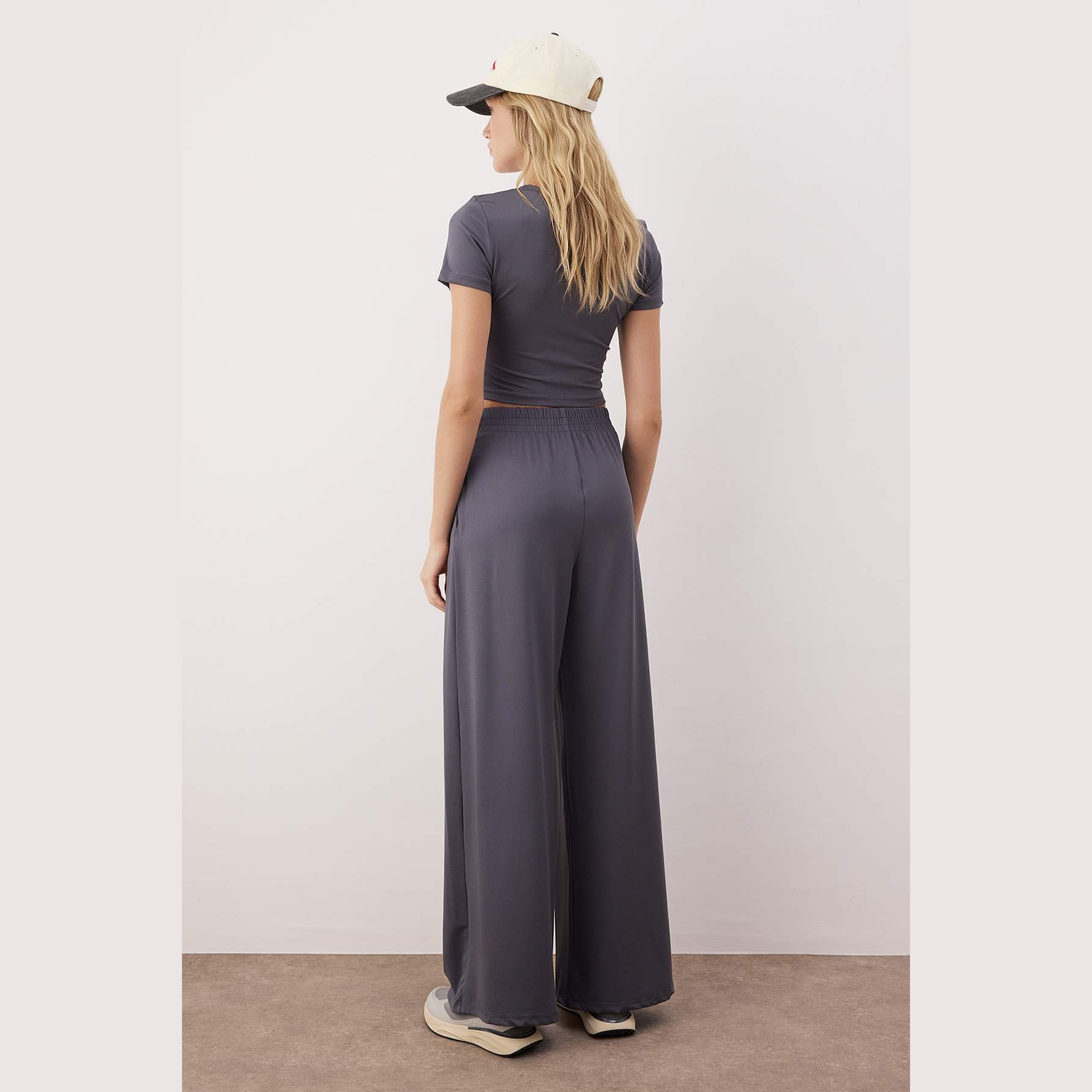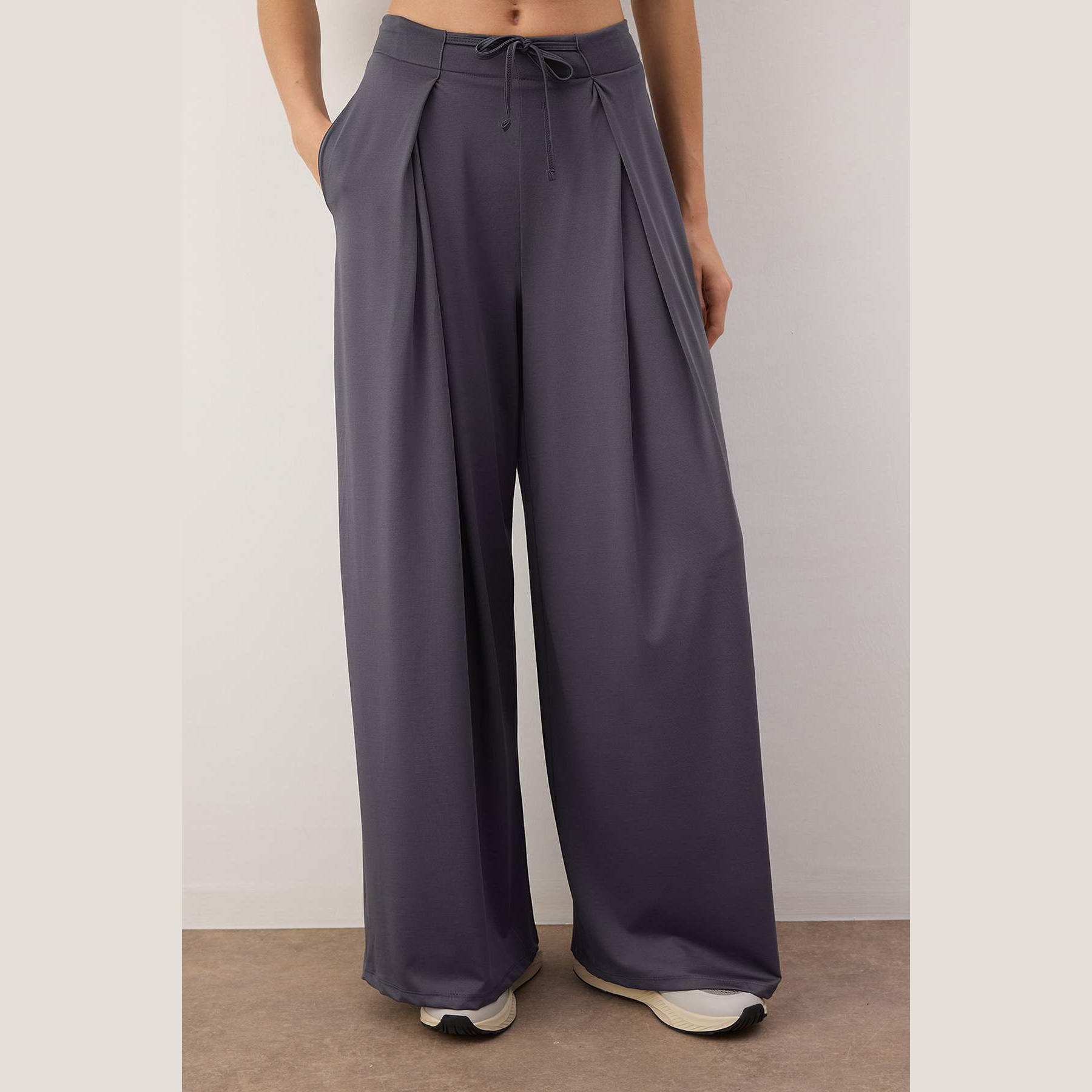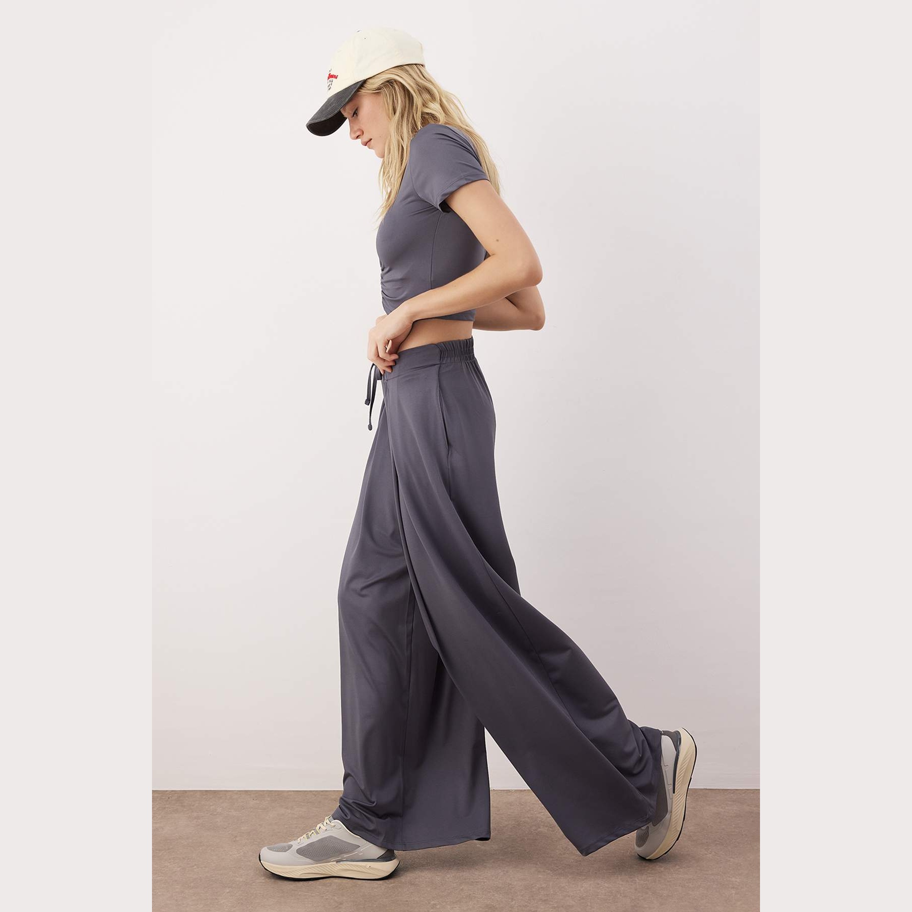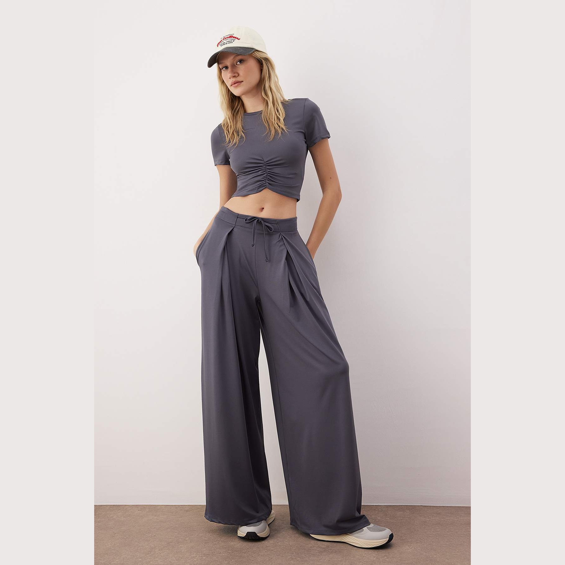 بنطال رياضي نسائي – أنثراسيت بطيات أمامية، قصة مستقيمة وخامة سكوبا محبوكة (Scuba Pileli Sportswear)